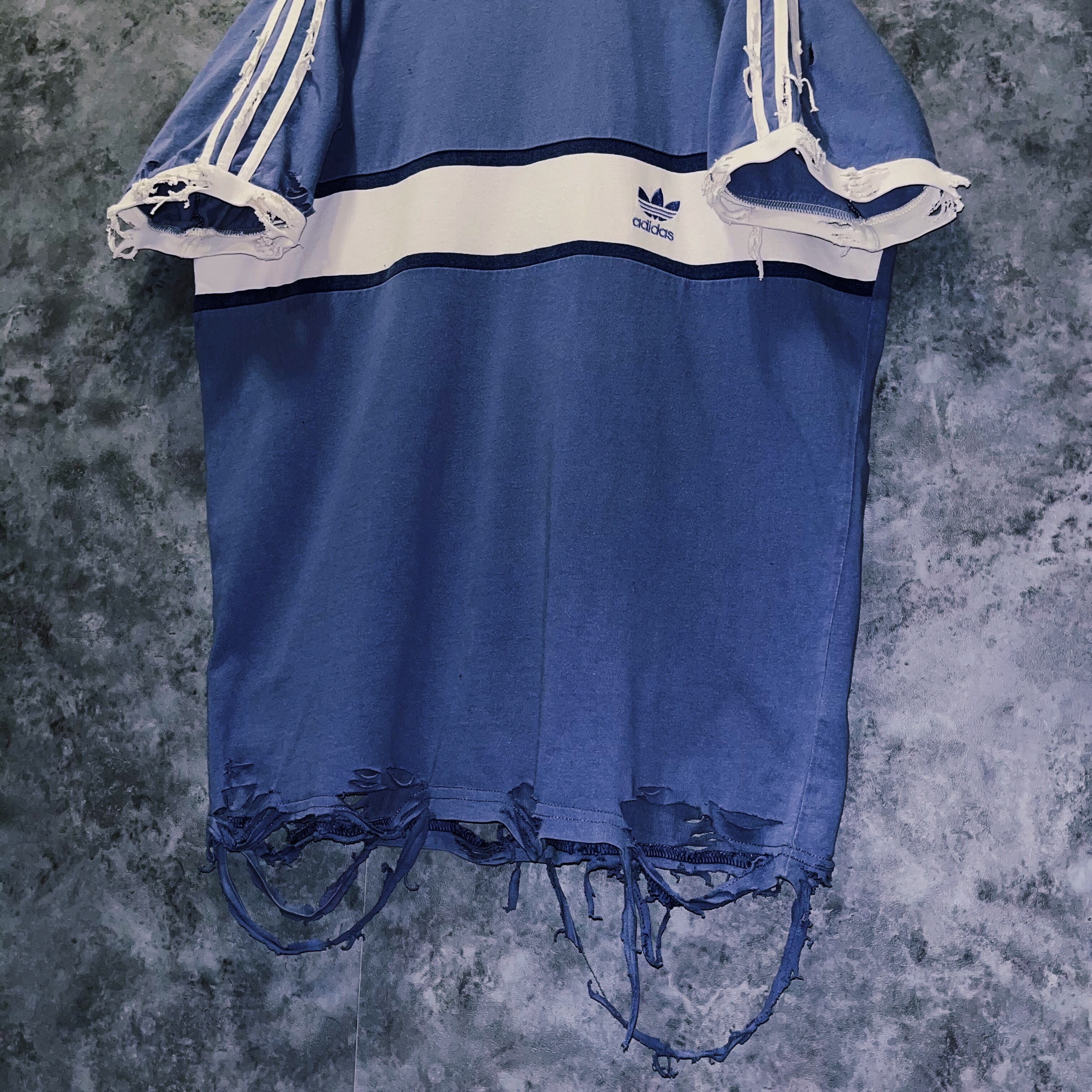 ヴィンテージ“adidas”スリーストライプデザインボロカスタムリンガーTシャツ