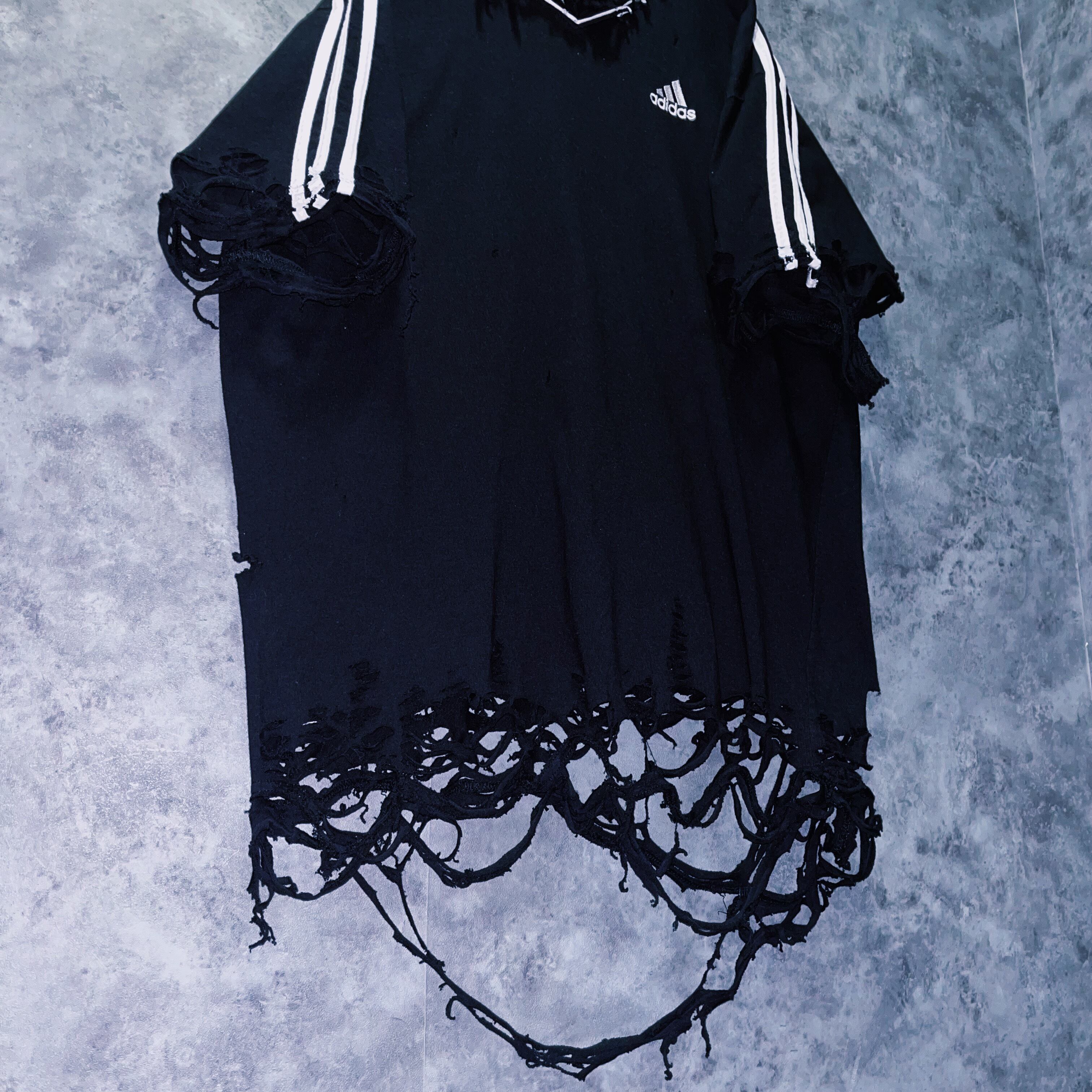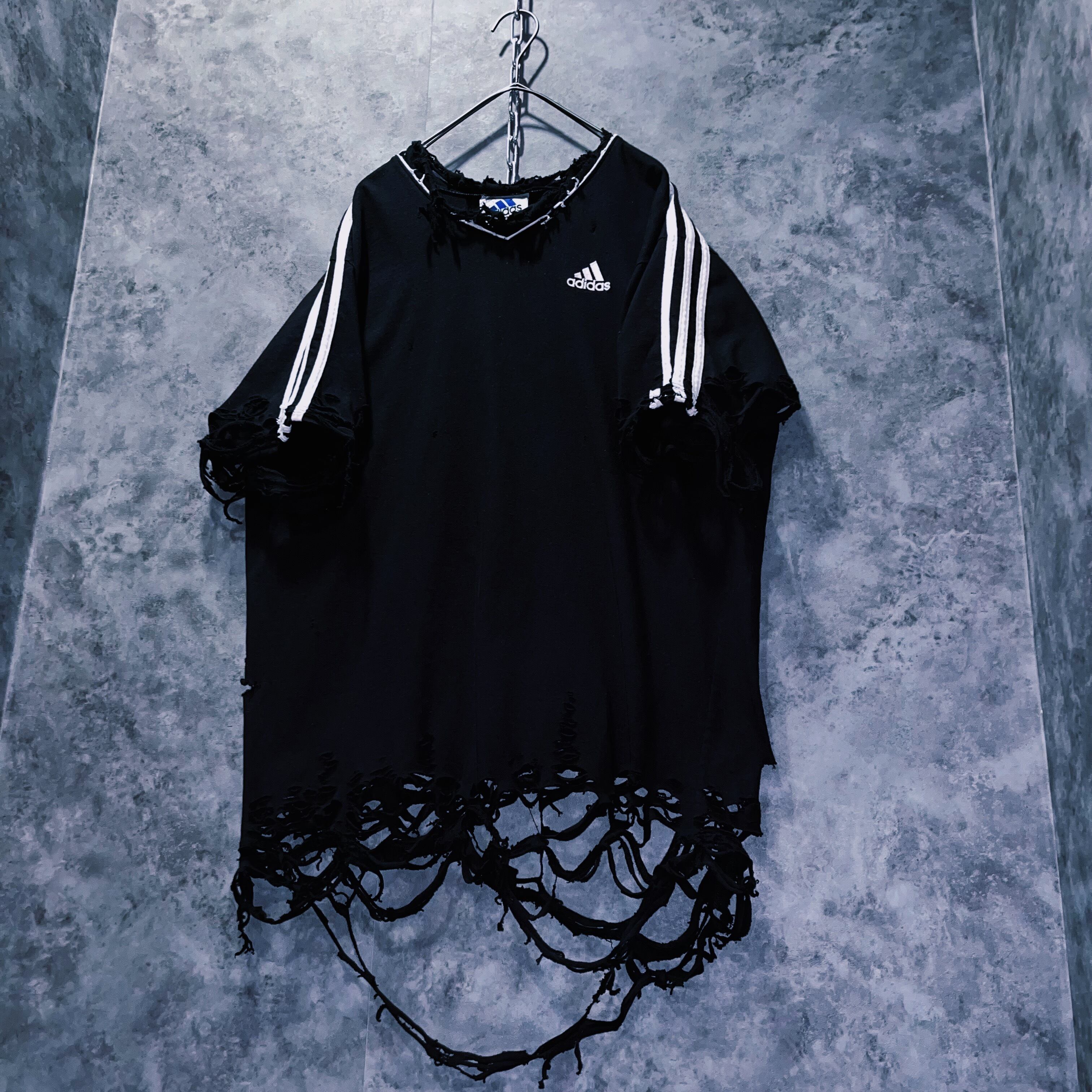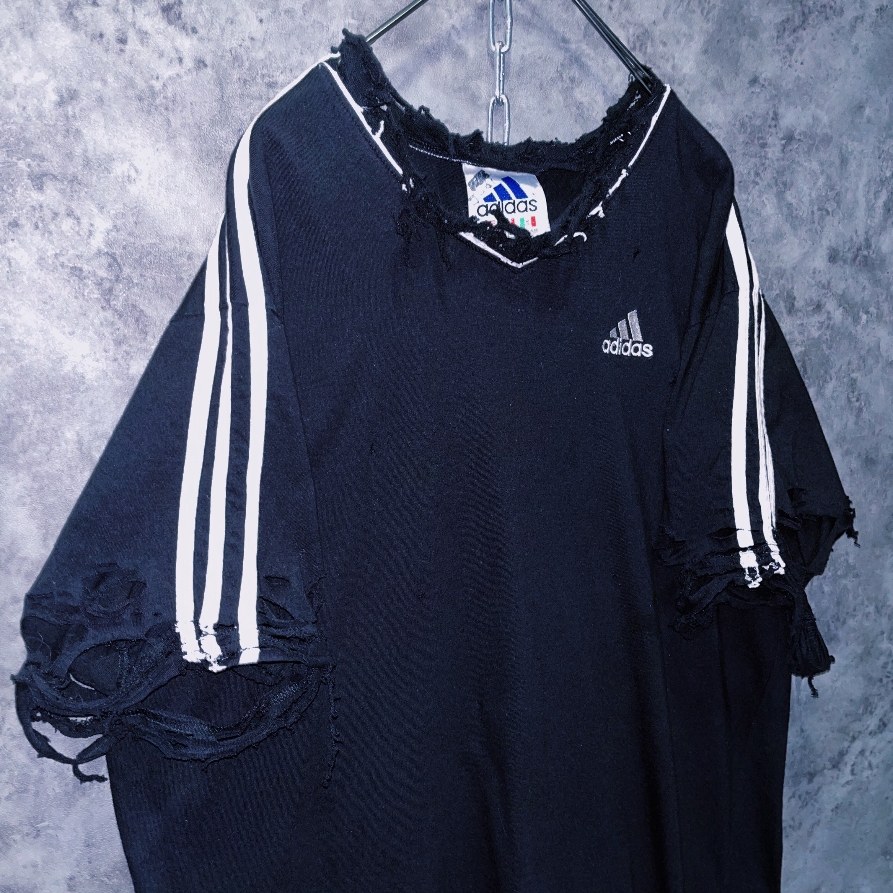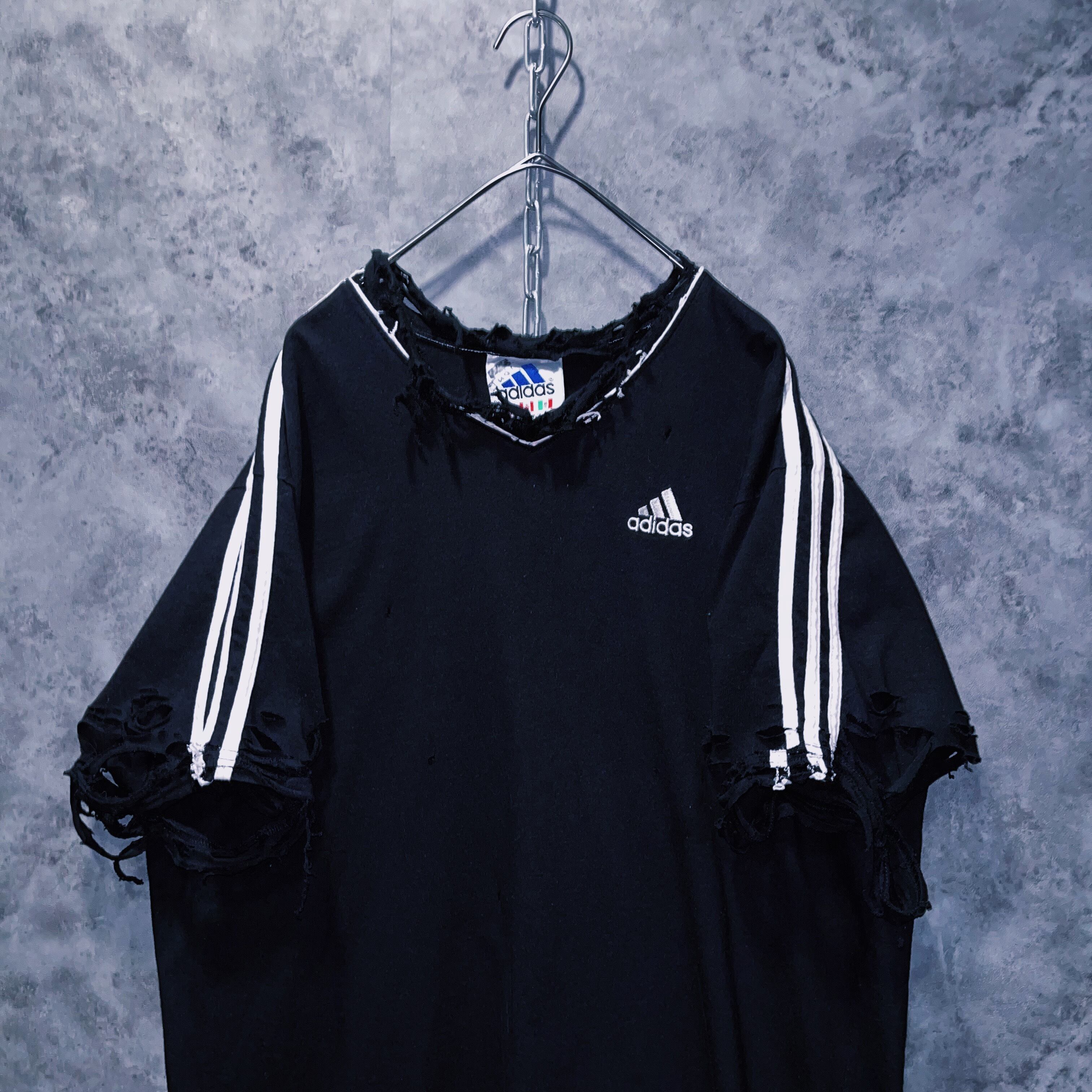 ヴィンテージ“adidas”スリーストライプデザインボロカスタムTシャツ