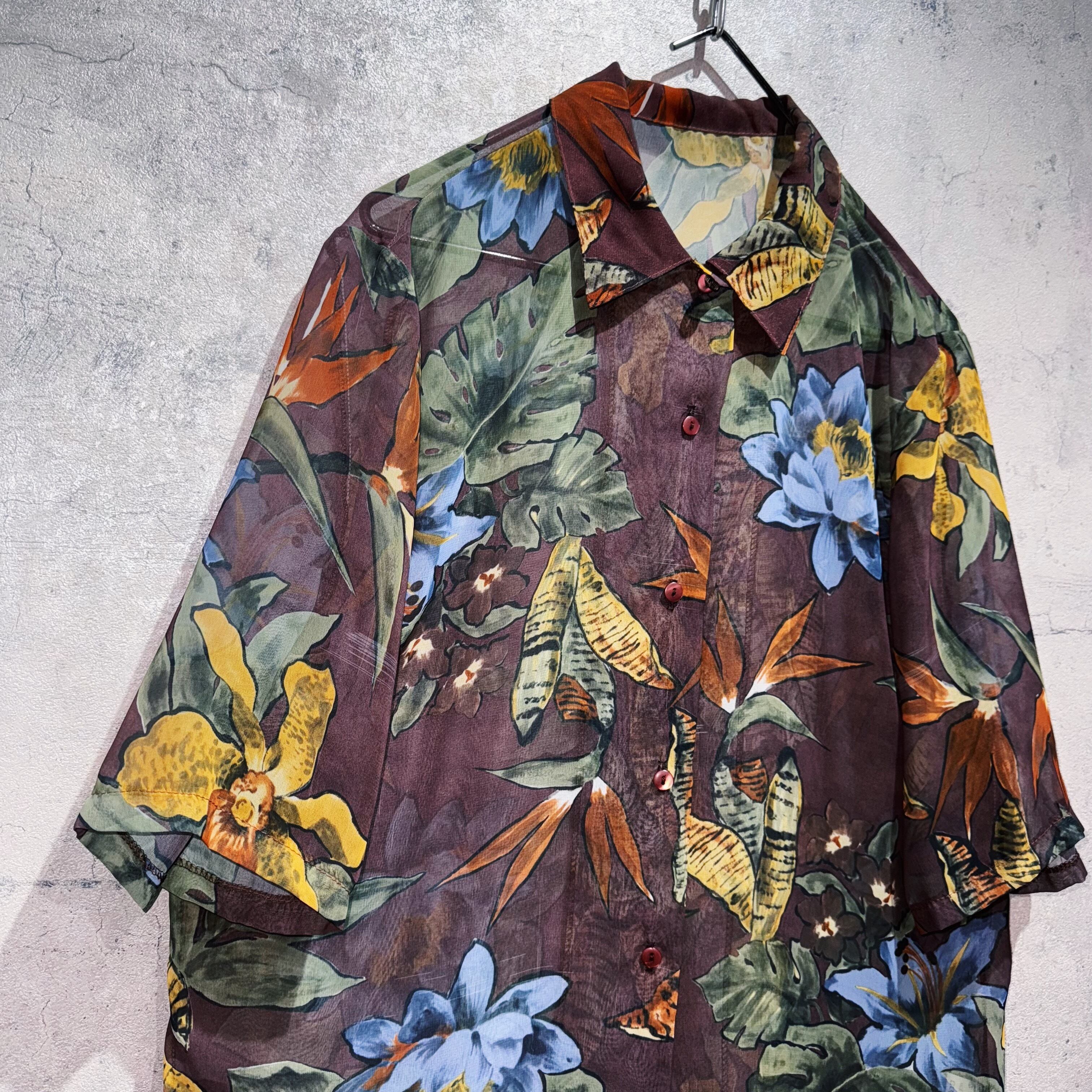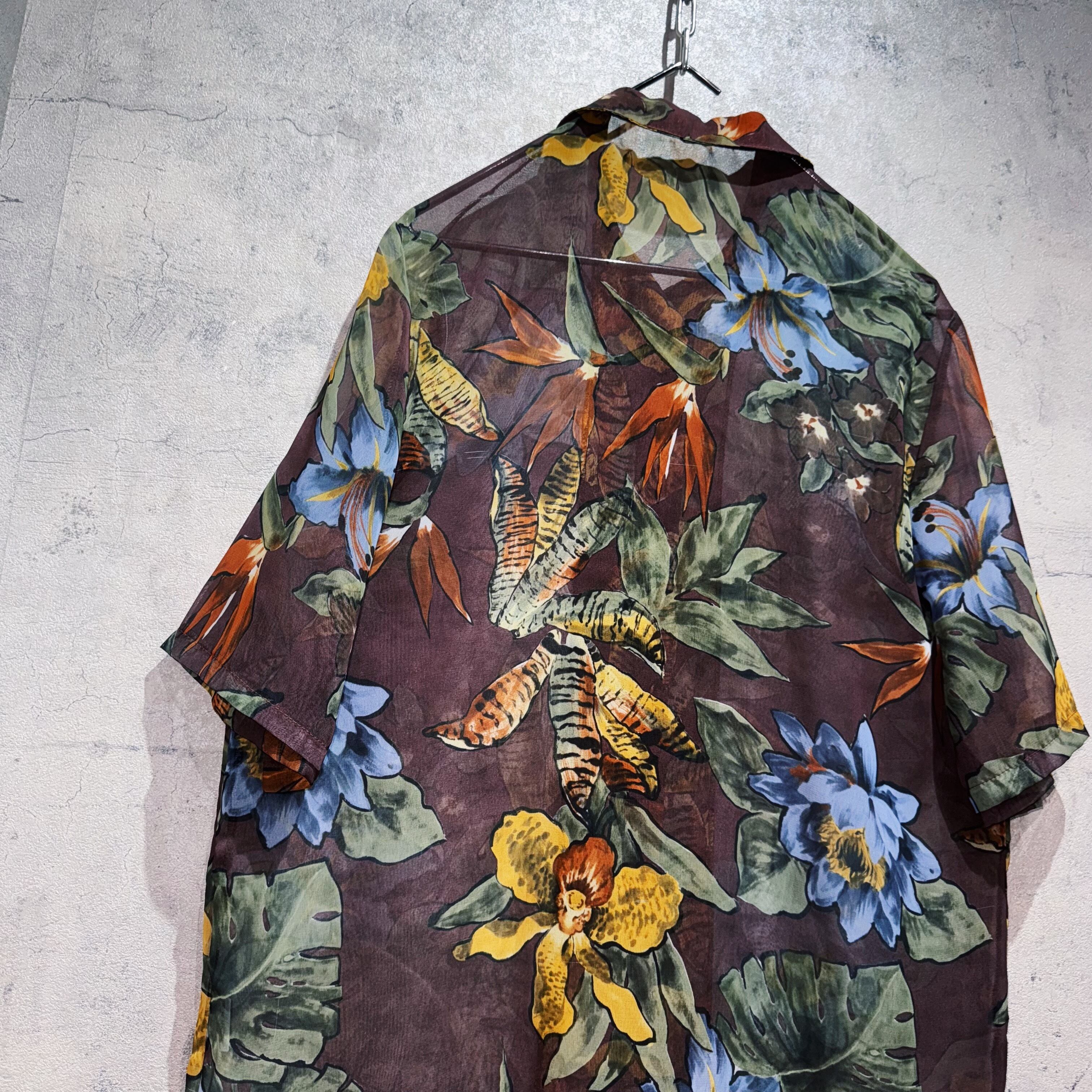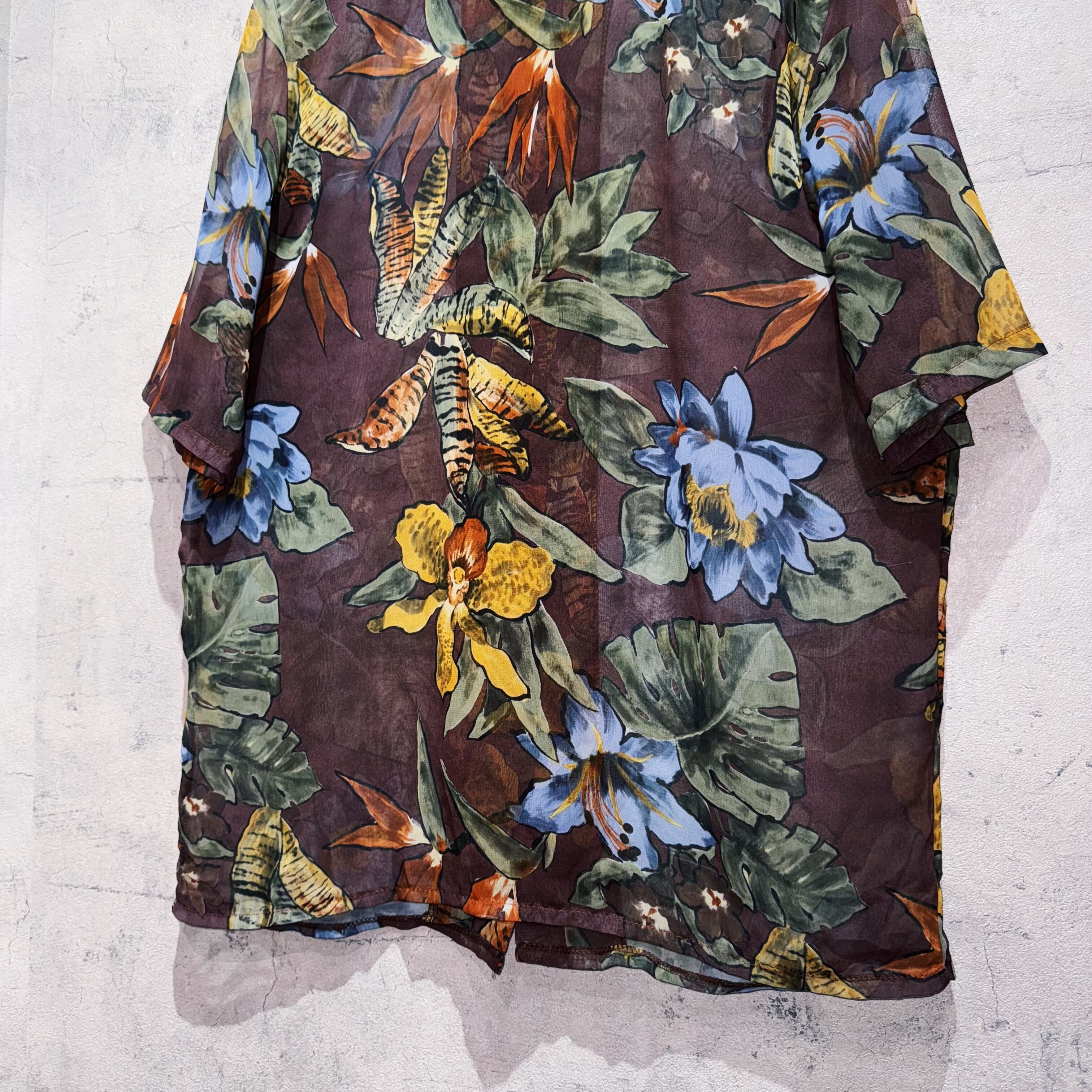 ヴィンテージアートグラフィックフラワーパターンショートスリーブシアーシャツ