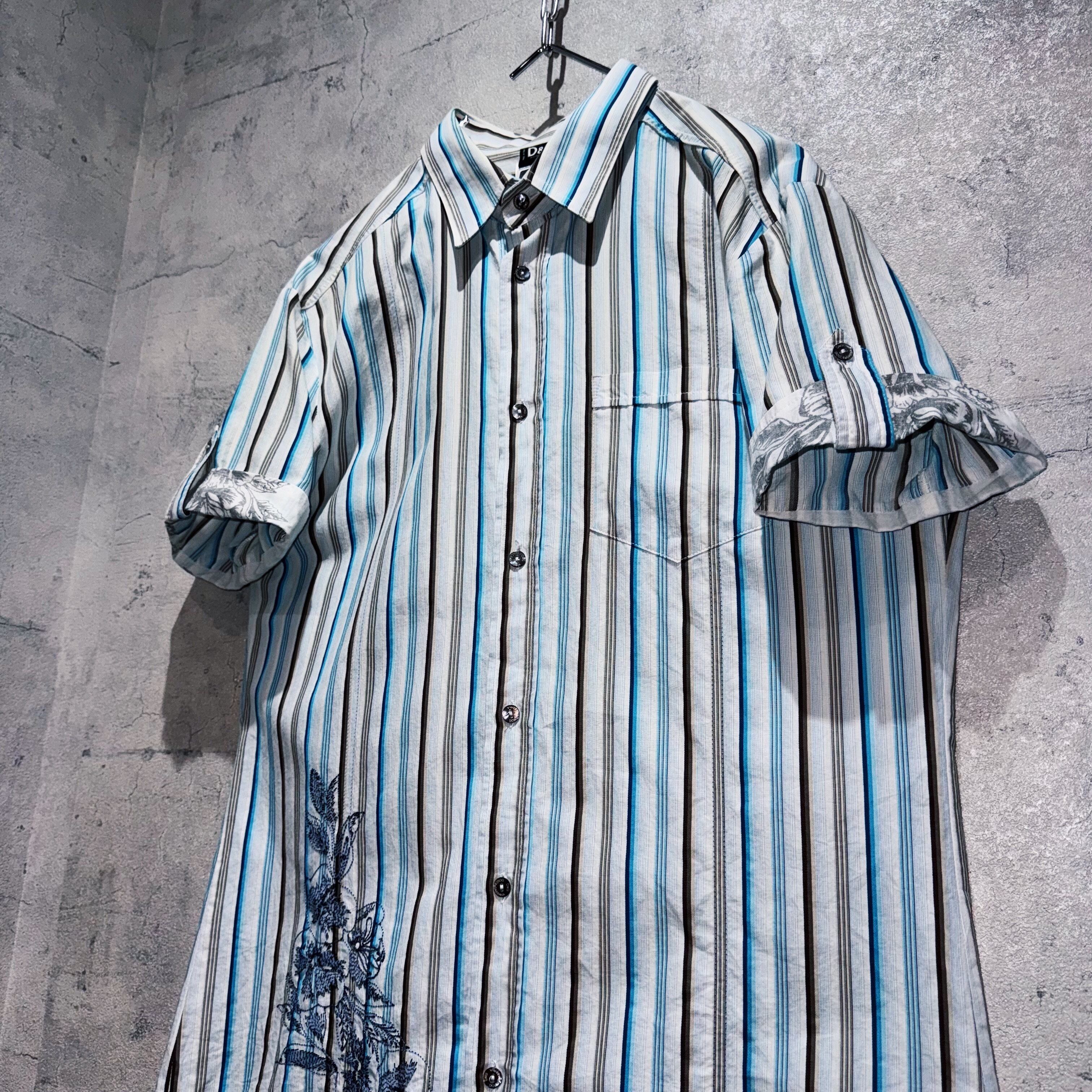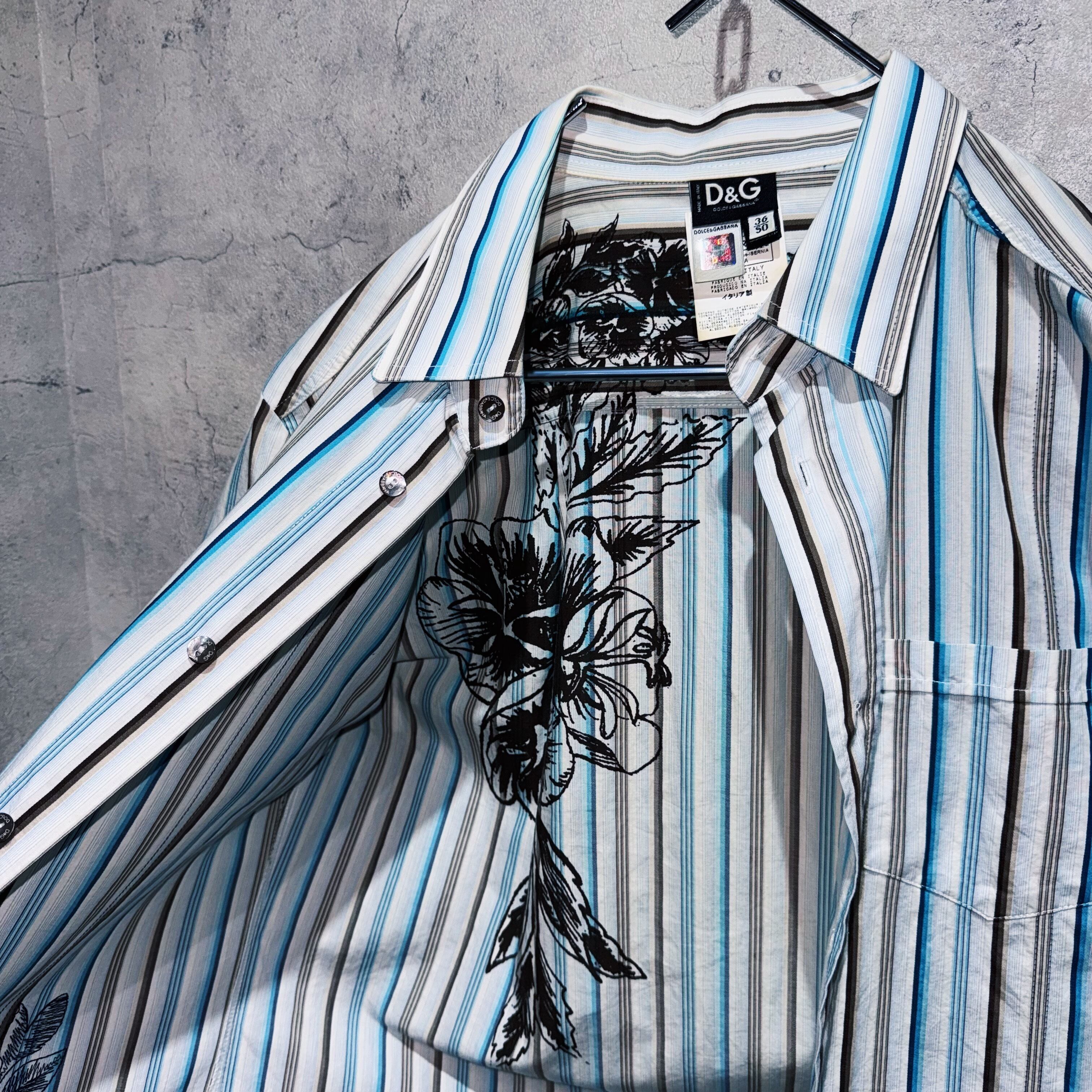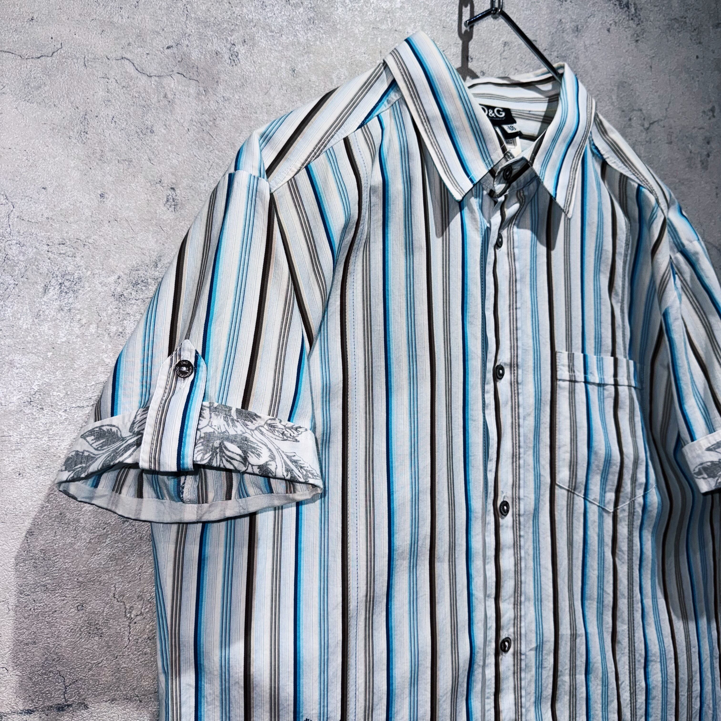 "DOLCE&GABBANA"Aloha×stripe pattern design short sleeve shirt