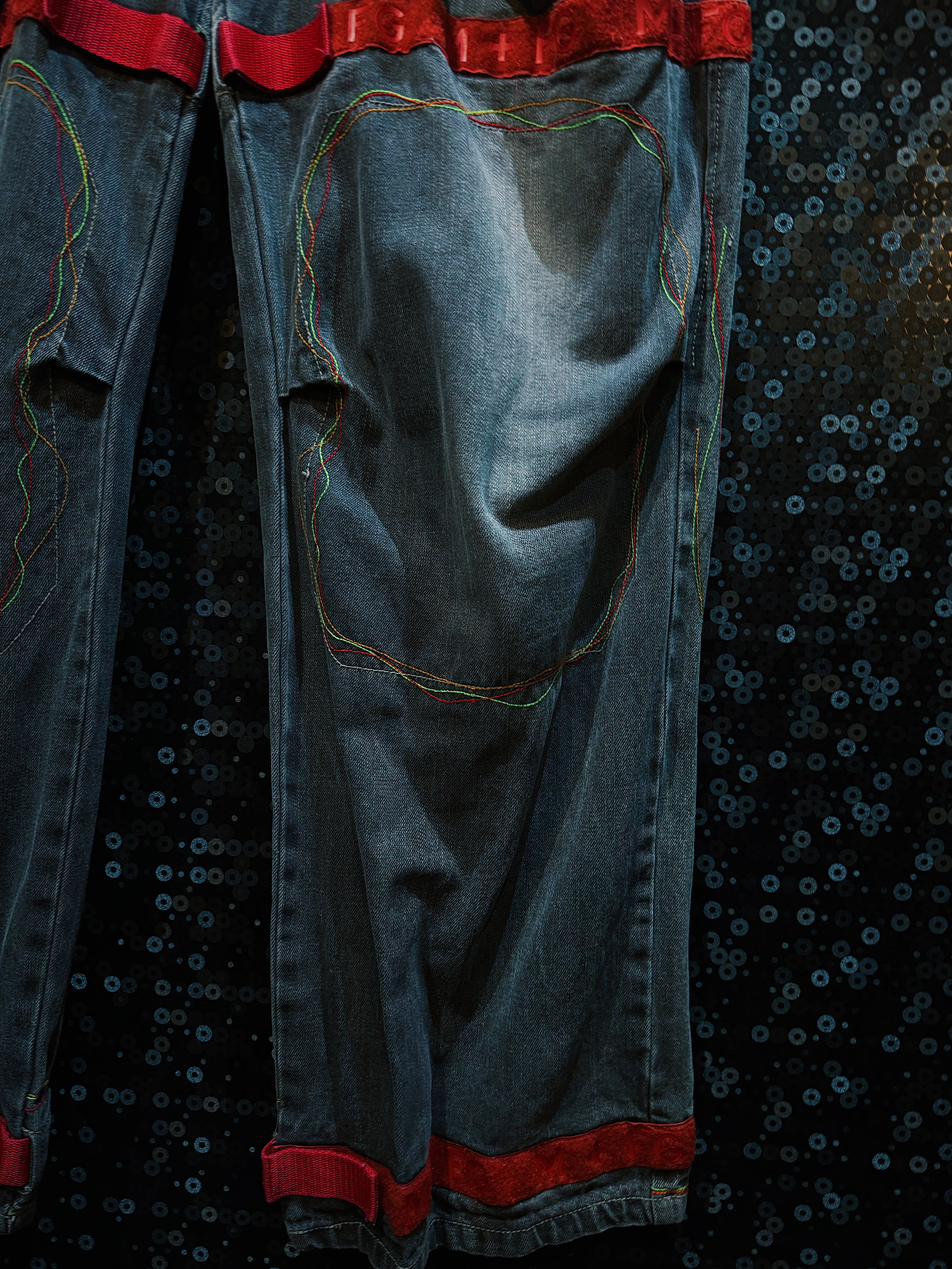レッドのパーツ切替えや太めのダブルステッチ、立体的に配置されたポケットなど、Girbaudらしい機能美が詰まってる。ステッチもマルチカラーになっていて、視覚的にもインパクトが強い。程よいヴィンテージの色落ちと相まって、ワーク感とストリート感が絶妙に融合しているのが魅力。