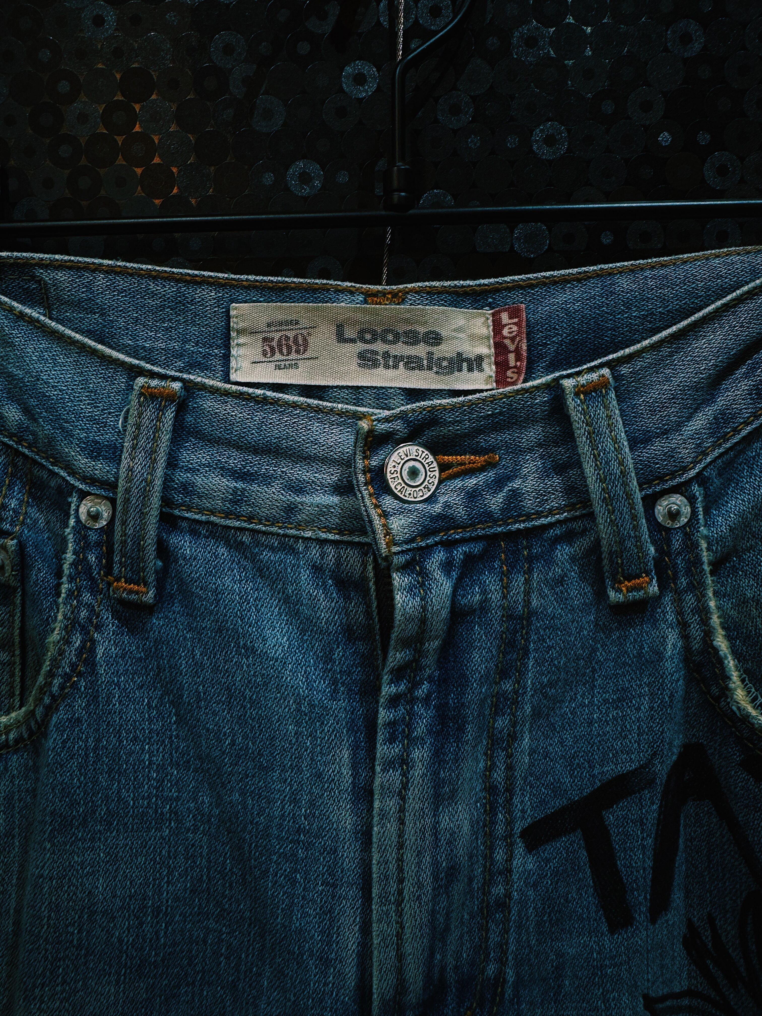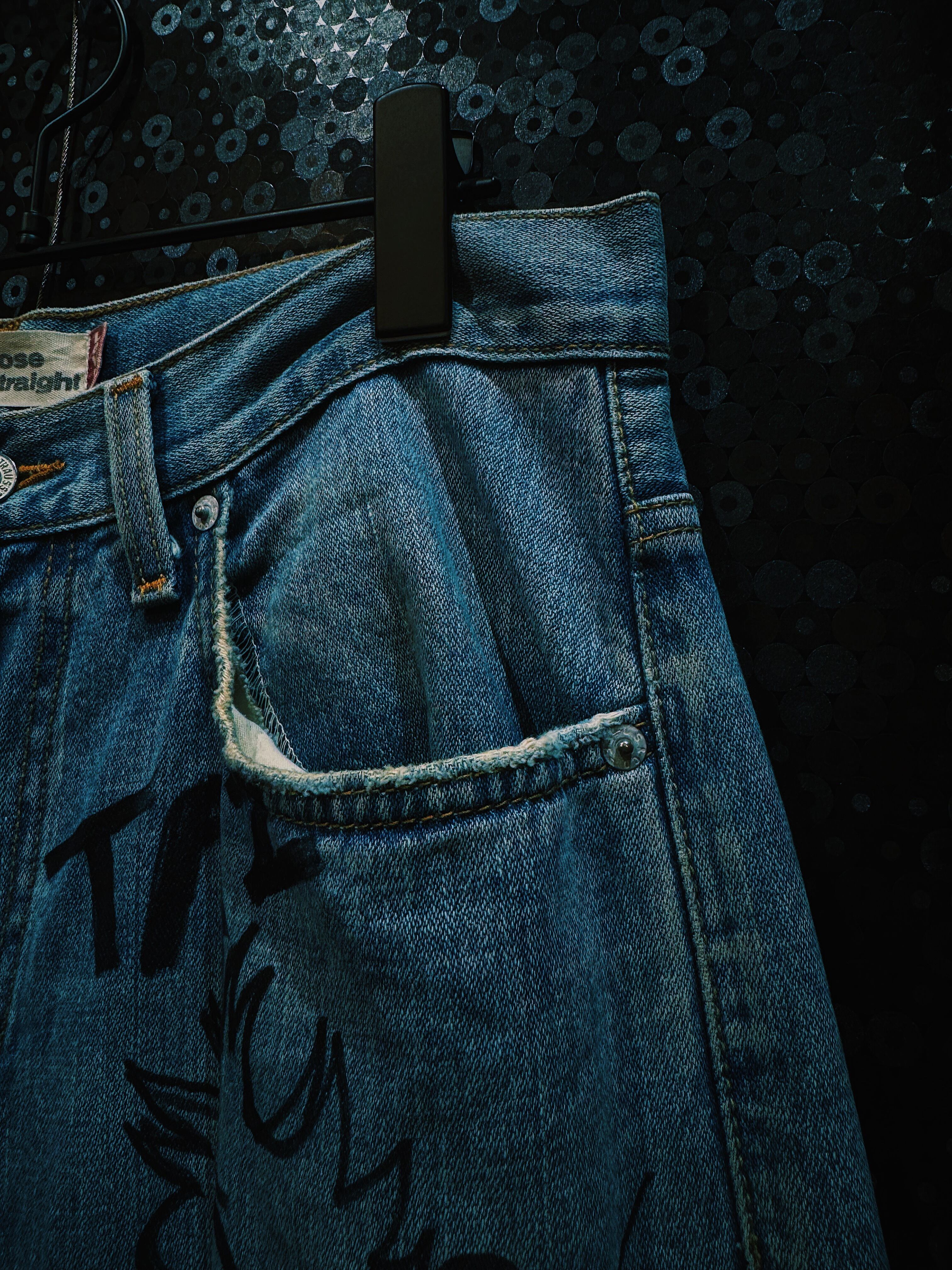 【ÆIEM】"loose straight"vintage paint custom Tasmanian devil detail denim pants