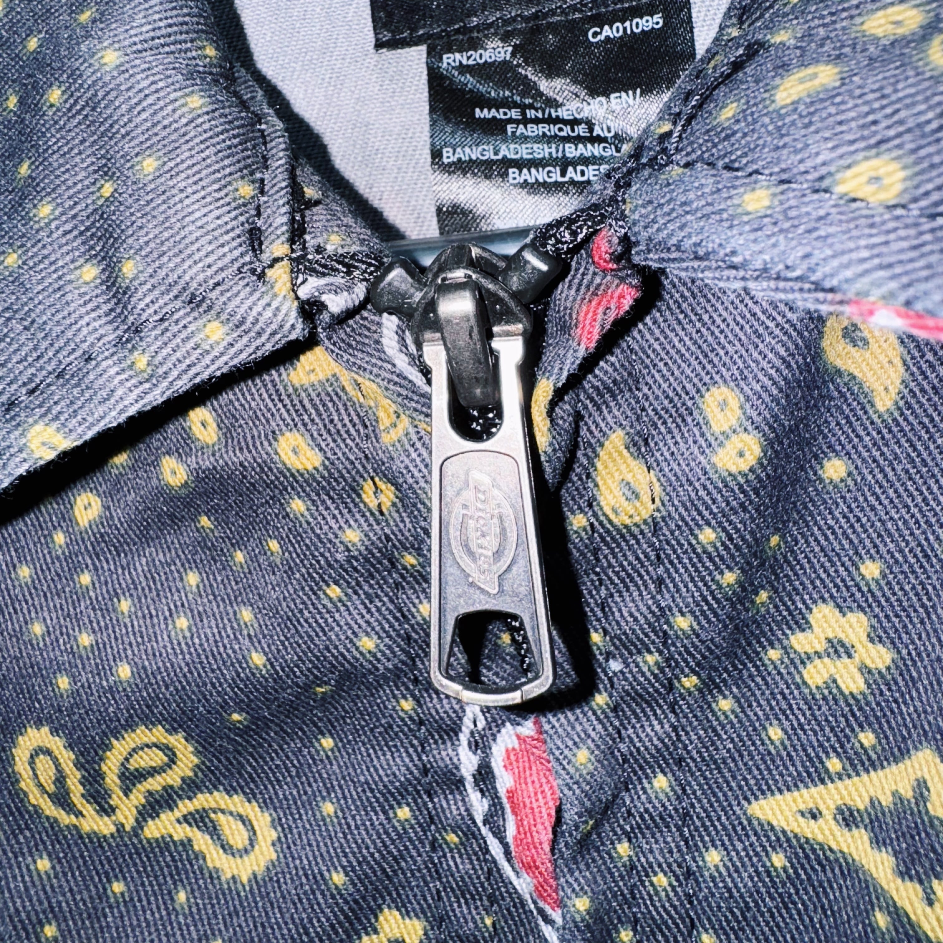 Dickiesらしいワーク地で仕立てたクロップド丈のジャケットに、存在感のあるカラーリングでペイズリー柄をあしらった力強い1着。