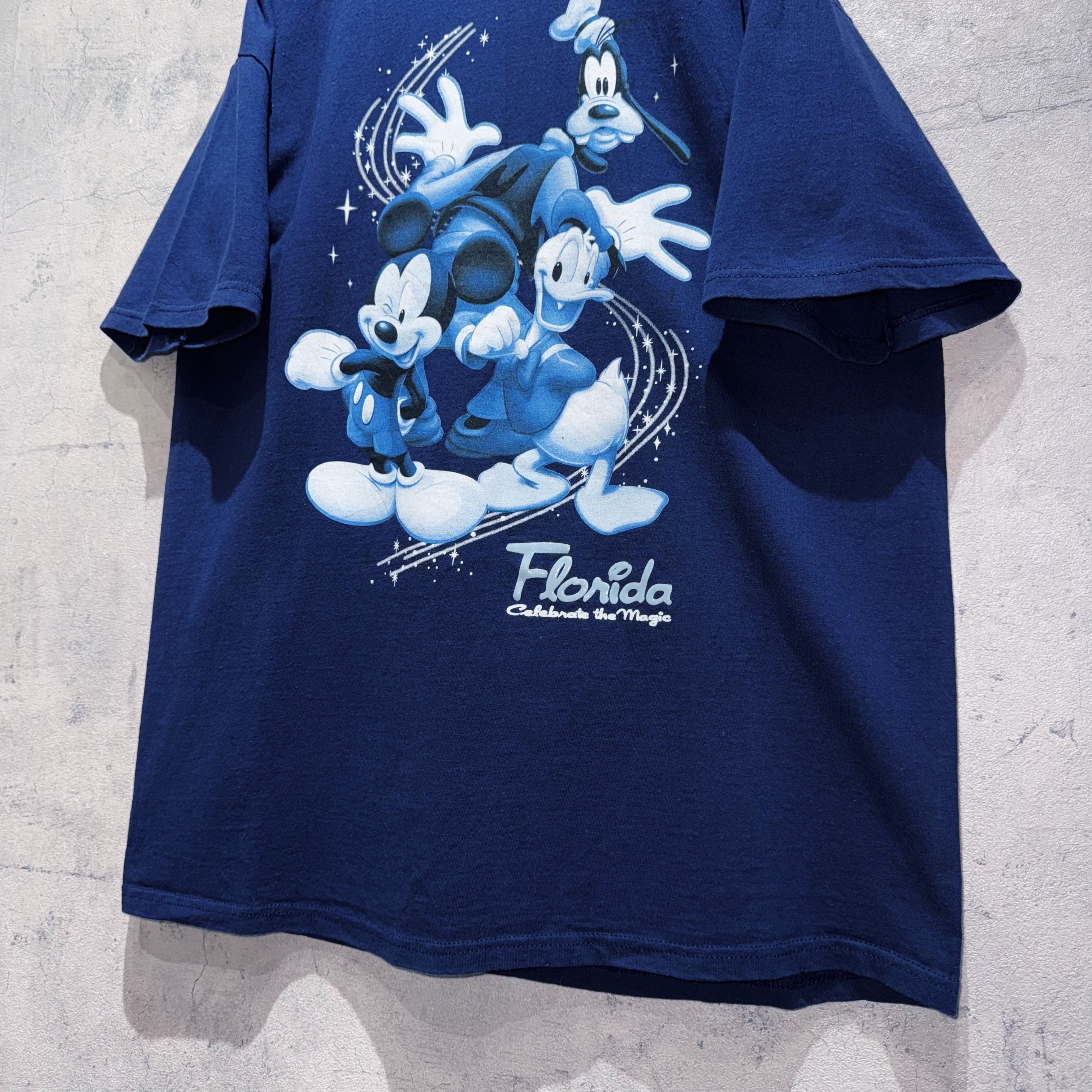 こちらフロリダのディズニーランドで販売されていた一枚。ミキフレからミッキー、ドナルド、グーフィーが大きめのグラフィックで写ったデザインTシャツ。
