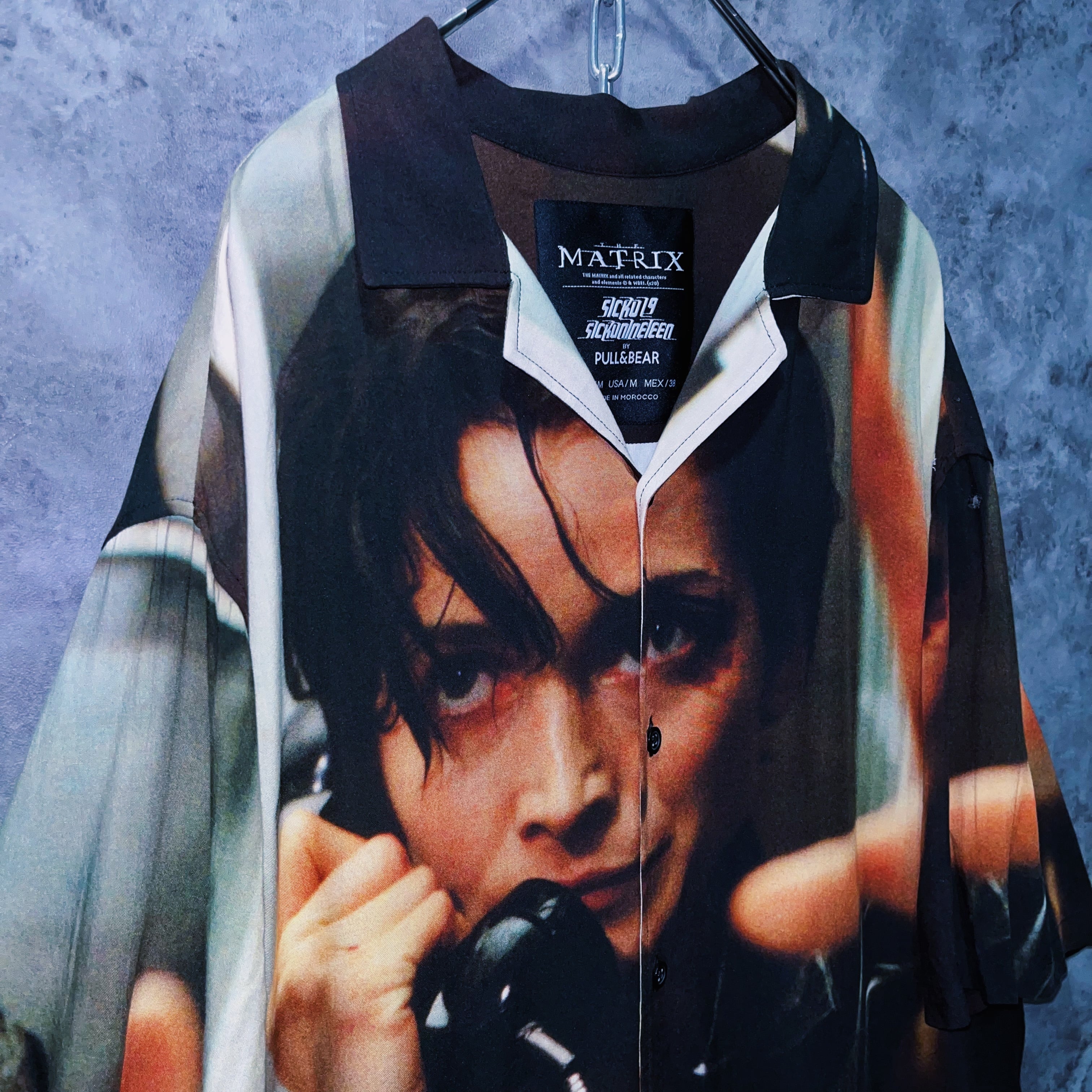 vintage “MATRIX” character print design movie scene open collar shirt