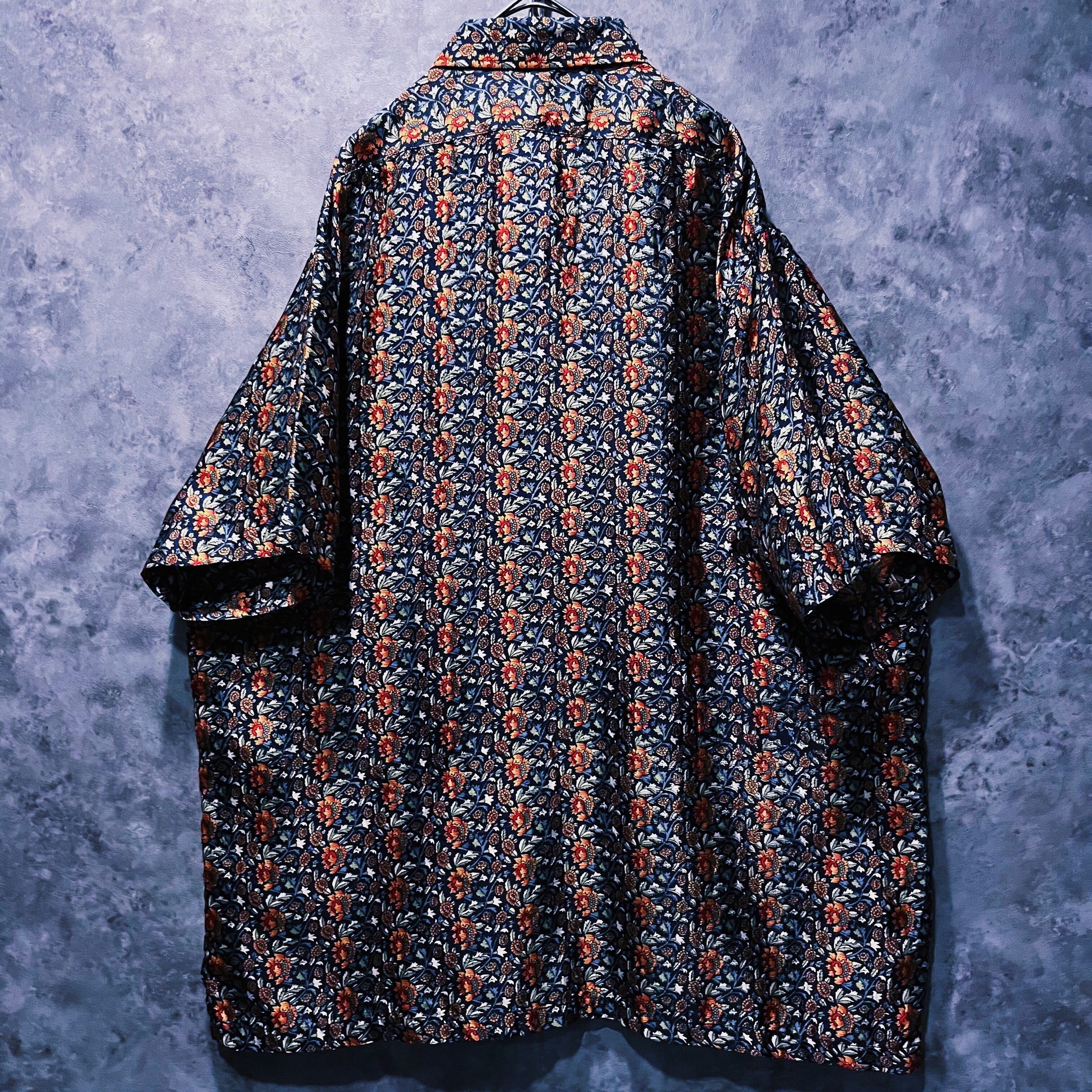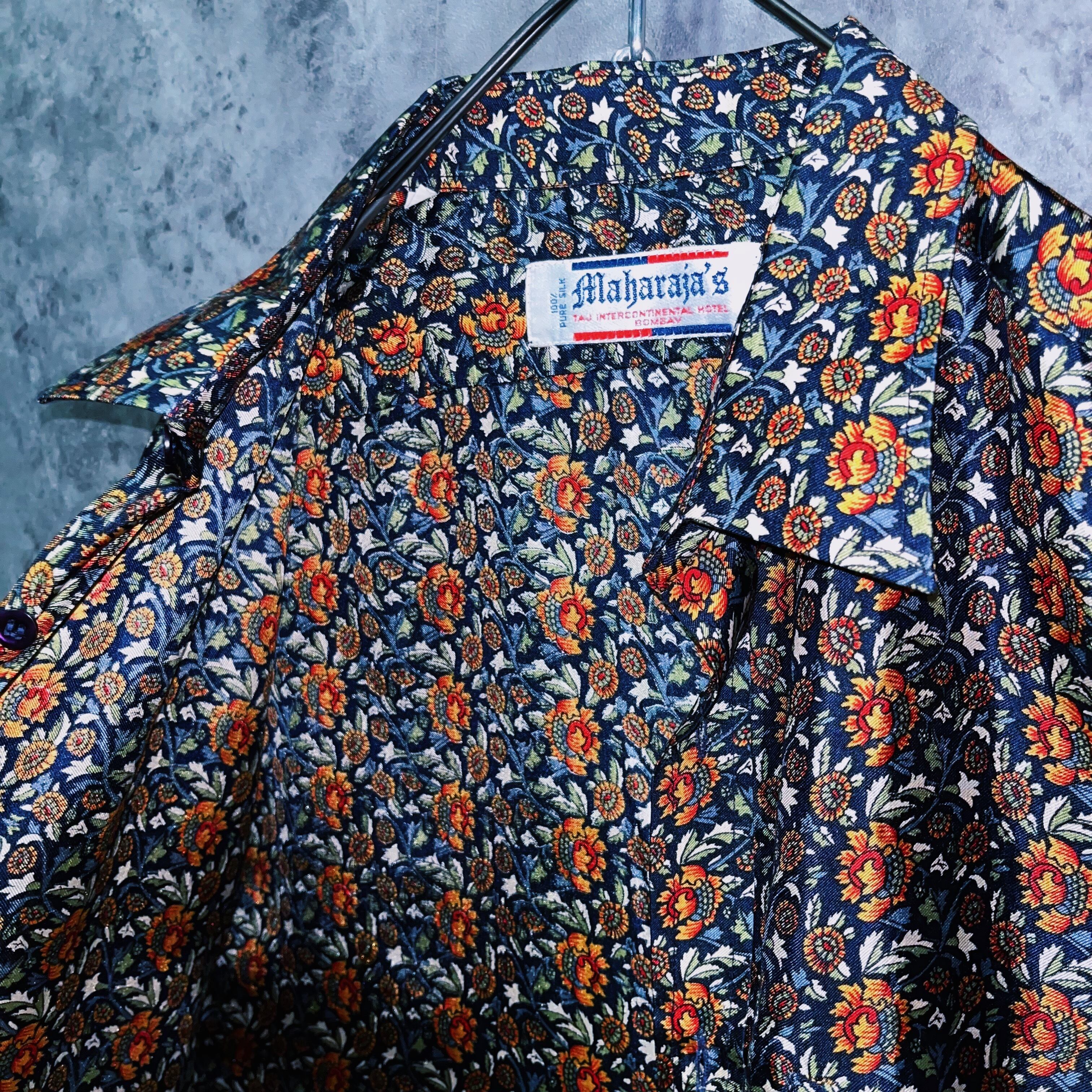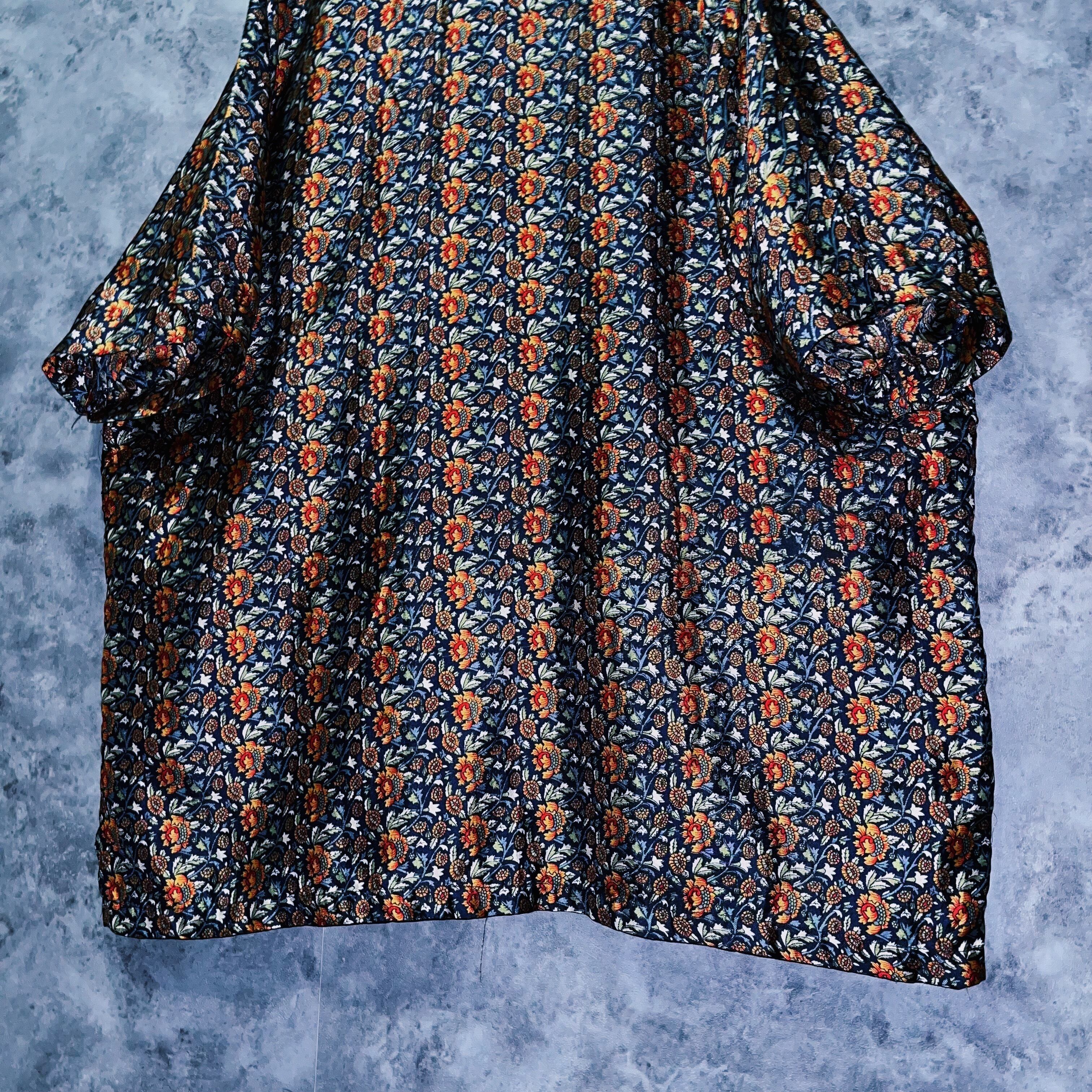 ヴィンテージフラワーパターンデザインラグジュアリーシルクシャツ