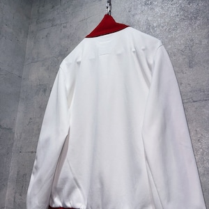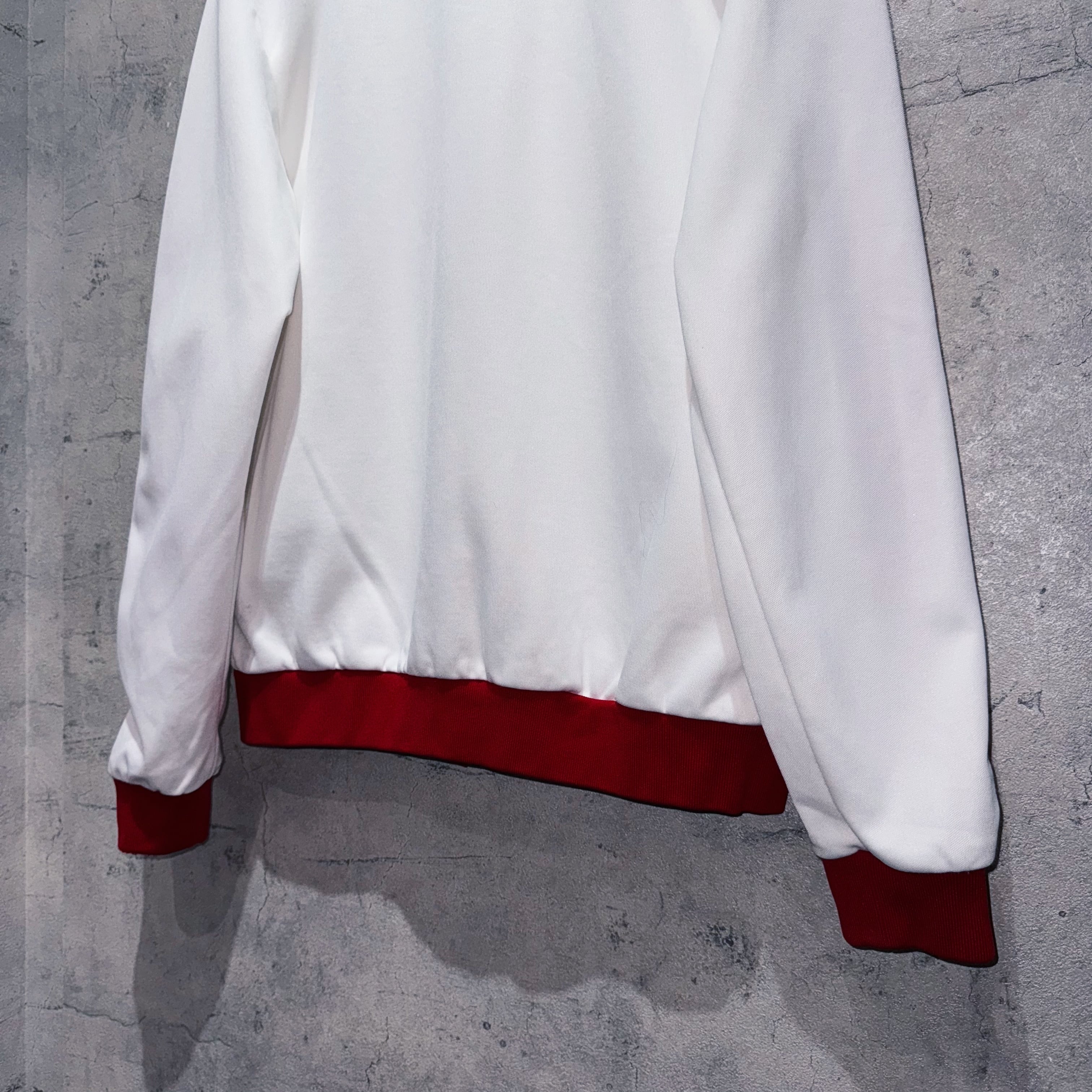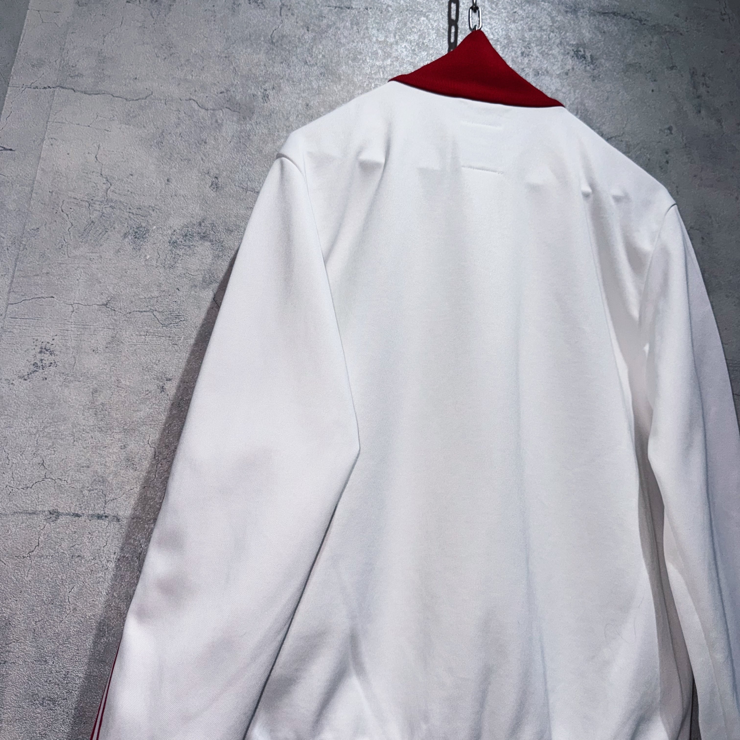 当店で人気カラーでもありますホワイト×レッドのカラーリングで仕上げたトラックジャケット。赤がボディではなく、白がメインカラーというのが肝ですね。