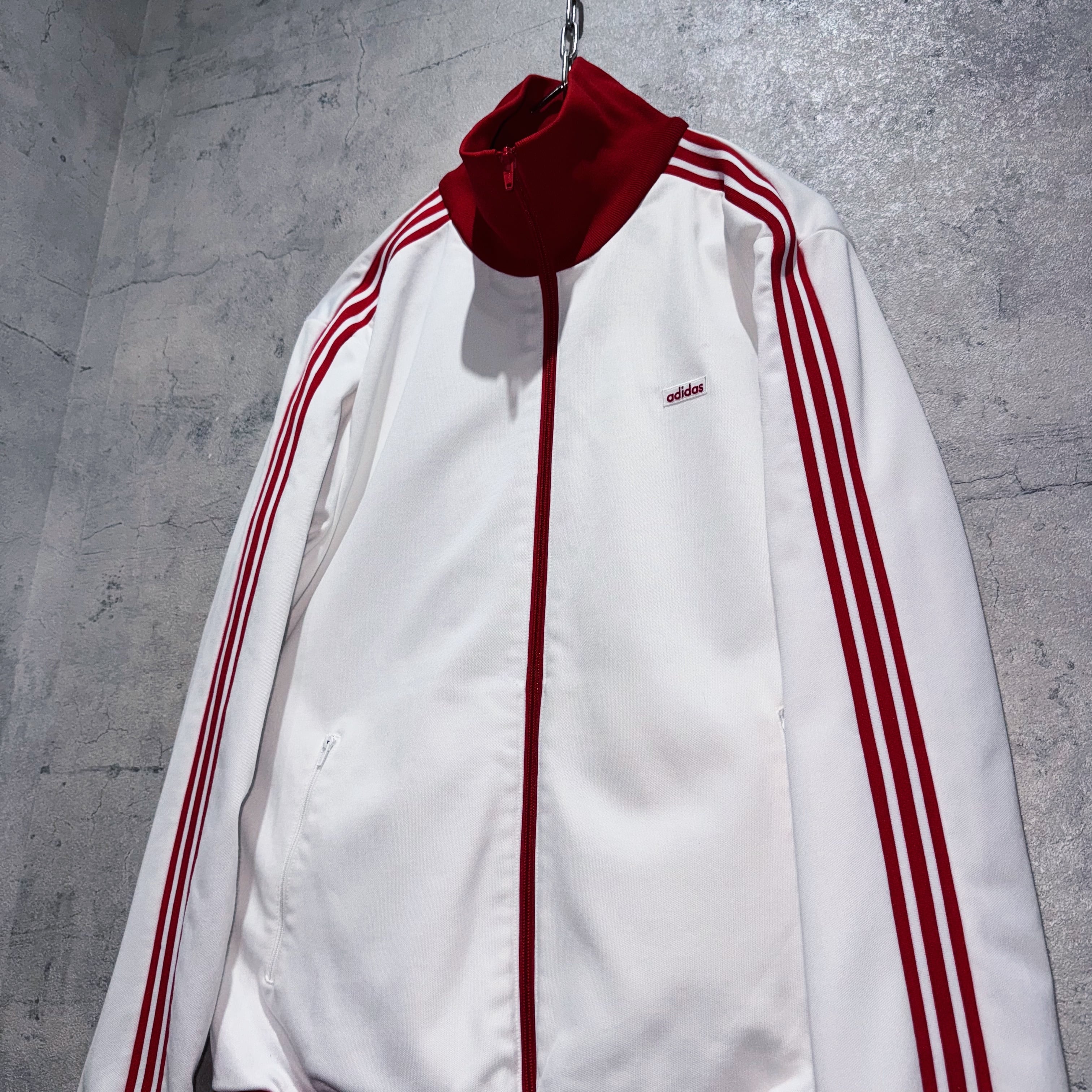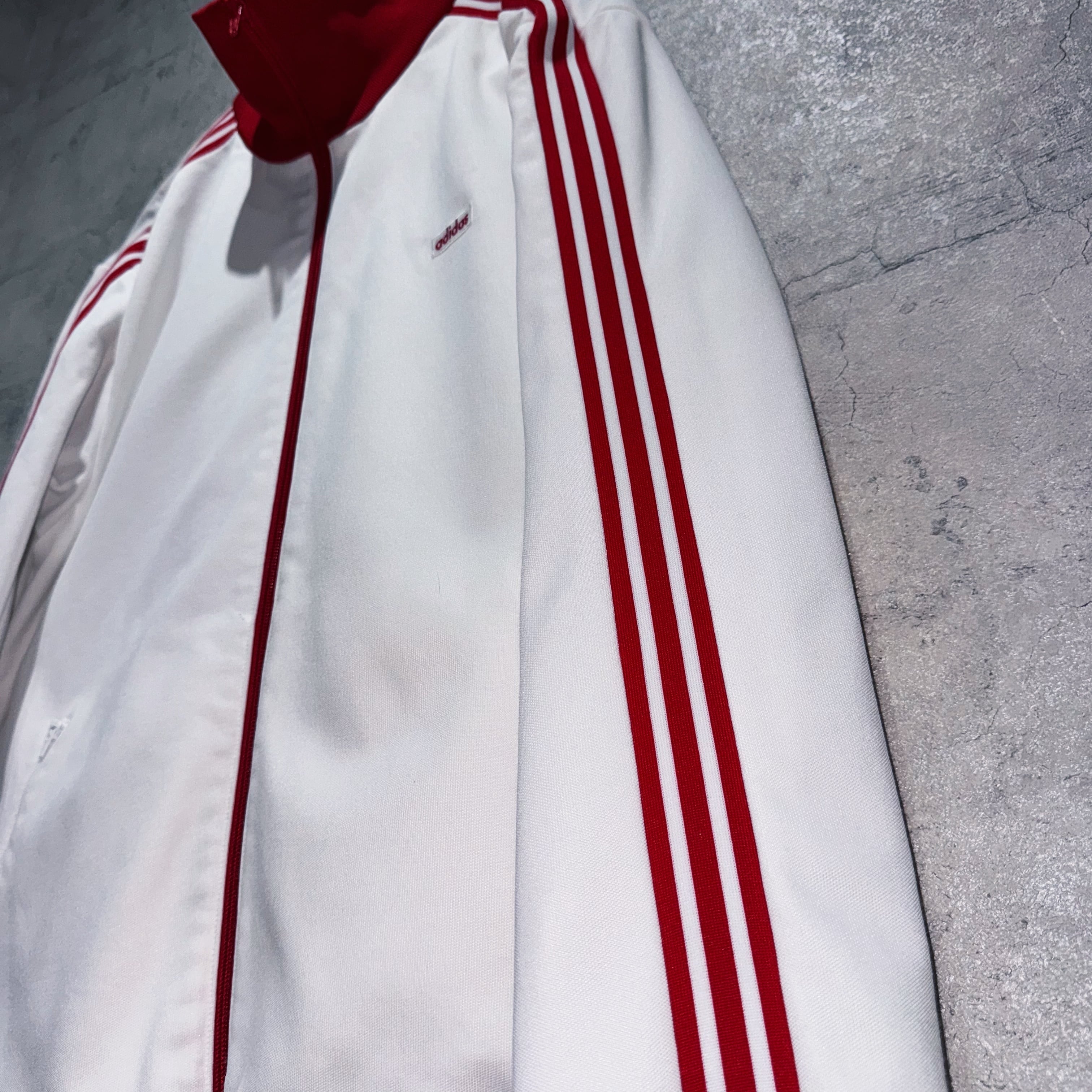 "アディダスオリジナルス"ホワイト×レッドカラースタンドネックトラックジャケット