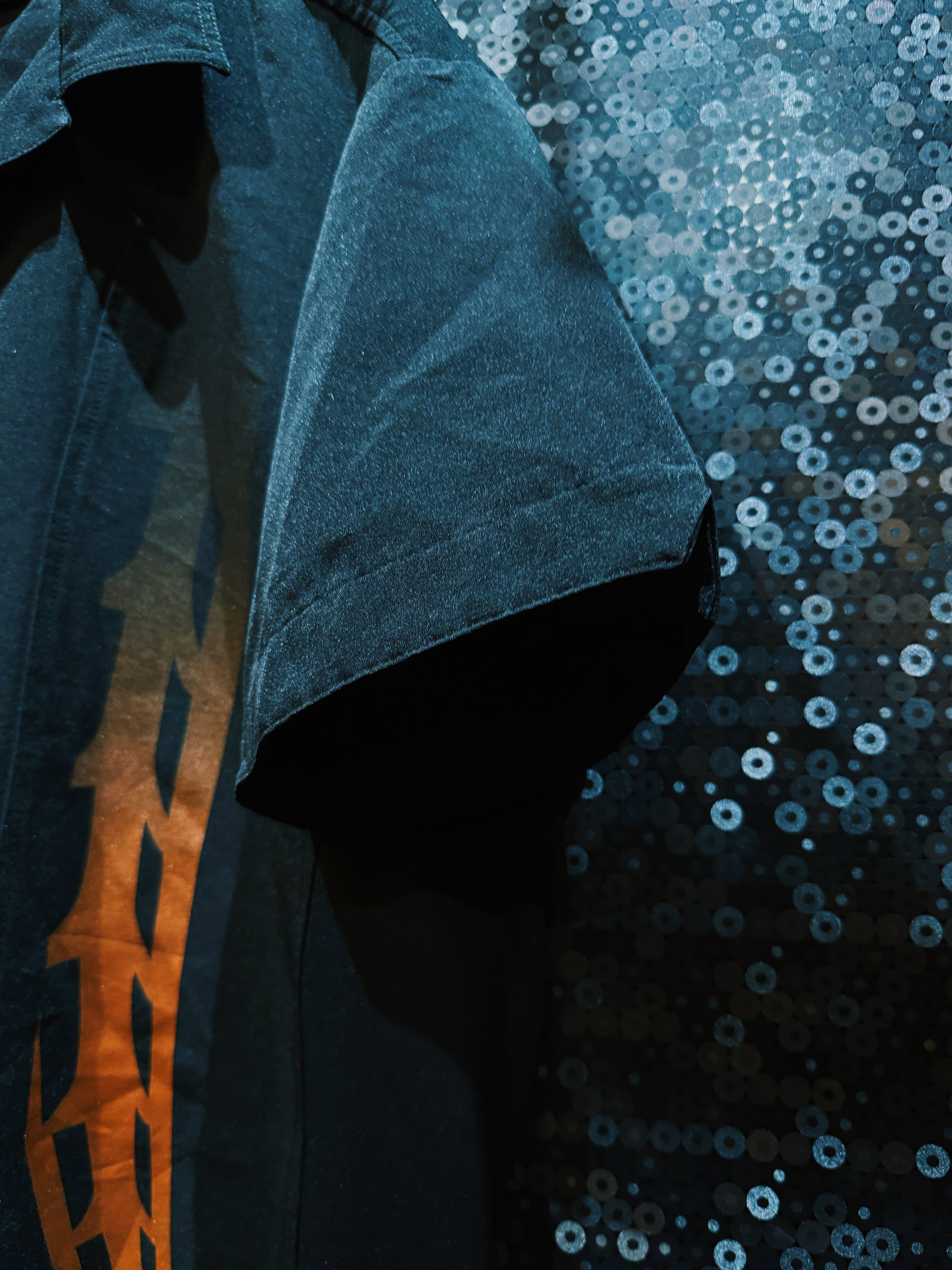 オープンカラー仕様で首元に抜け感を出しつつ、リラックスした着こなしが可能。クラシックなストリートやY2Kスタイル、アメカジコーデに相性抜群で、デニムやカーゴパンツとの組み合わせが特におすすめの一着。