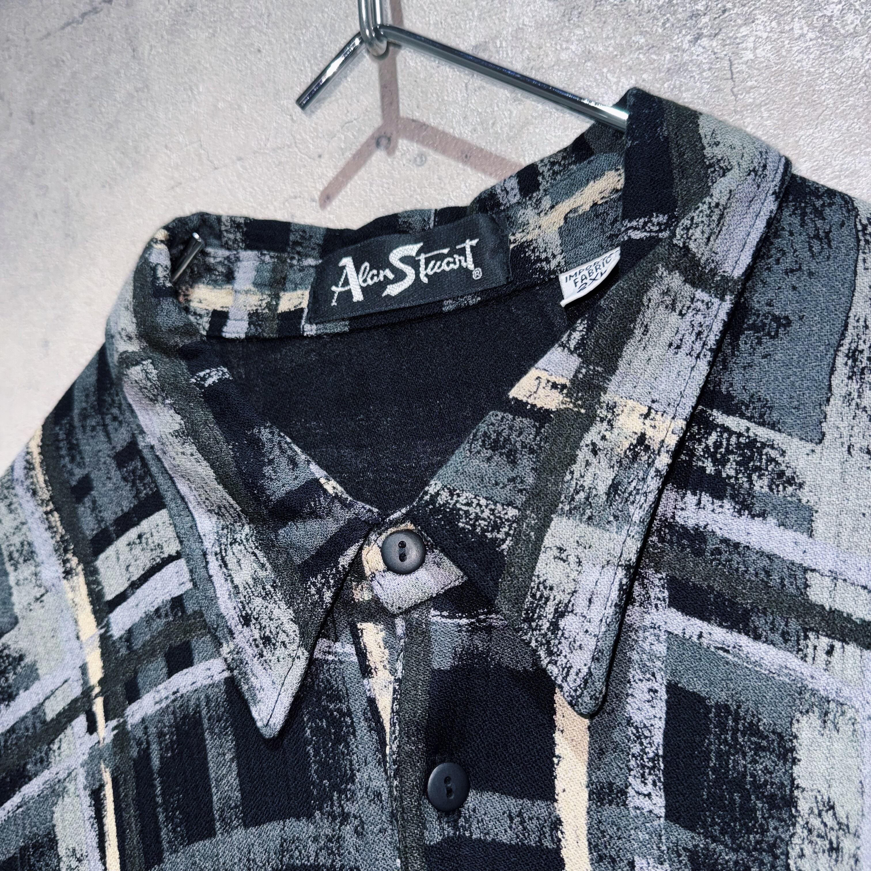 ヴィンテージアートチェックパターンデザインショートスリーブシャツ