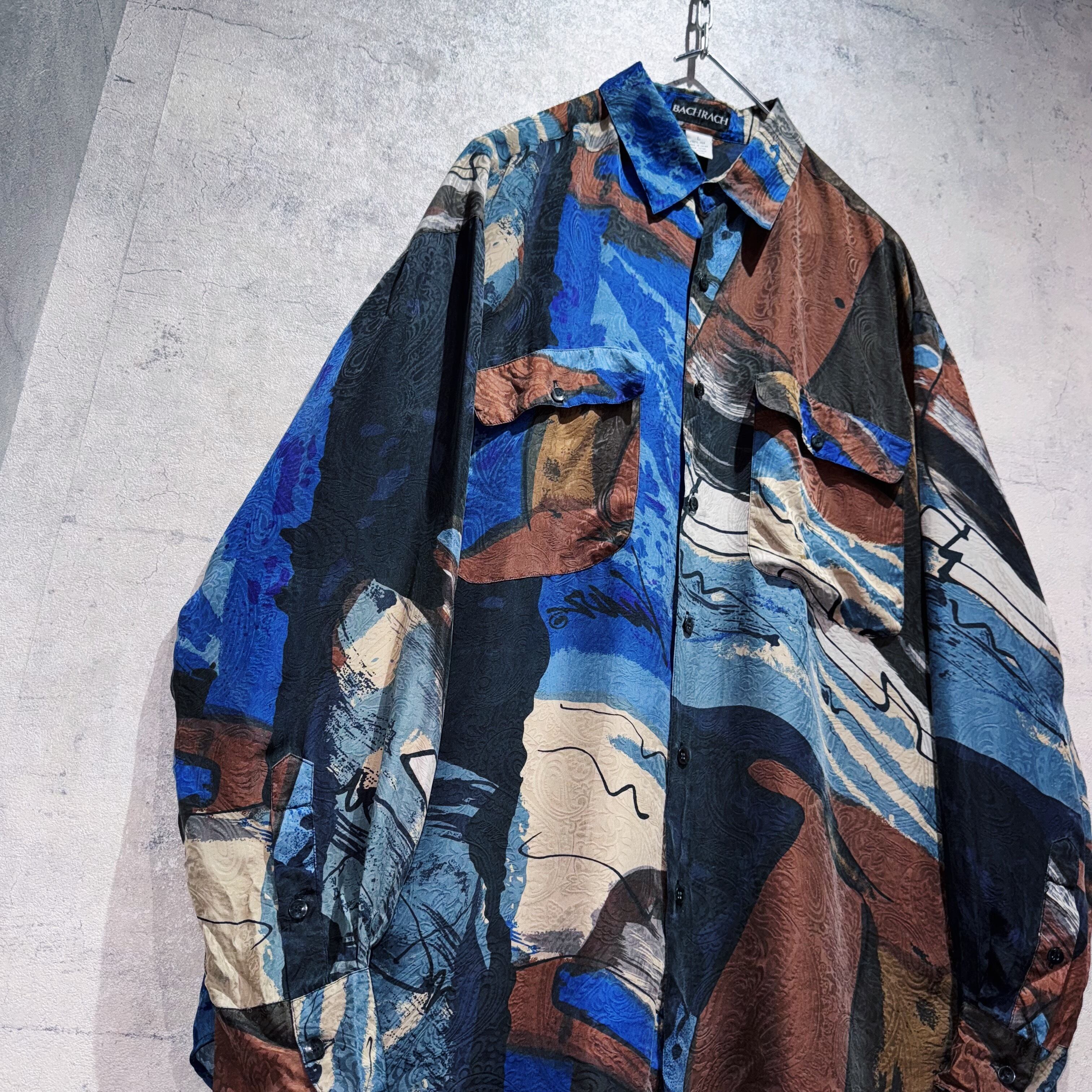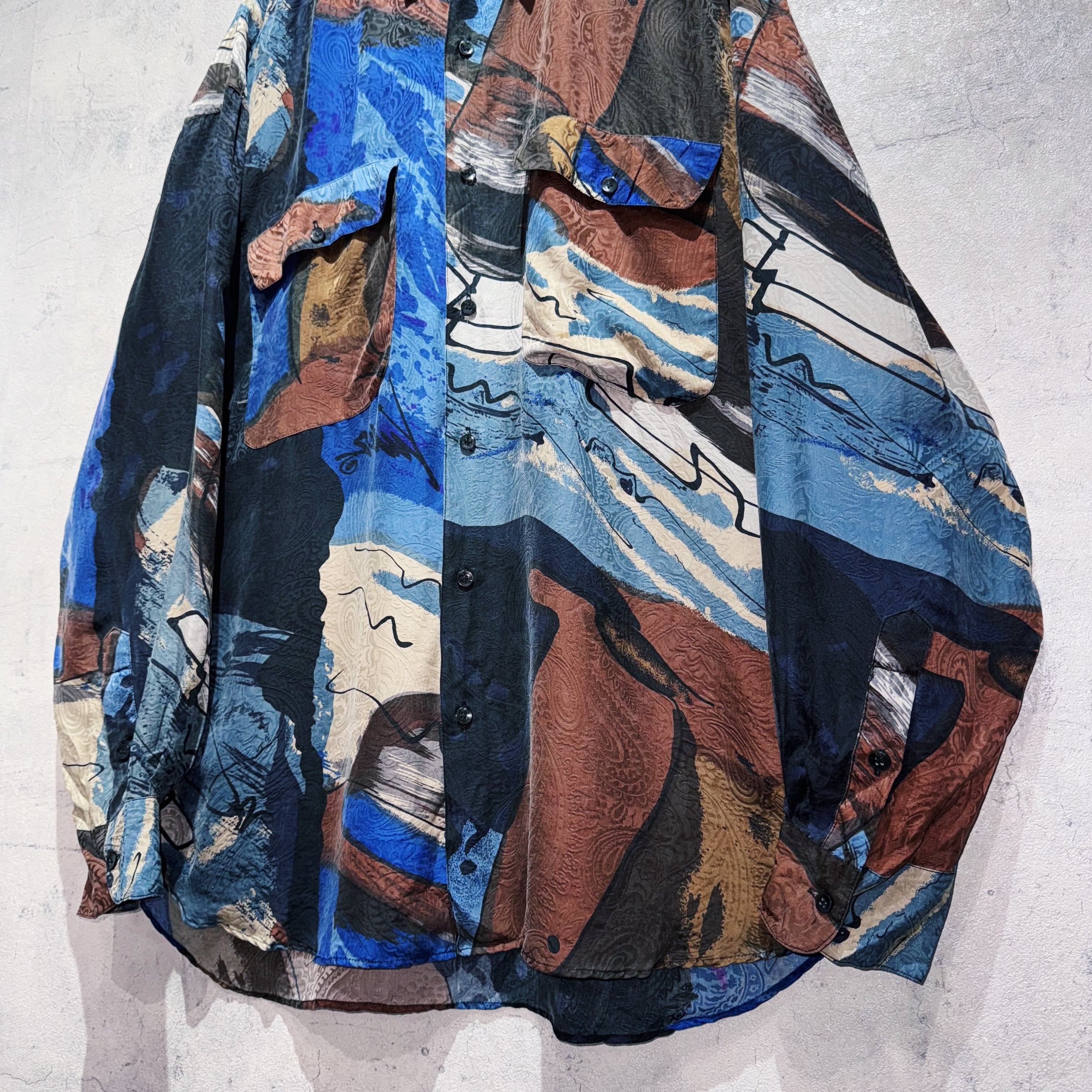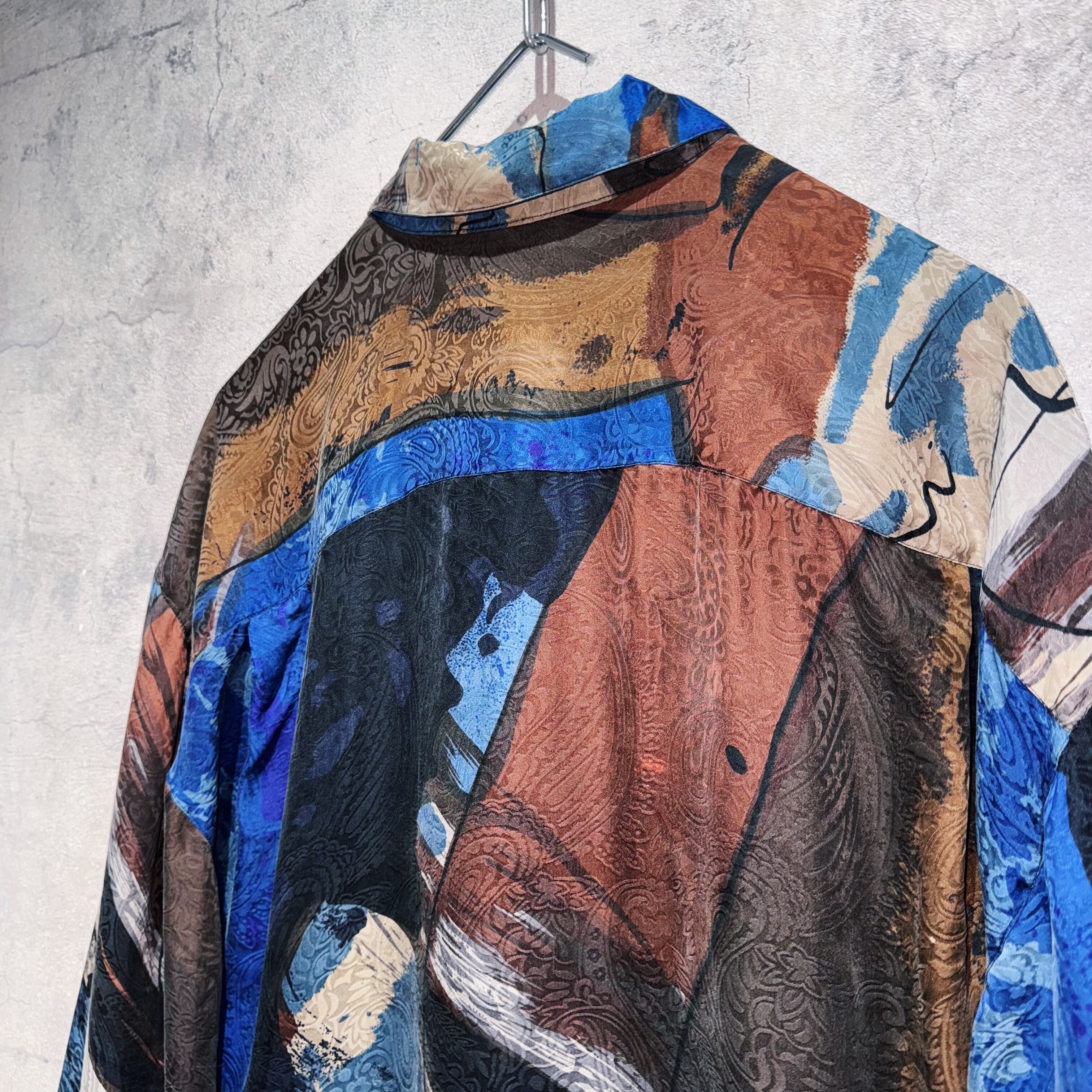 ヴィンテージ90年代アートグラフィックパターンデザインシルクシャツ
