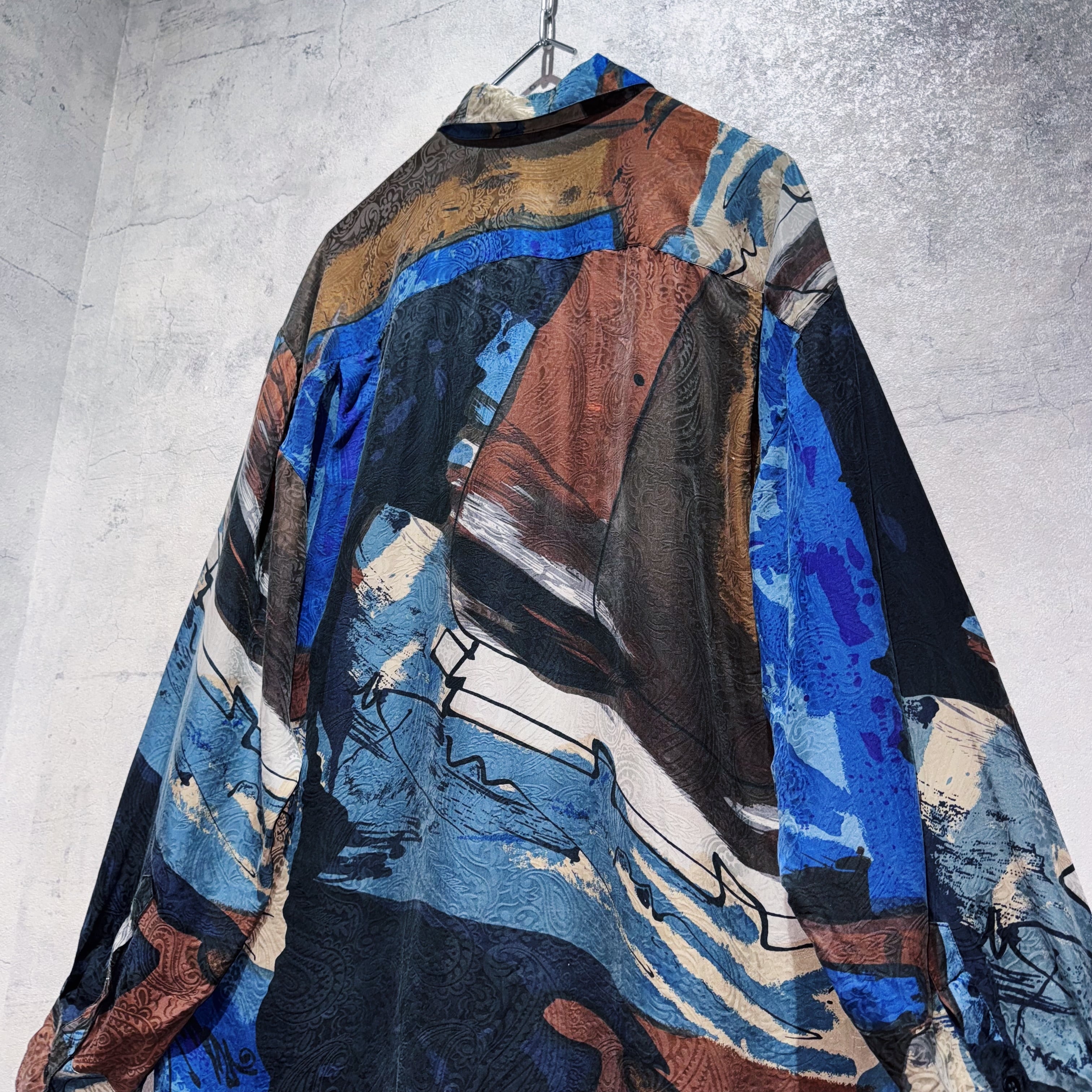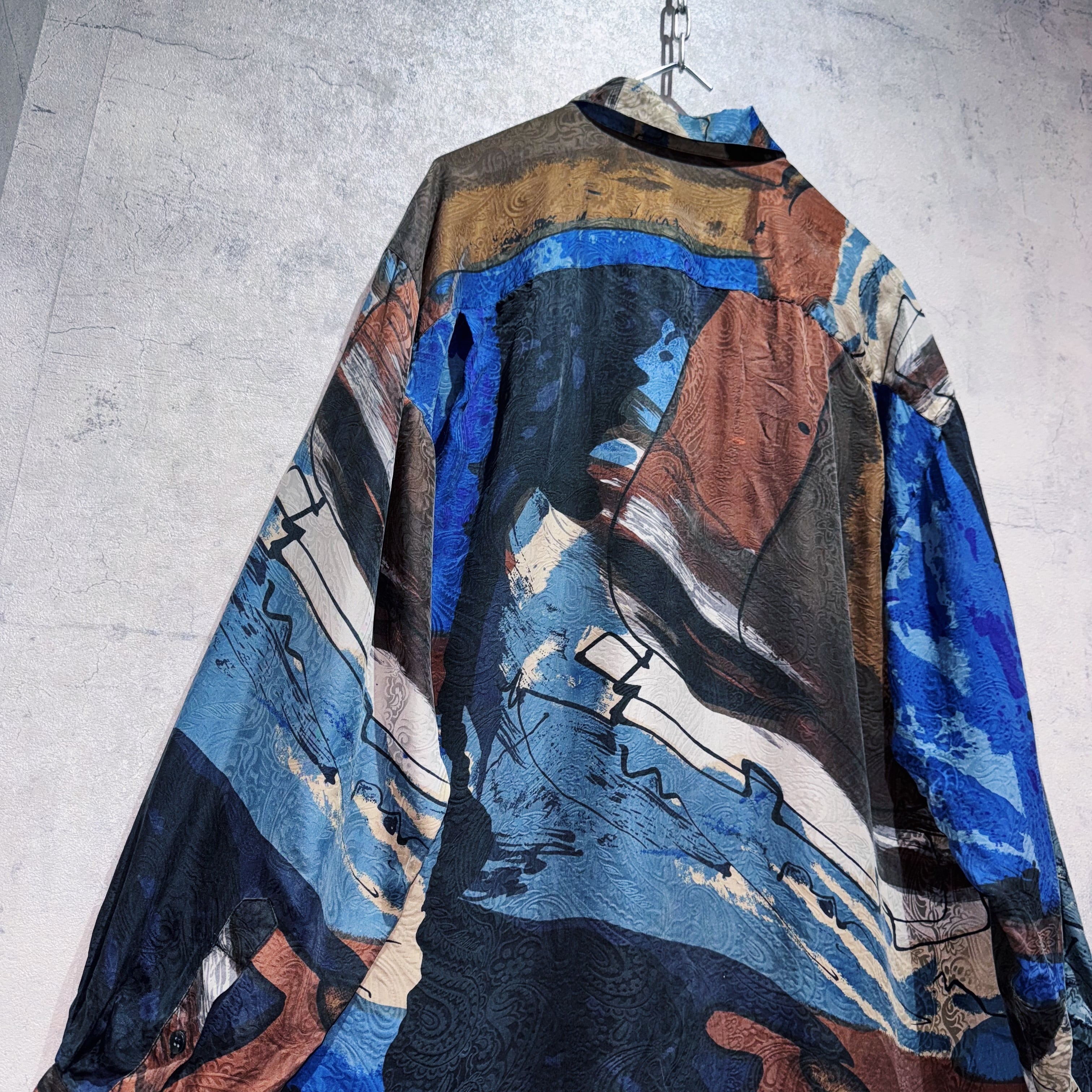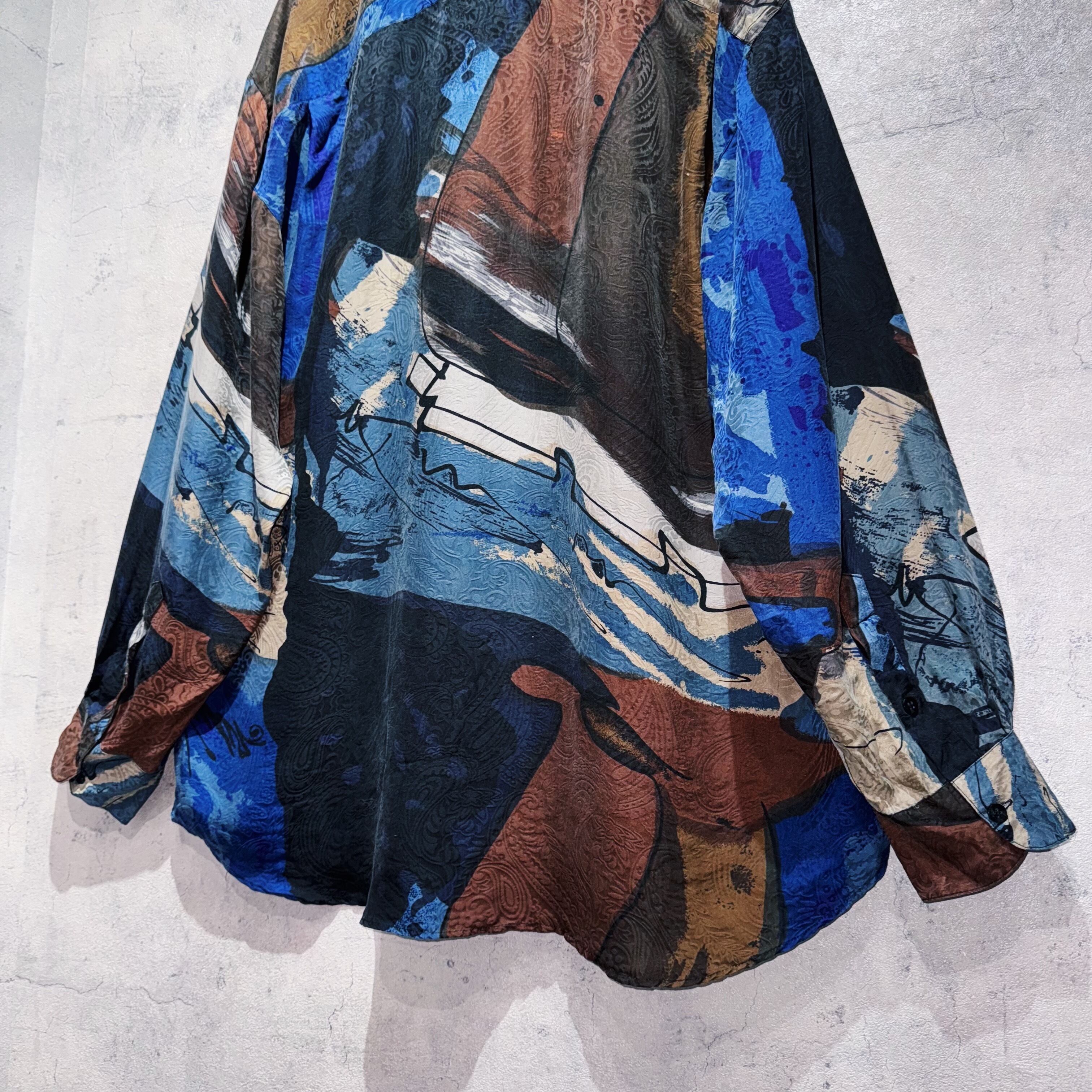 ヴィンテージ90年代アートグラフィックパターンデザインシルクシャツ