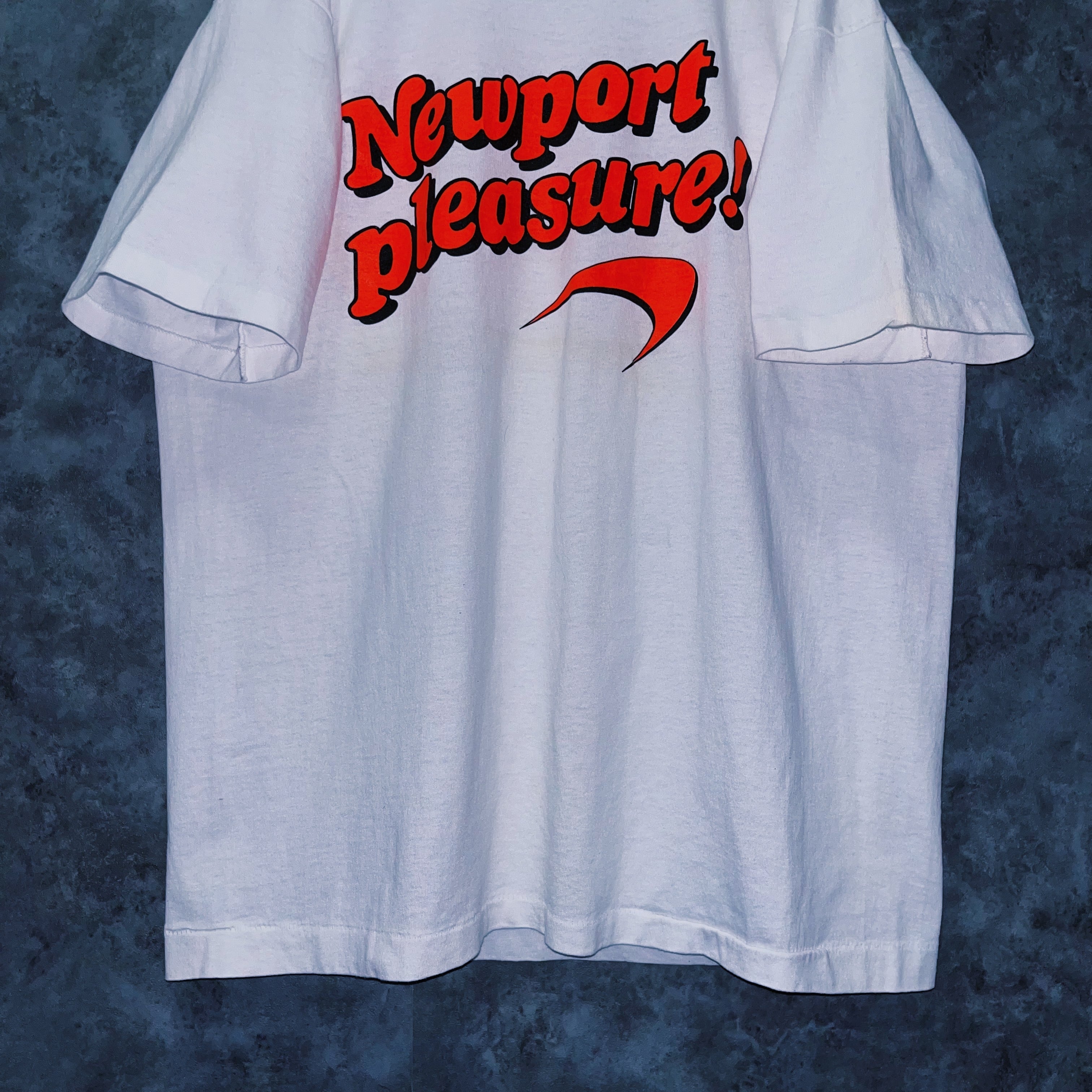 90’s vintage “Newport pleasure!” logo print design T-shirt