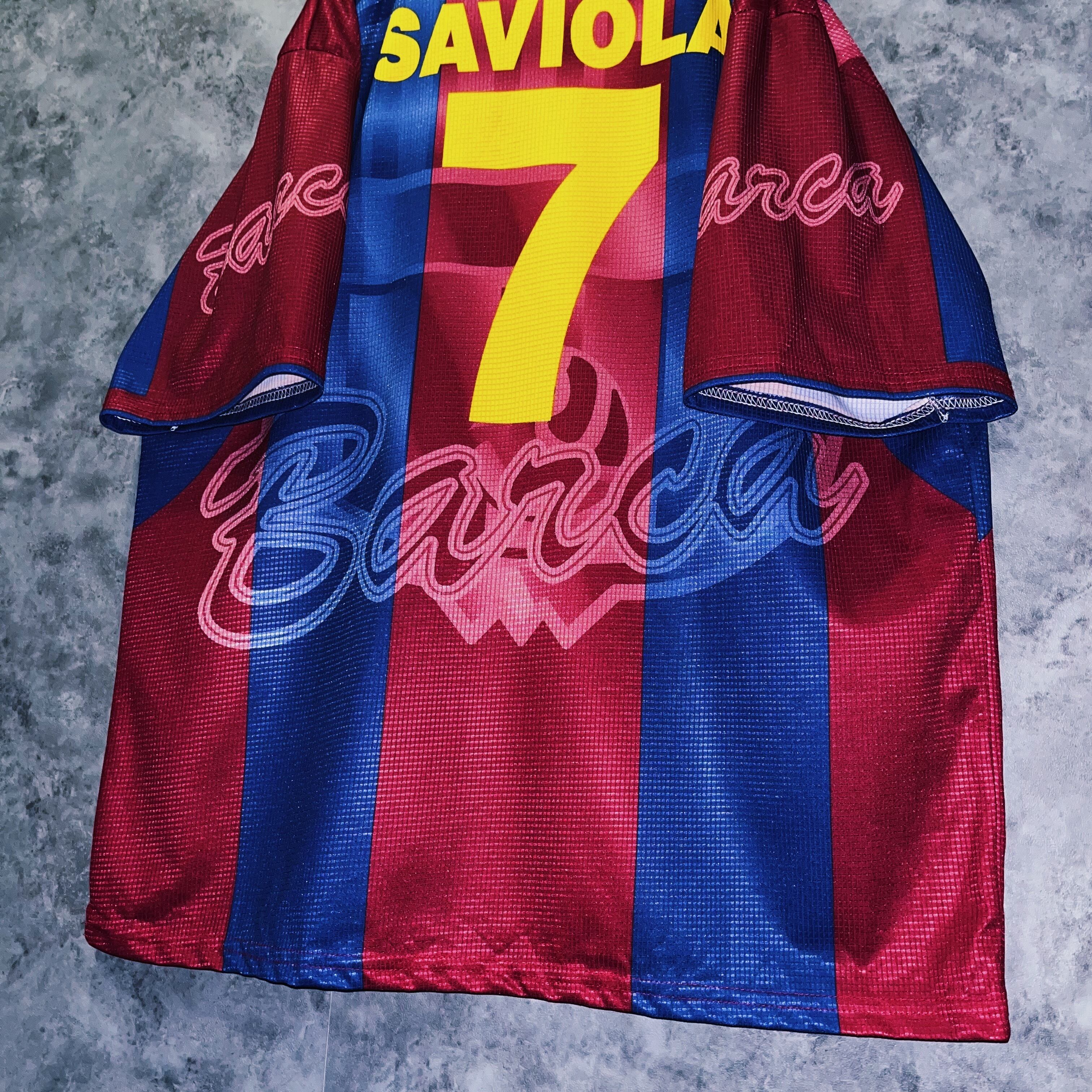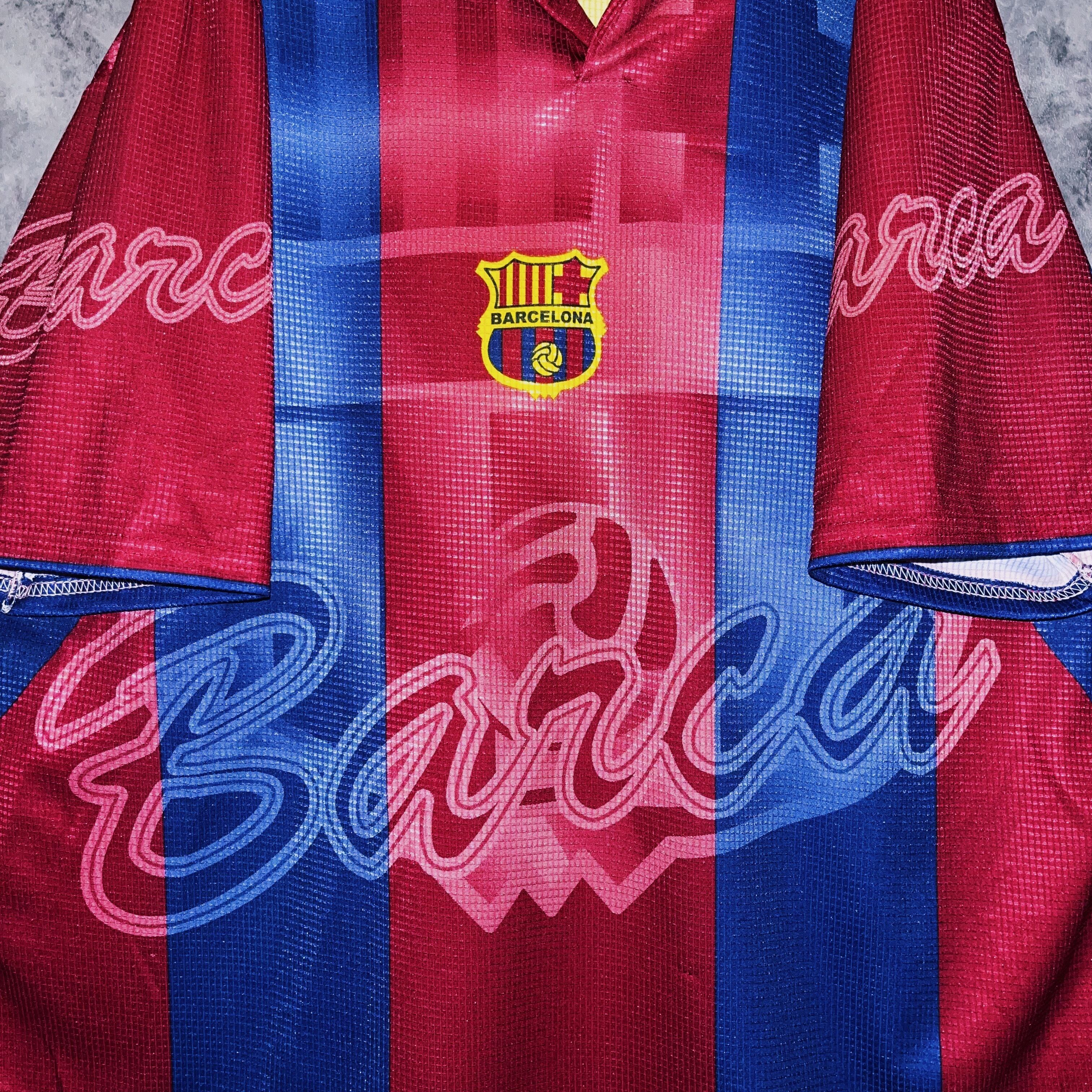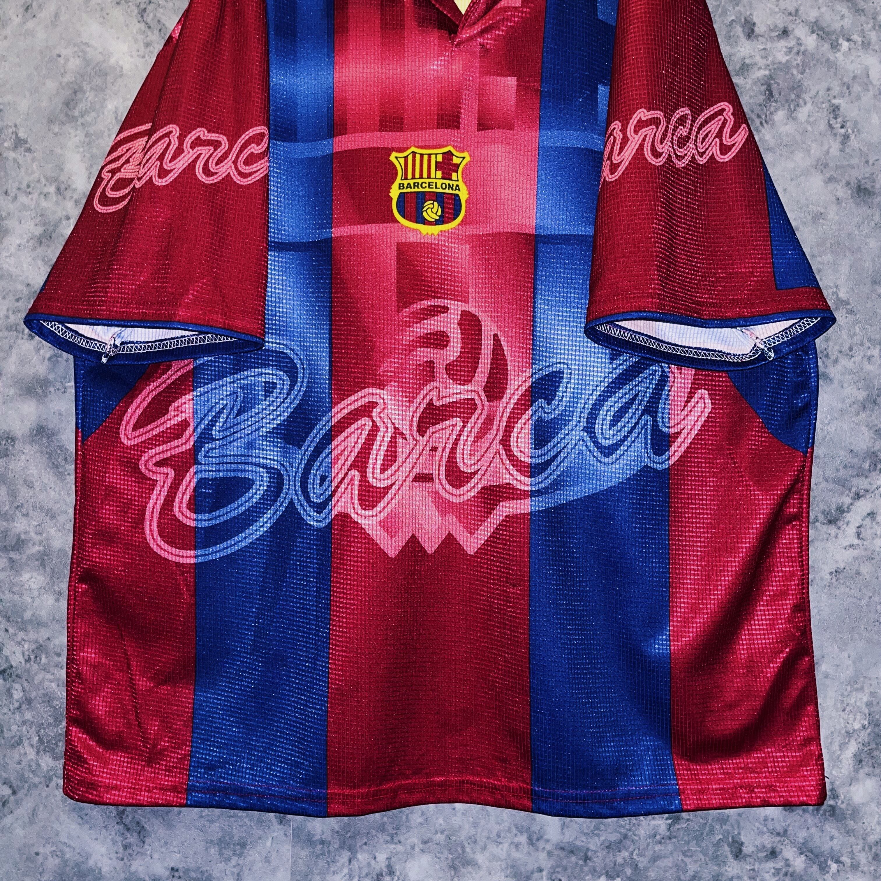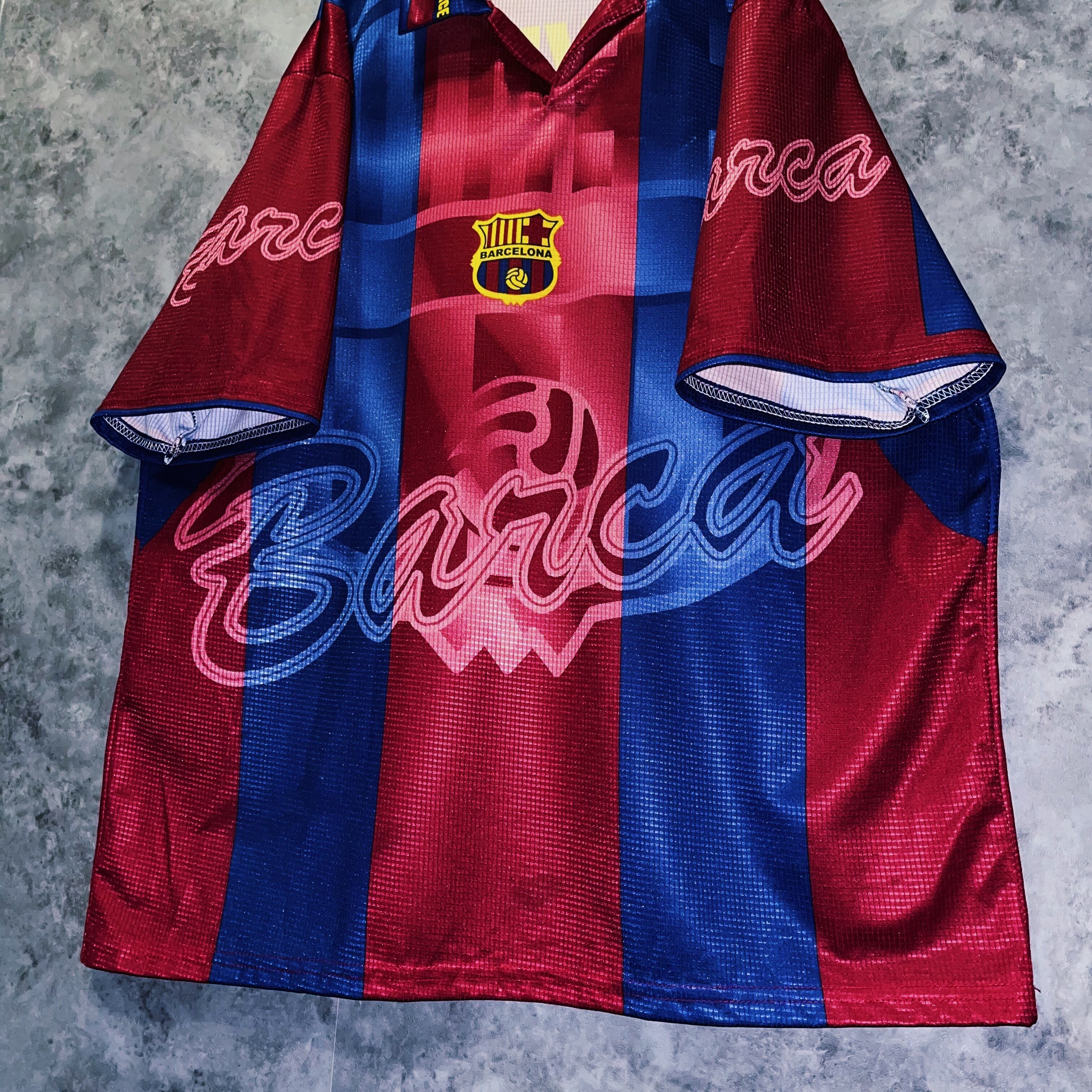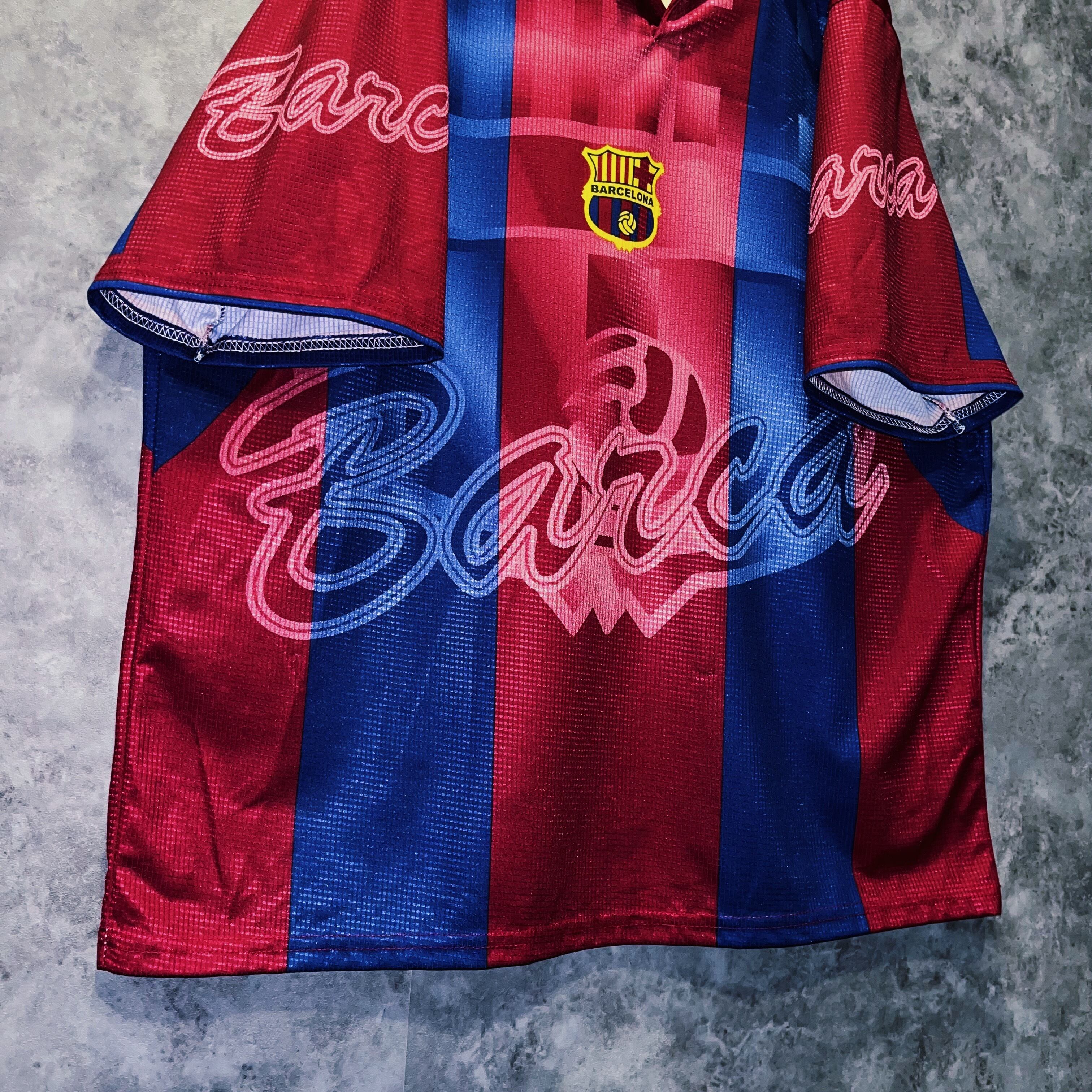 vintage “Barcelona” team emblem design soccer uniform shirt