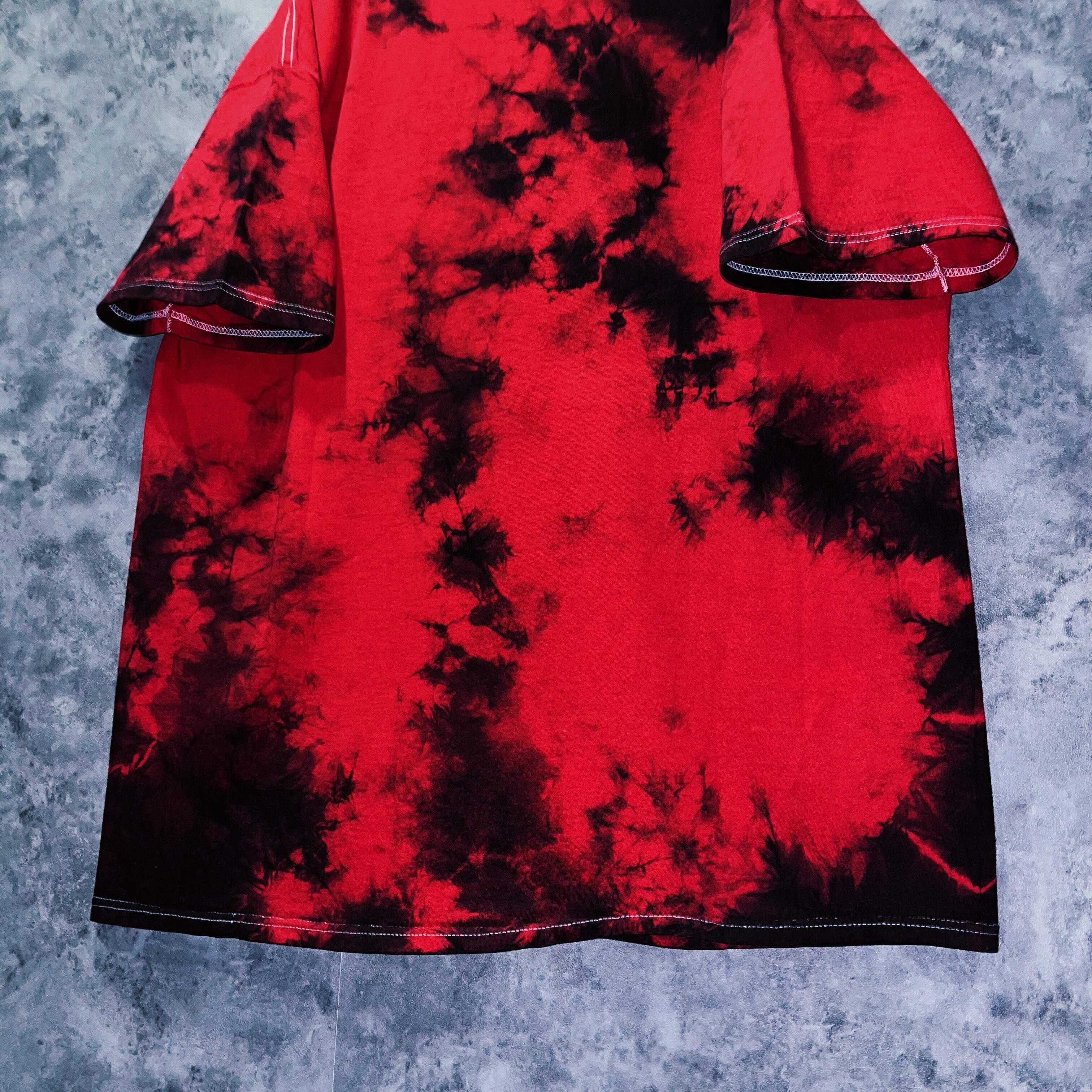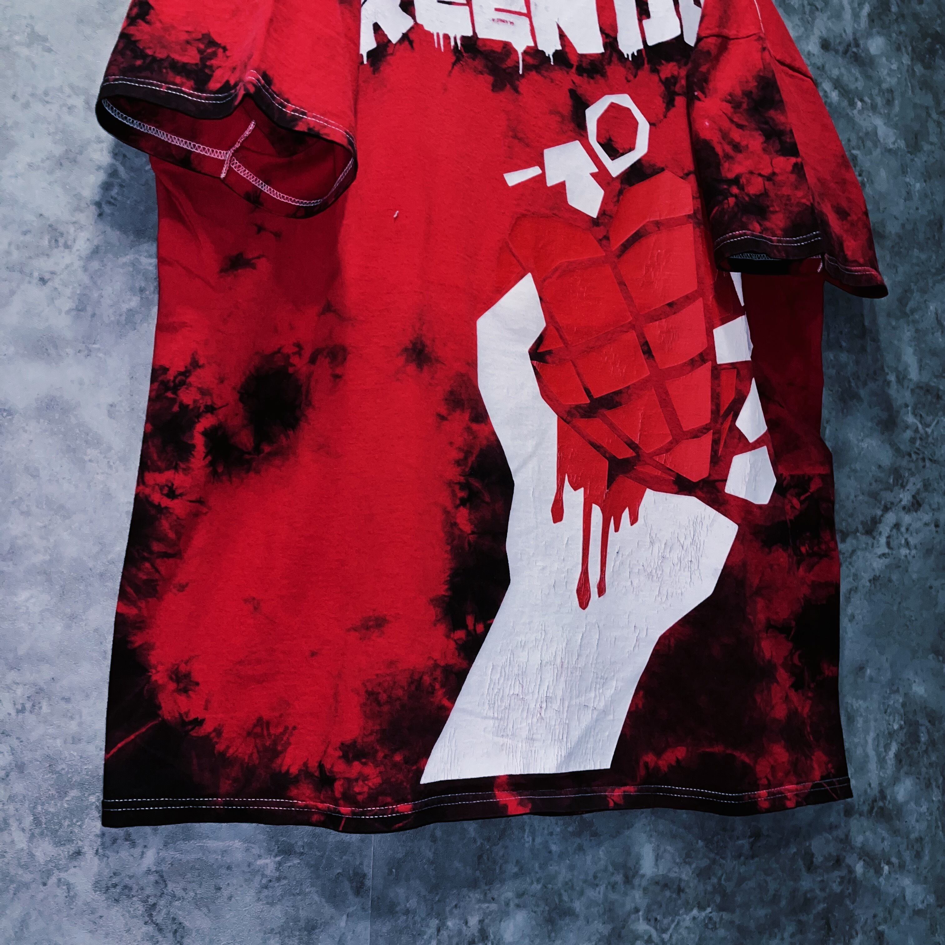 赤と黒のタイダイデザインからパンクバンドらしい刺々しさを感じ、ジャケットであるハート型の手榴弾を握ったプリントは一目で「American Idiot」と気づくインパクト。