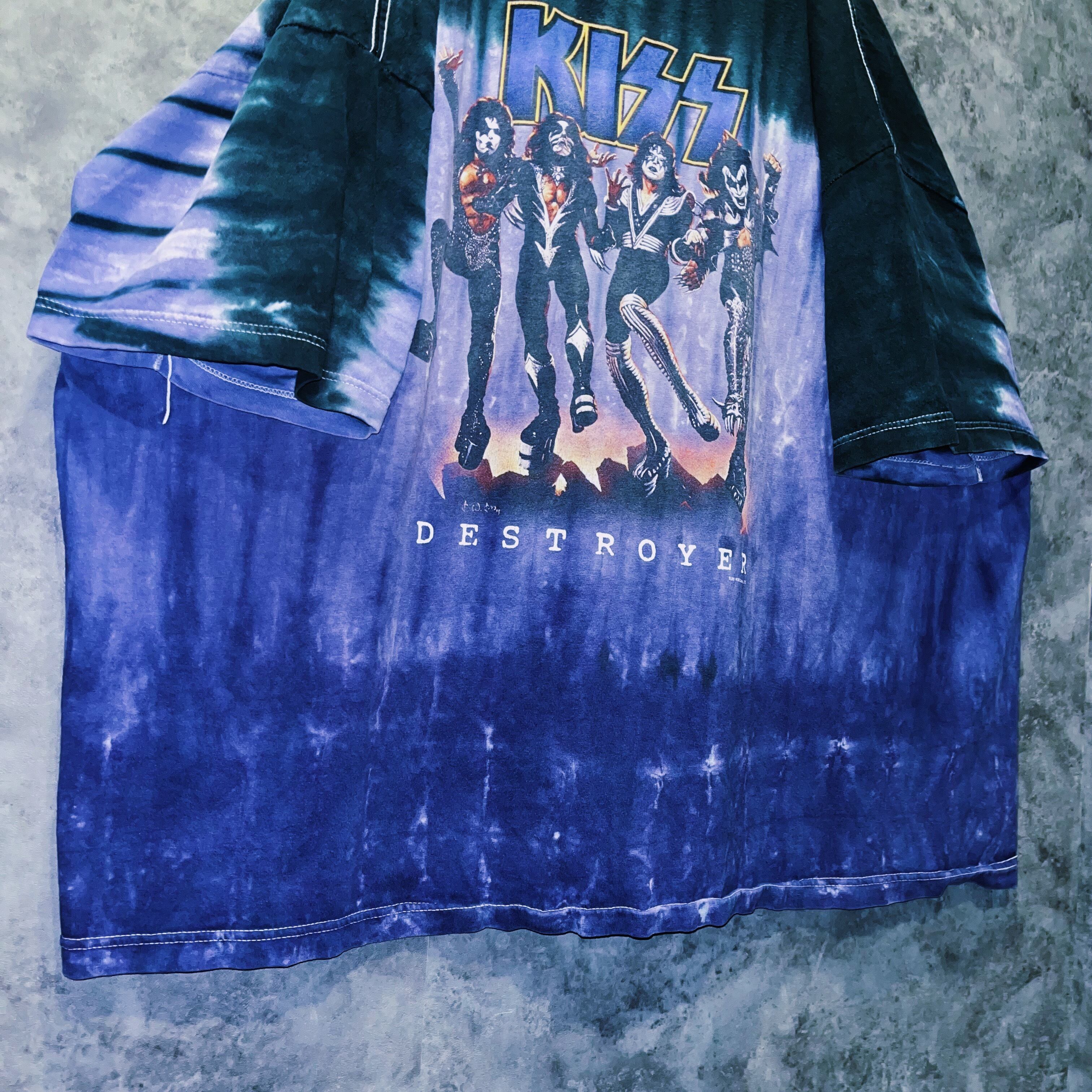ヴィンテージ“KISS”Liquid Blue“タイダイデザインバンドTシャツ