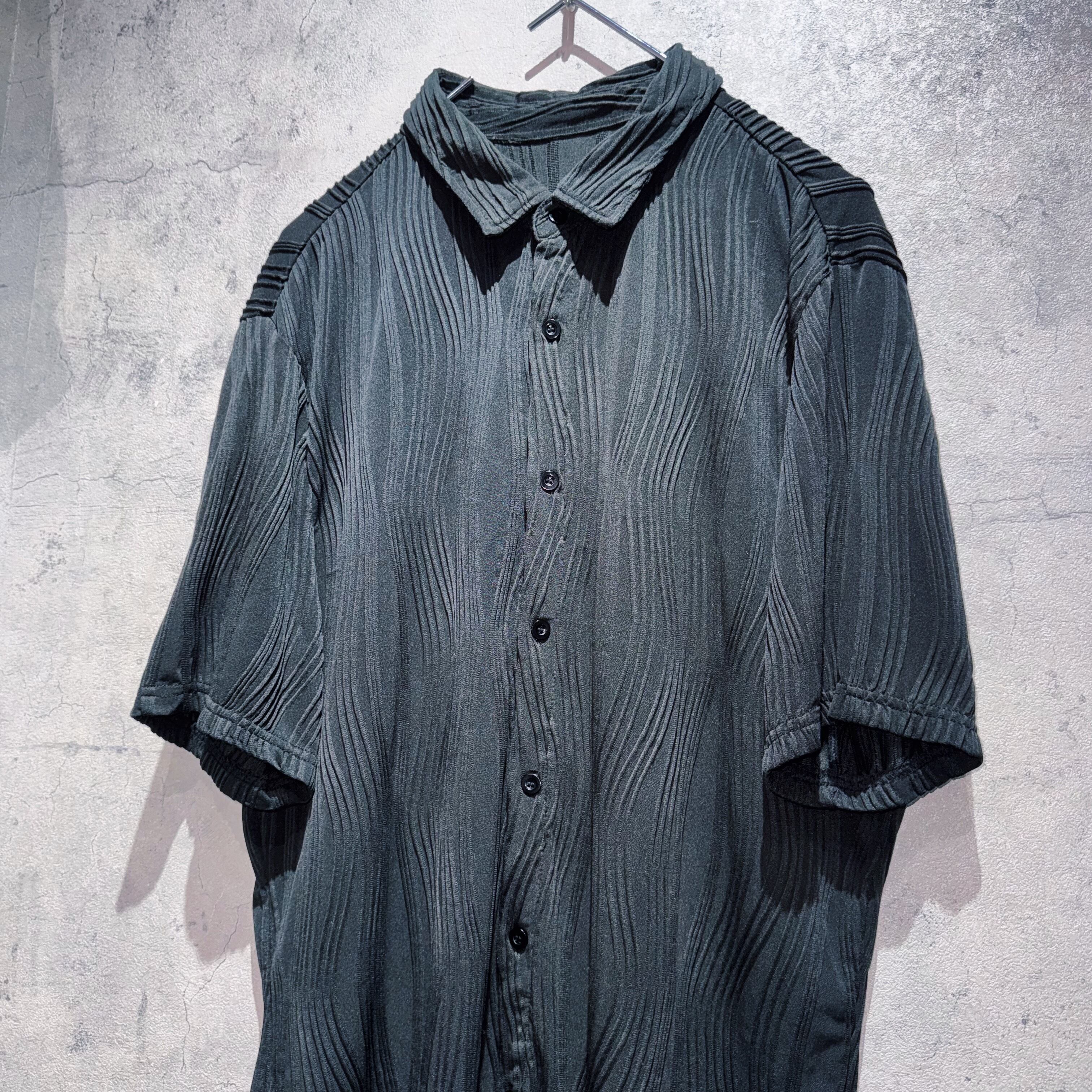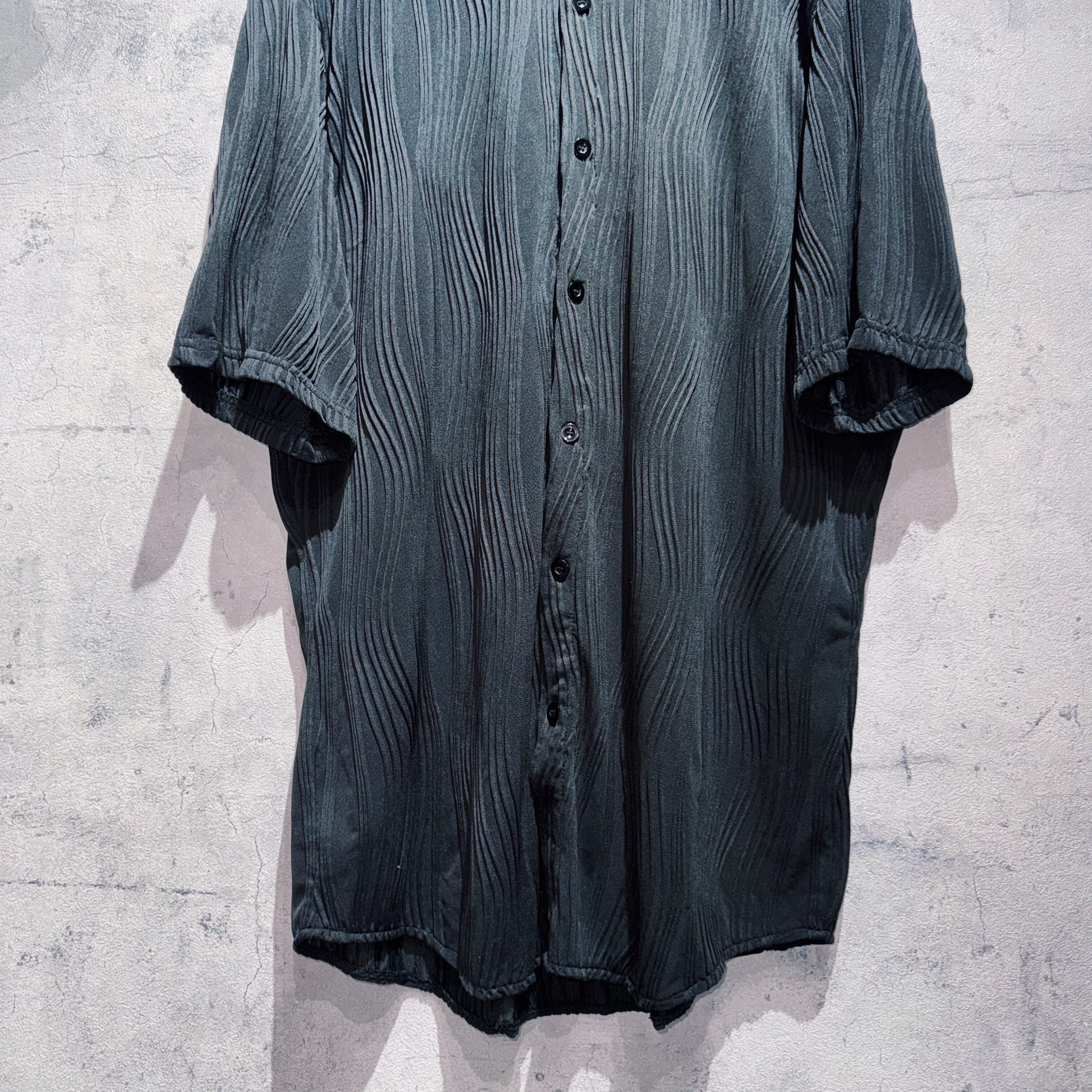 vintage matt black color pleats design short sleeve shirt