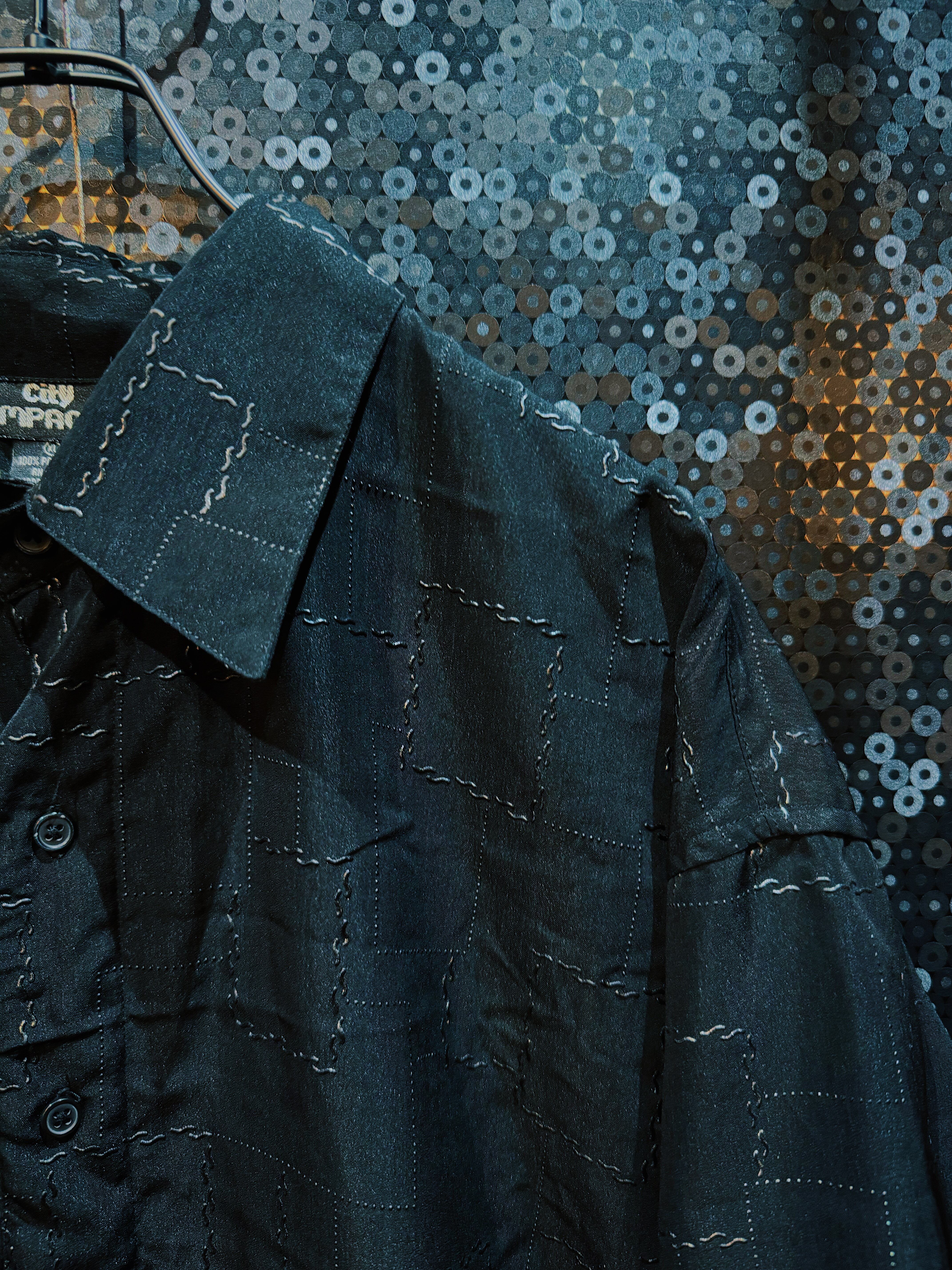 ブランドは”City IMPACT”、素材はポリエステル100%。テロっとした光沢があって、見た目以上に軽やかで着心地も◎。さりげない個性を主張できる、隠れた名品系。シャツ一枚で雰囲気出したいときにドンピシャ。