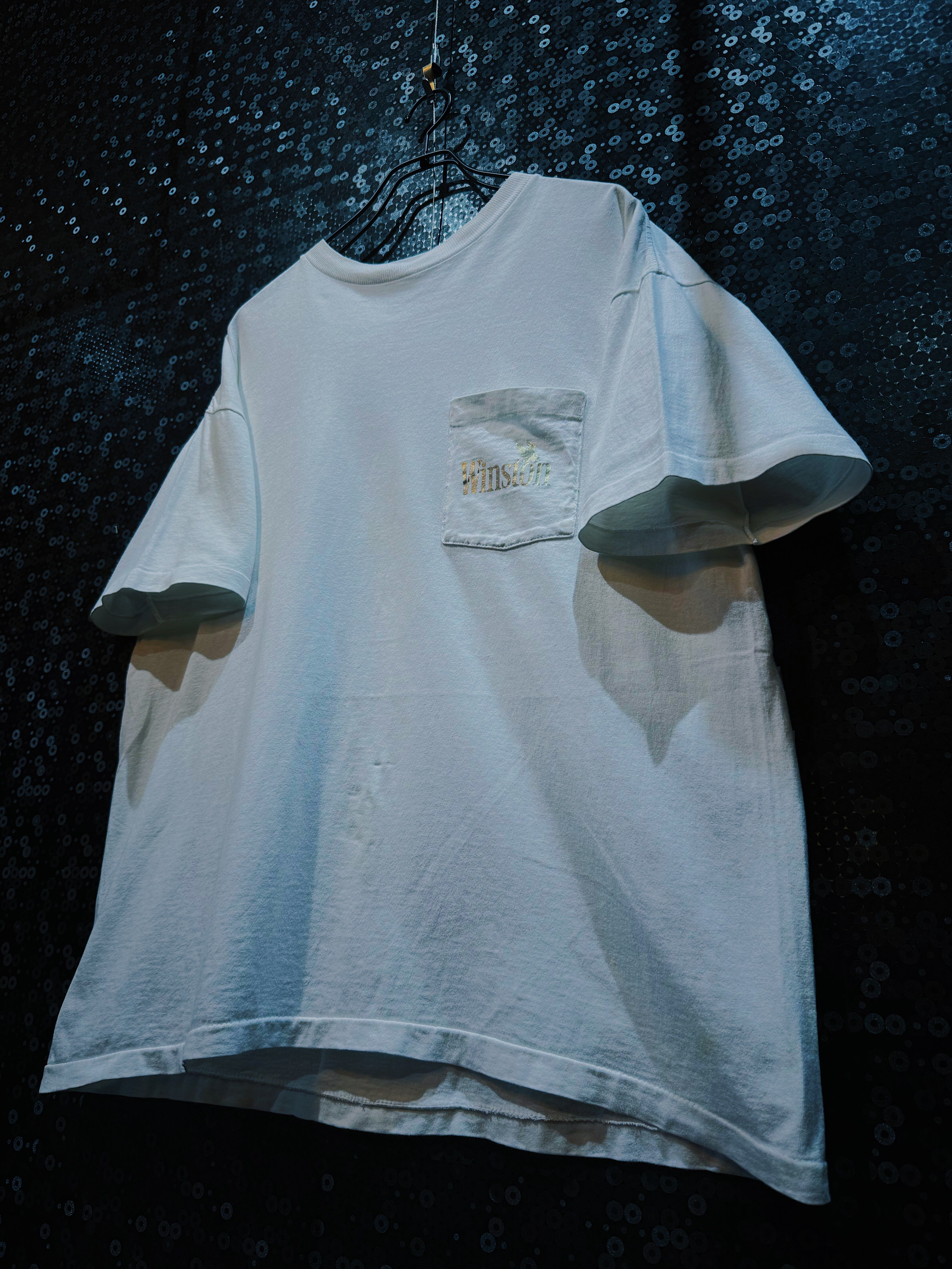 タバコブランド「Winston」のロゴを胸ポケットにさりげなく刺繍した、ミニマルだけど味のある一枚…かと思いきや、背面にドカンと飛び出すのは、超精密なイーグルのモノクロプリントを携えた逸品。