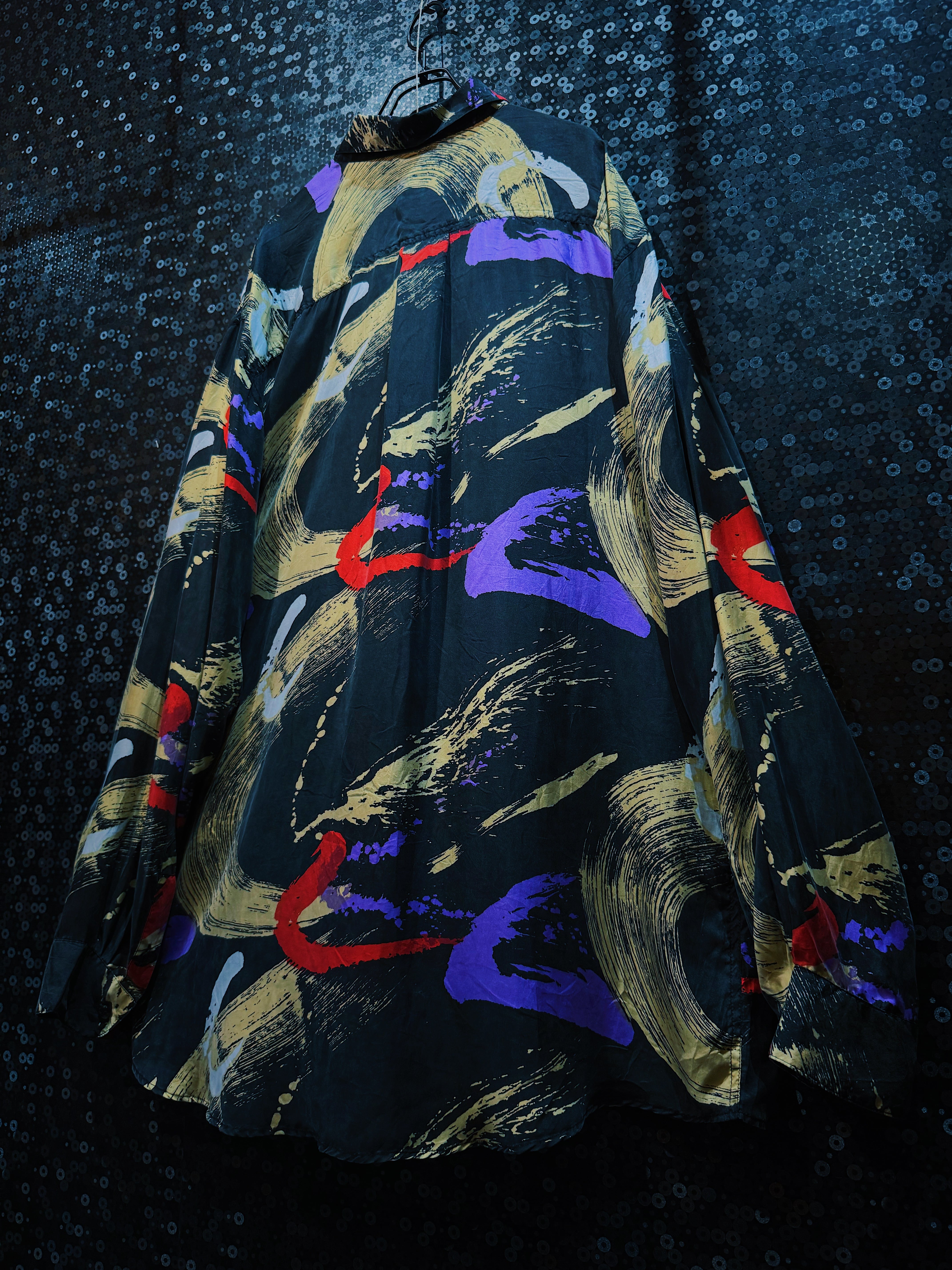 【ÆIEM】"Dead stock"90's Art graphic pattern design silk shirt