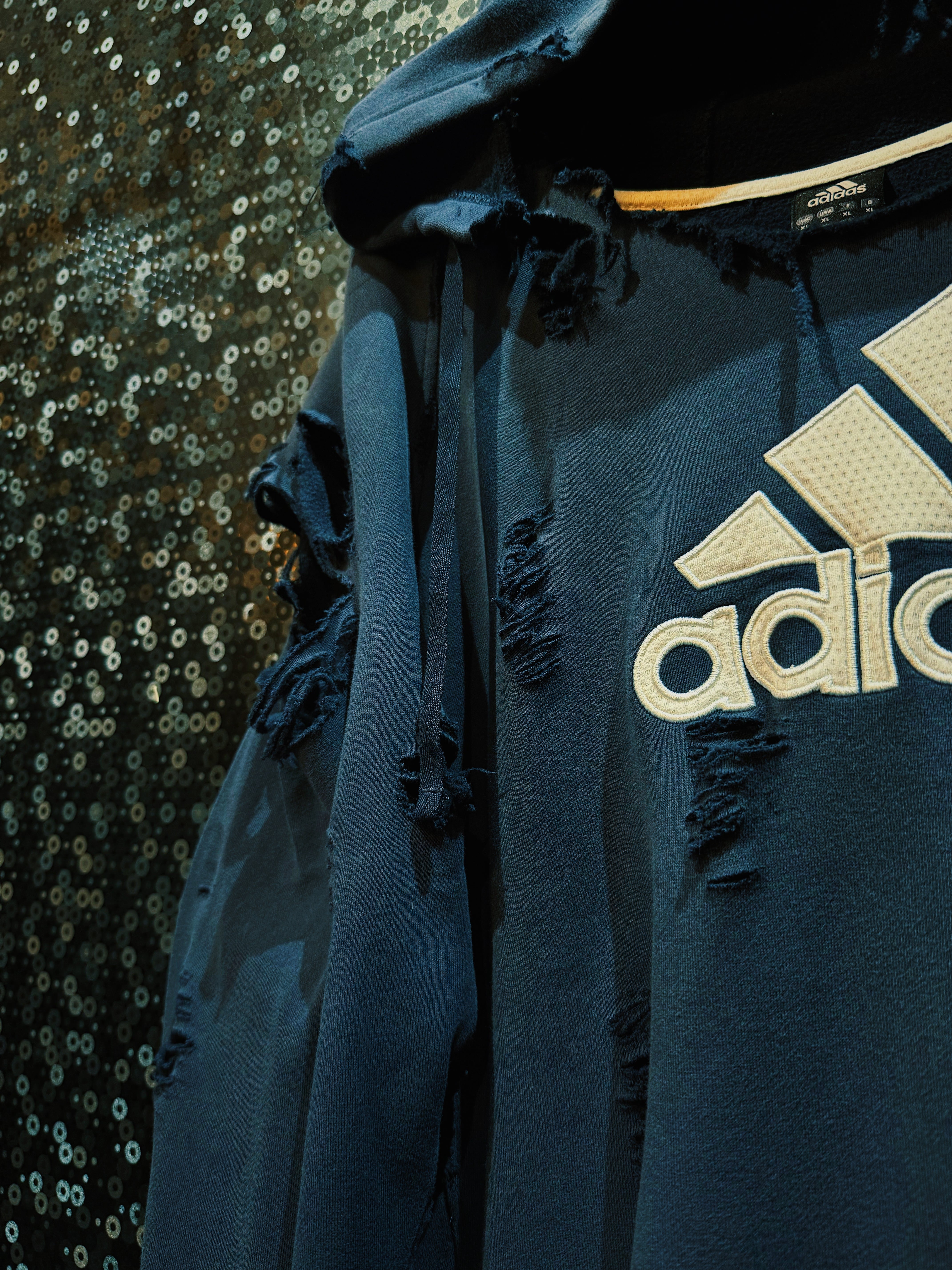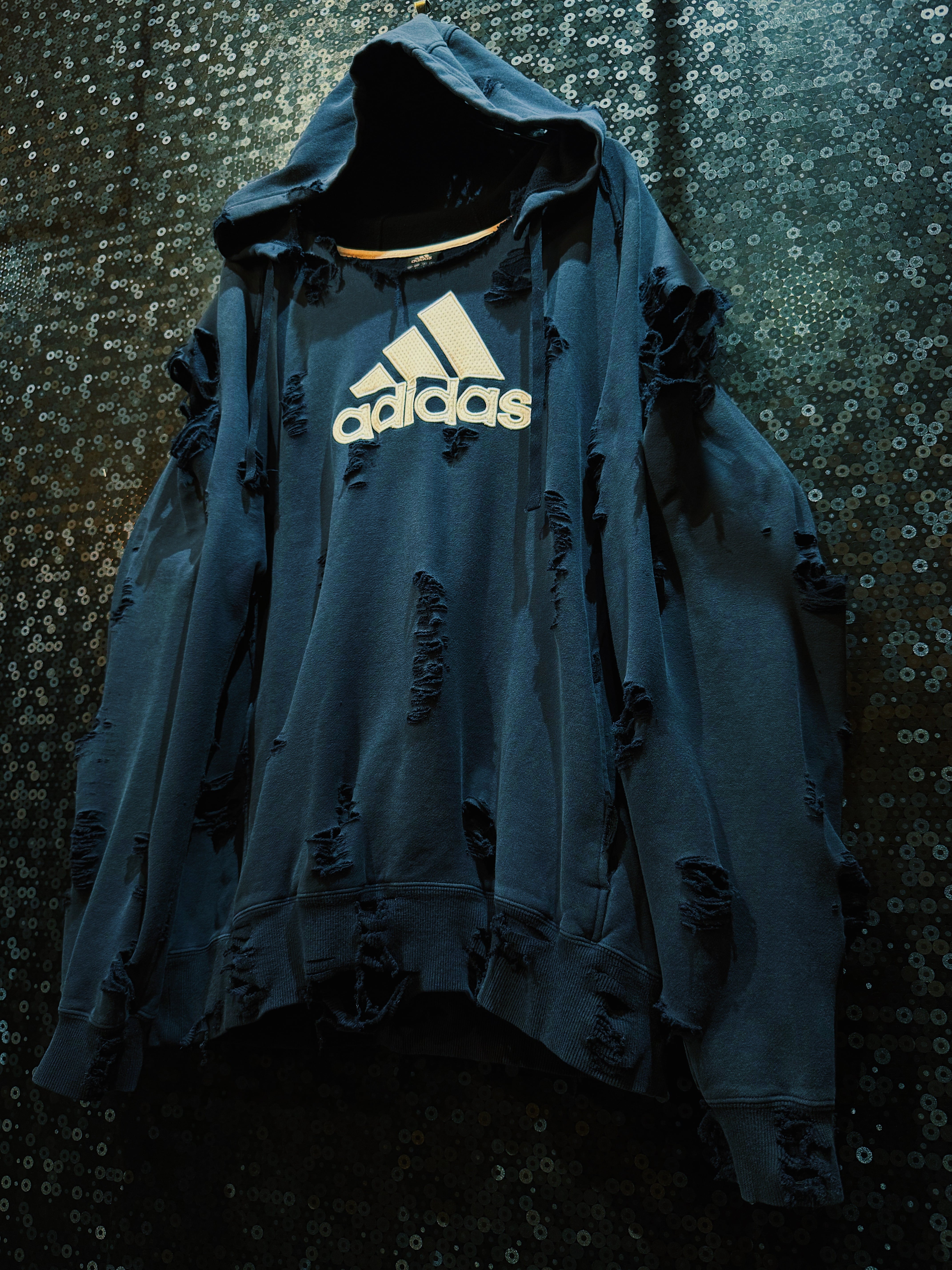 【ÆIEM】original"boro"remake adidas performance logo navy hoodie