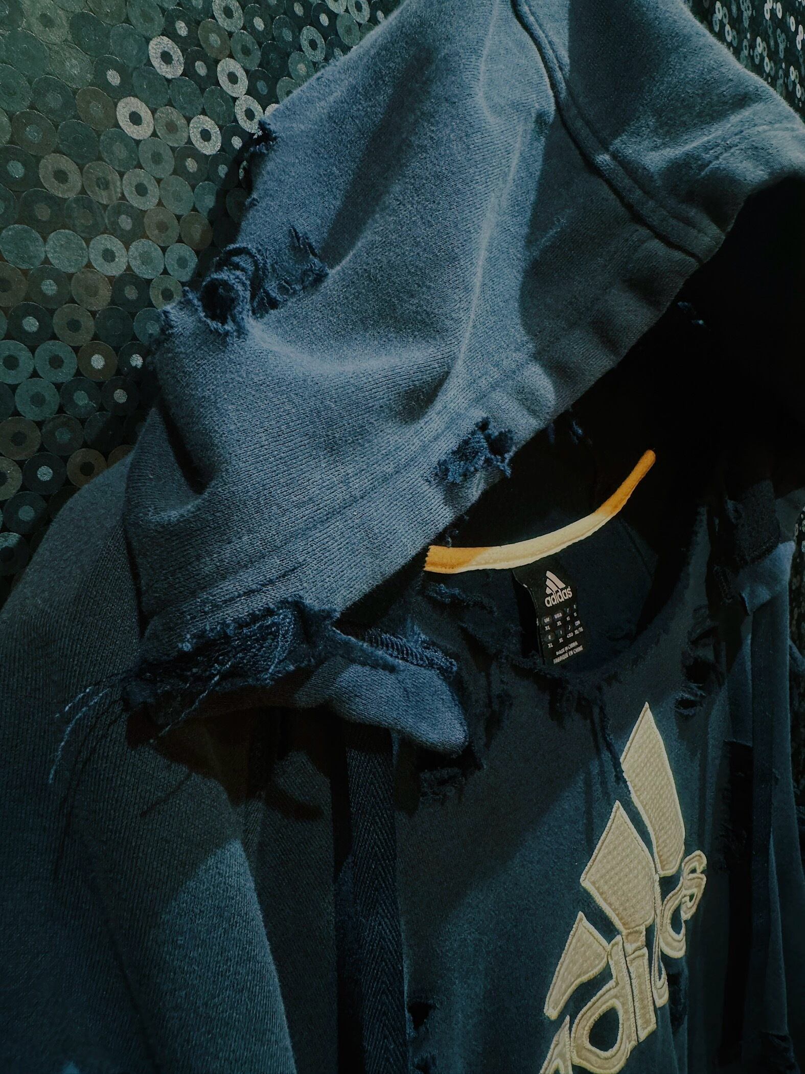 むしろその破壊が、この王道フーディーを唯一無二に仕上げてる。量産の綺麗なスポーツウェアとは正反対の美学。