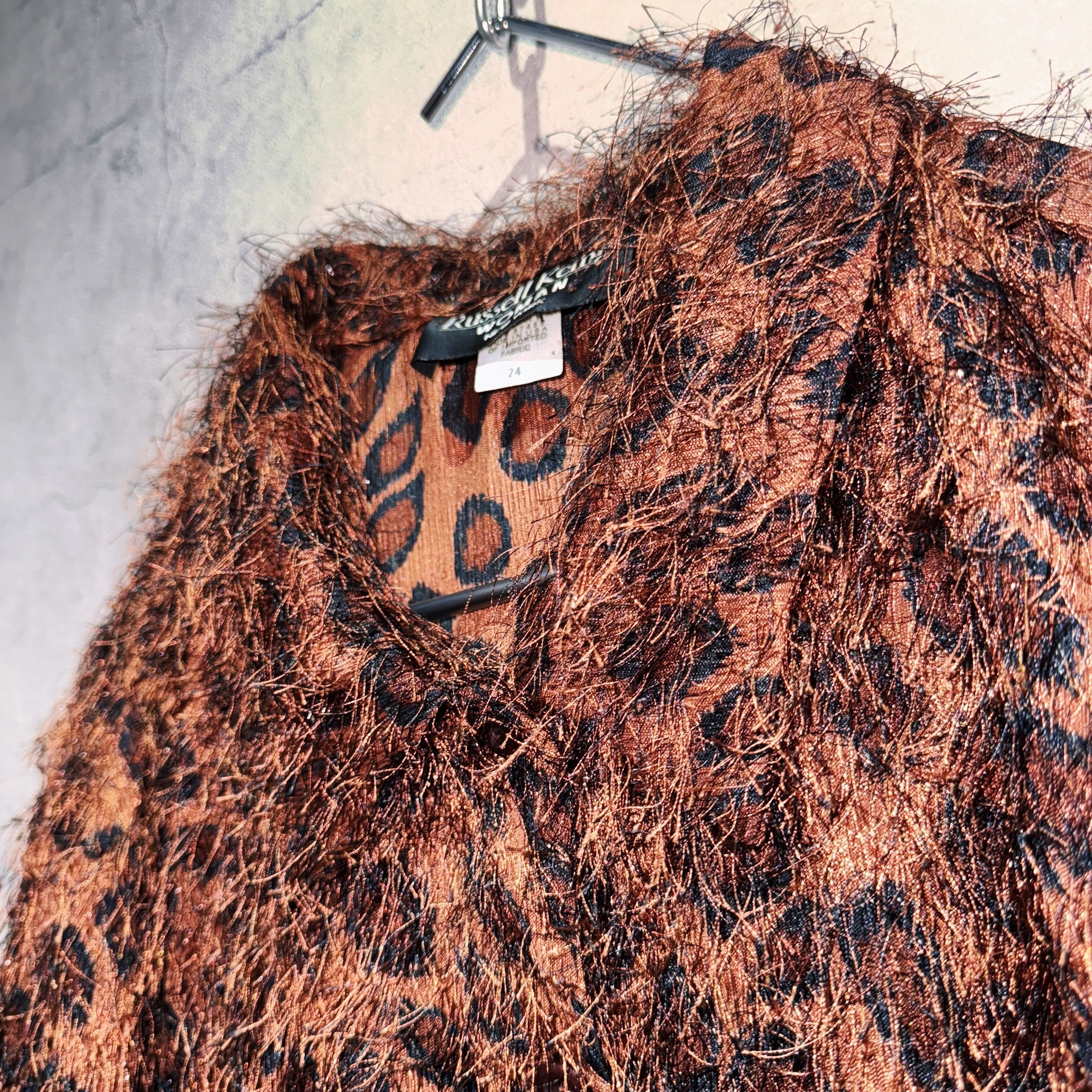 ヴィンテージレオパードパターンデザインシアーシャギーシャツ