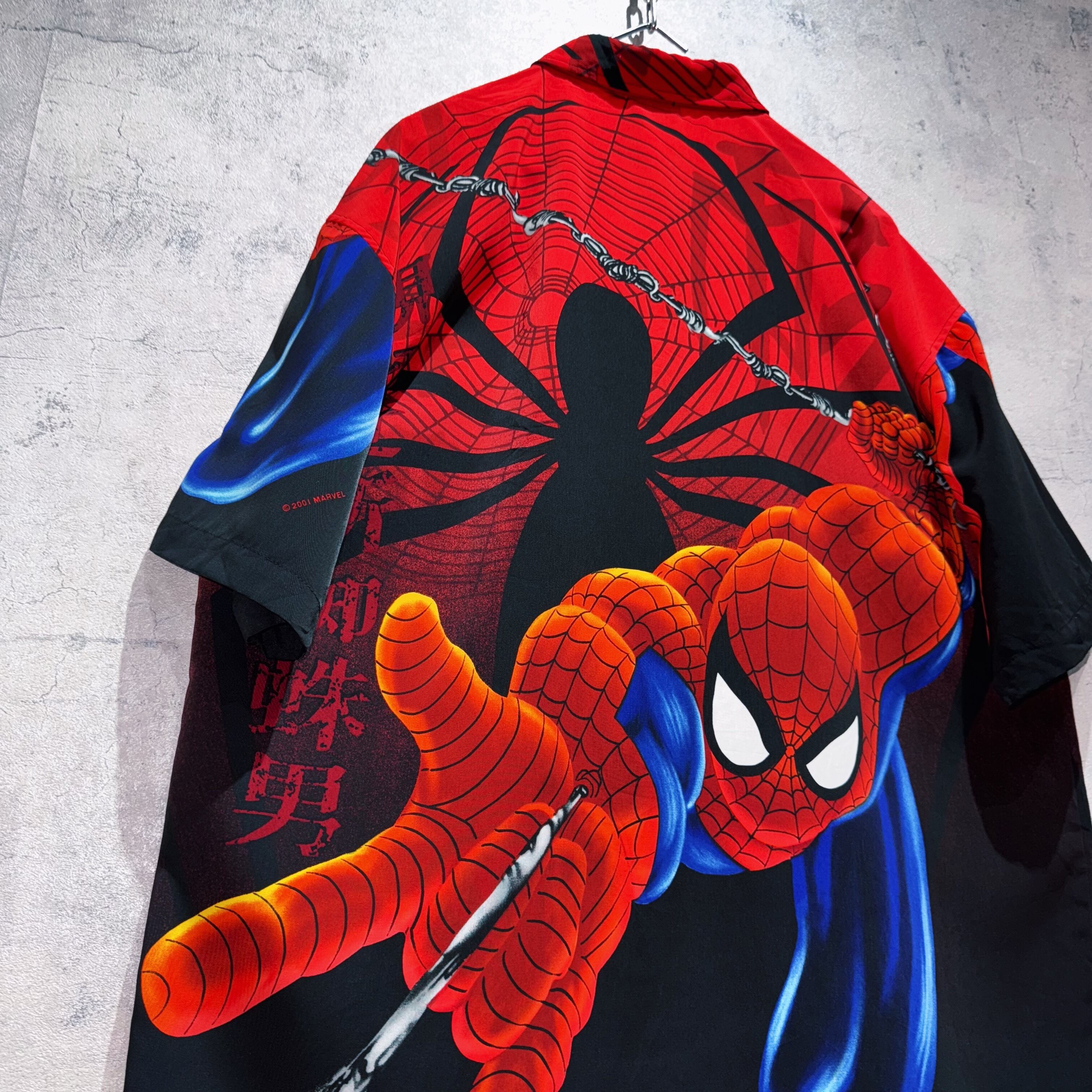 マーベルの中でも一番人気、と言っても過言ではないと思いますスパイダーマンの総柄デザインシャツ。こちら2001年に販売されていたもので、Tシャツでは味わえない総柄のダイナックさが魅力的ですね。