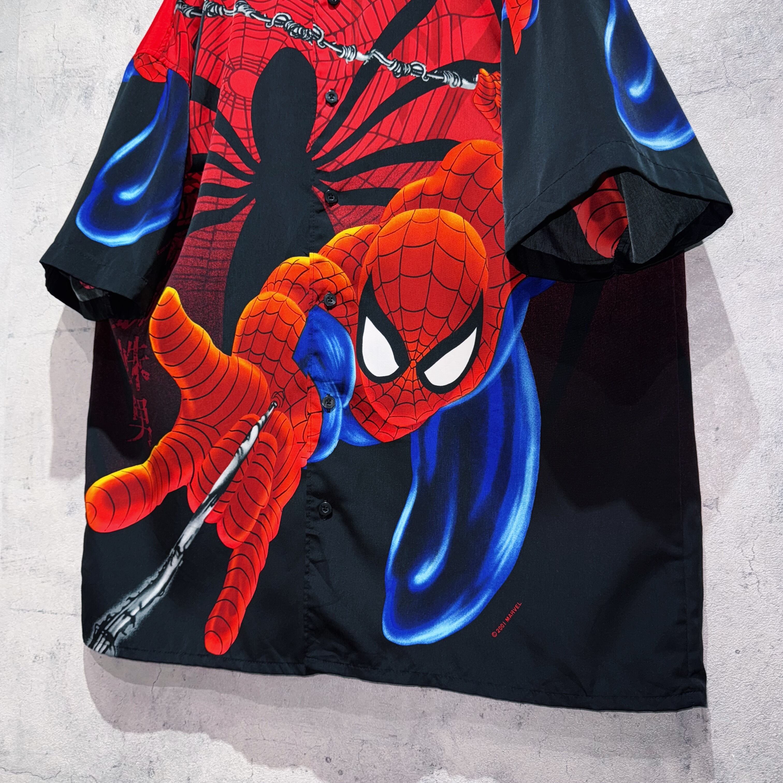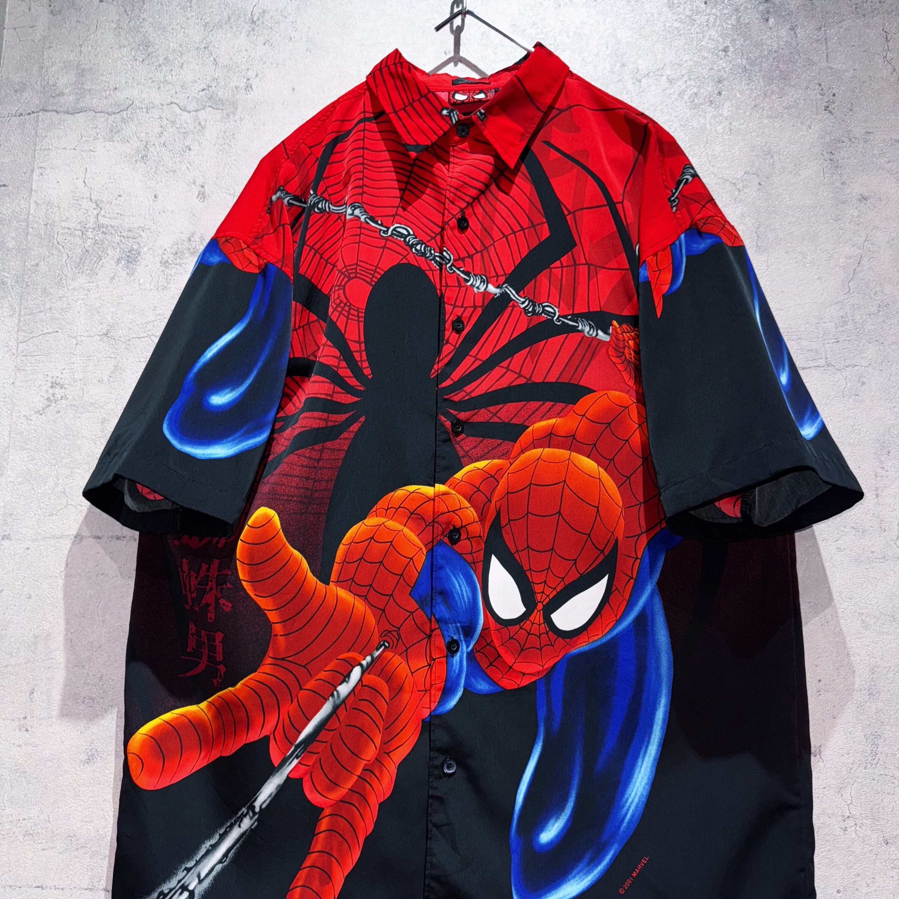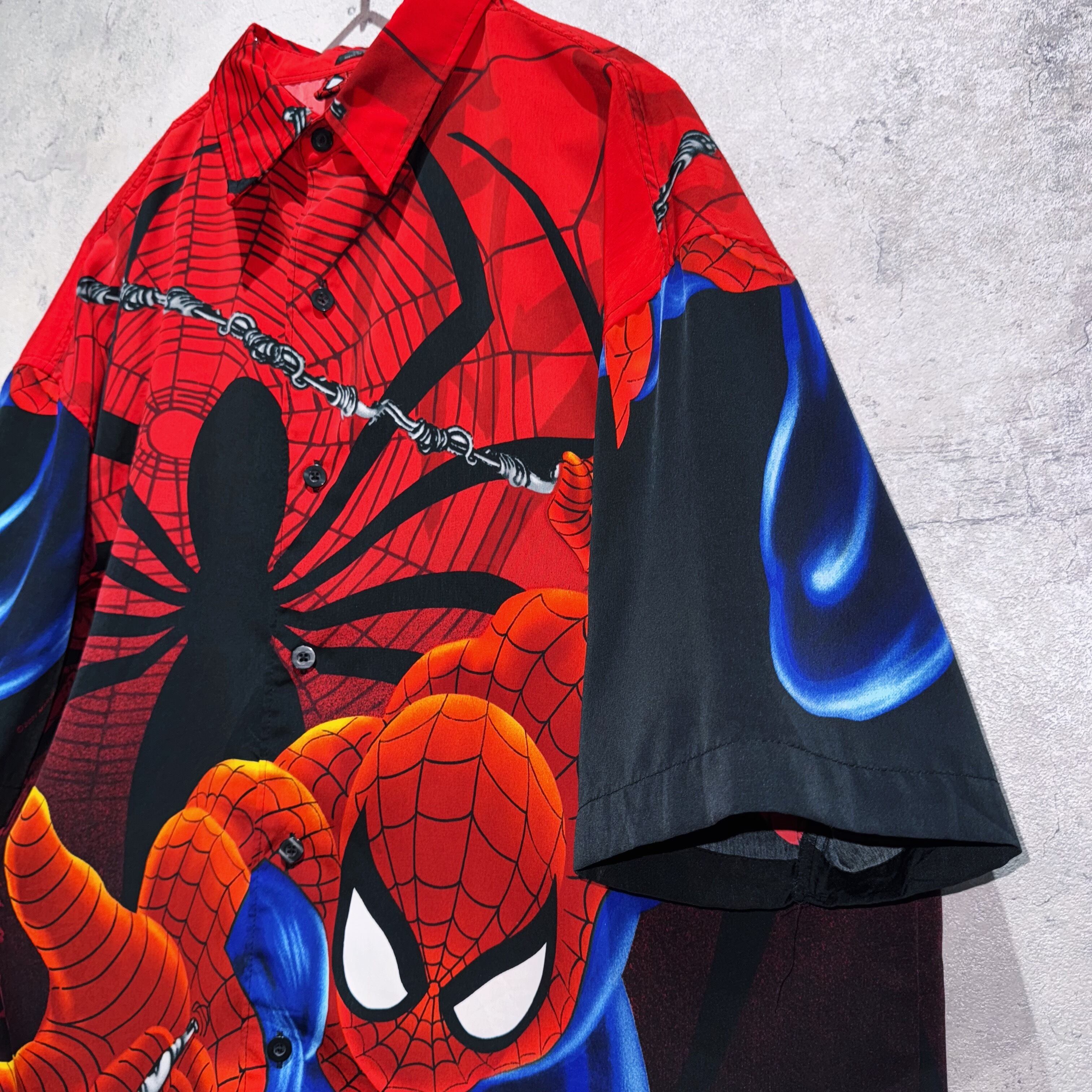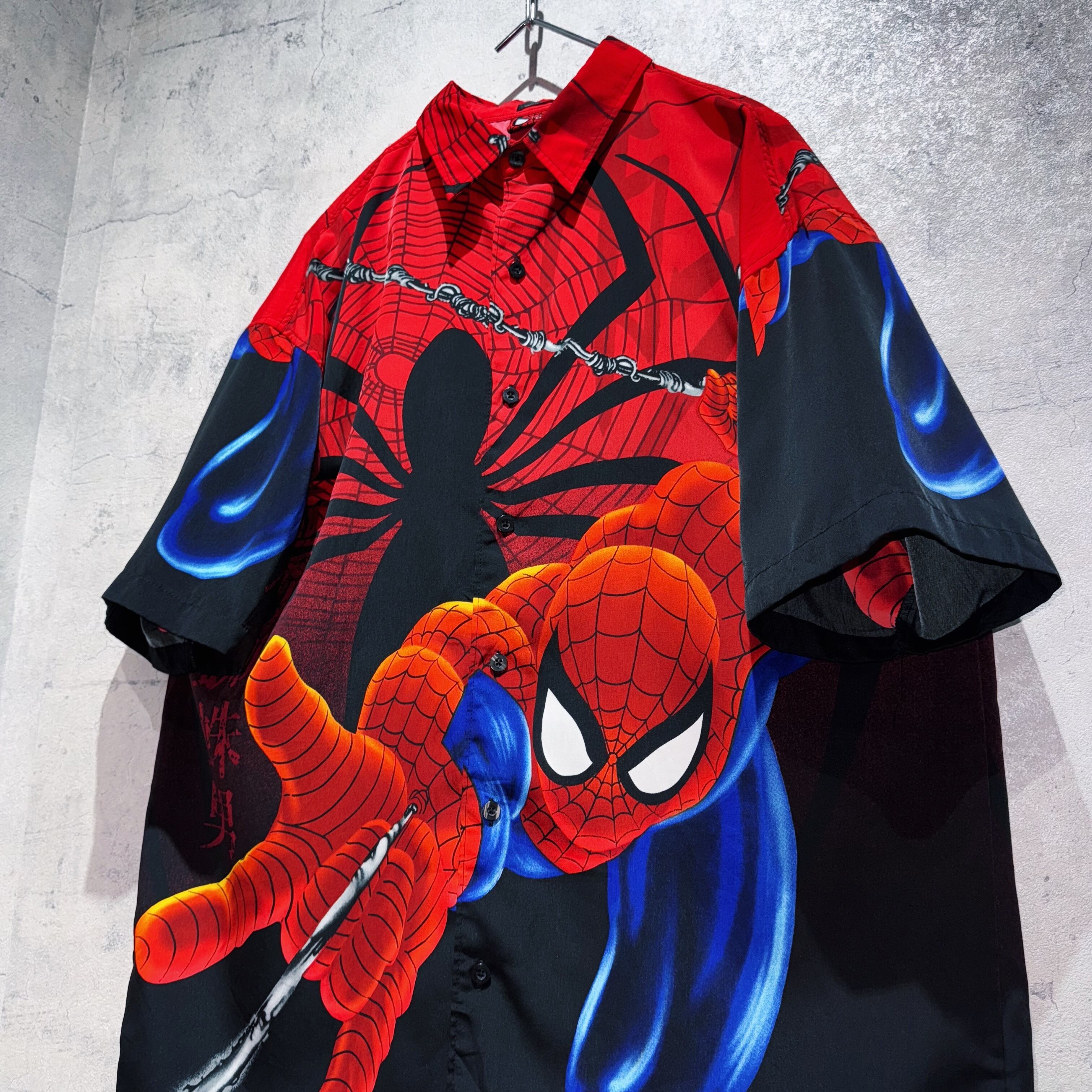 00's"SPIDER MAN"all over pattern design short sleeve shirt