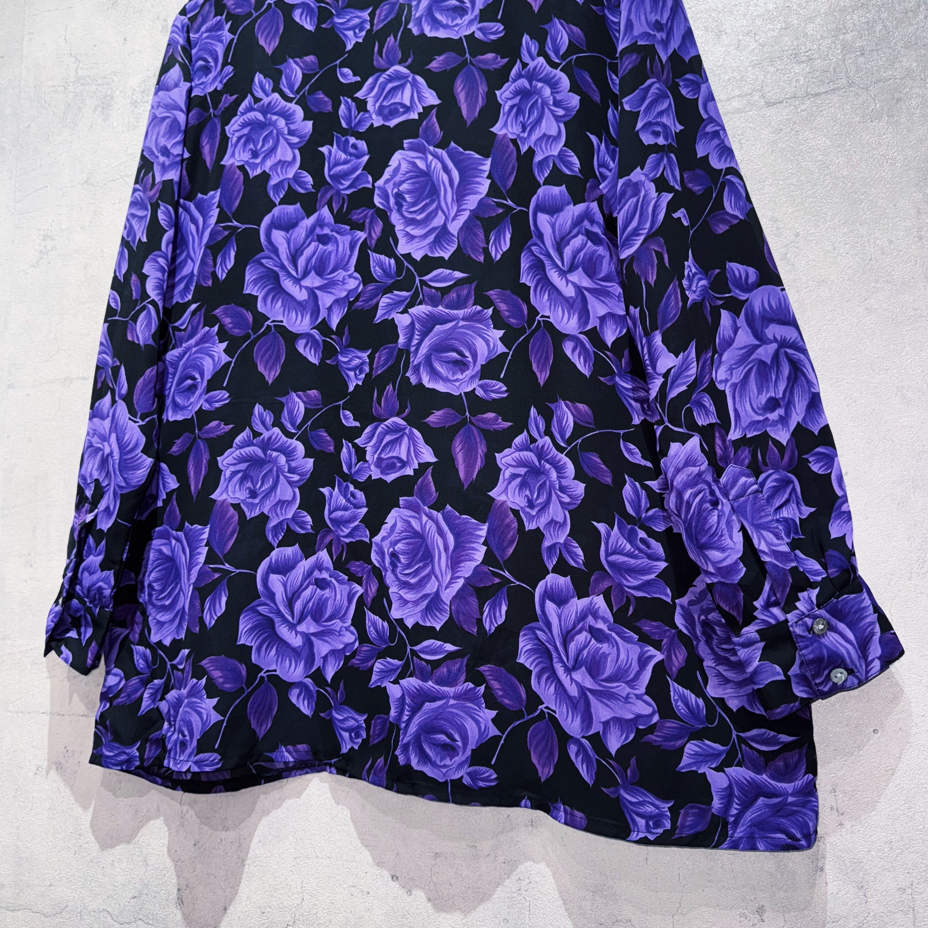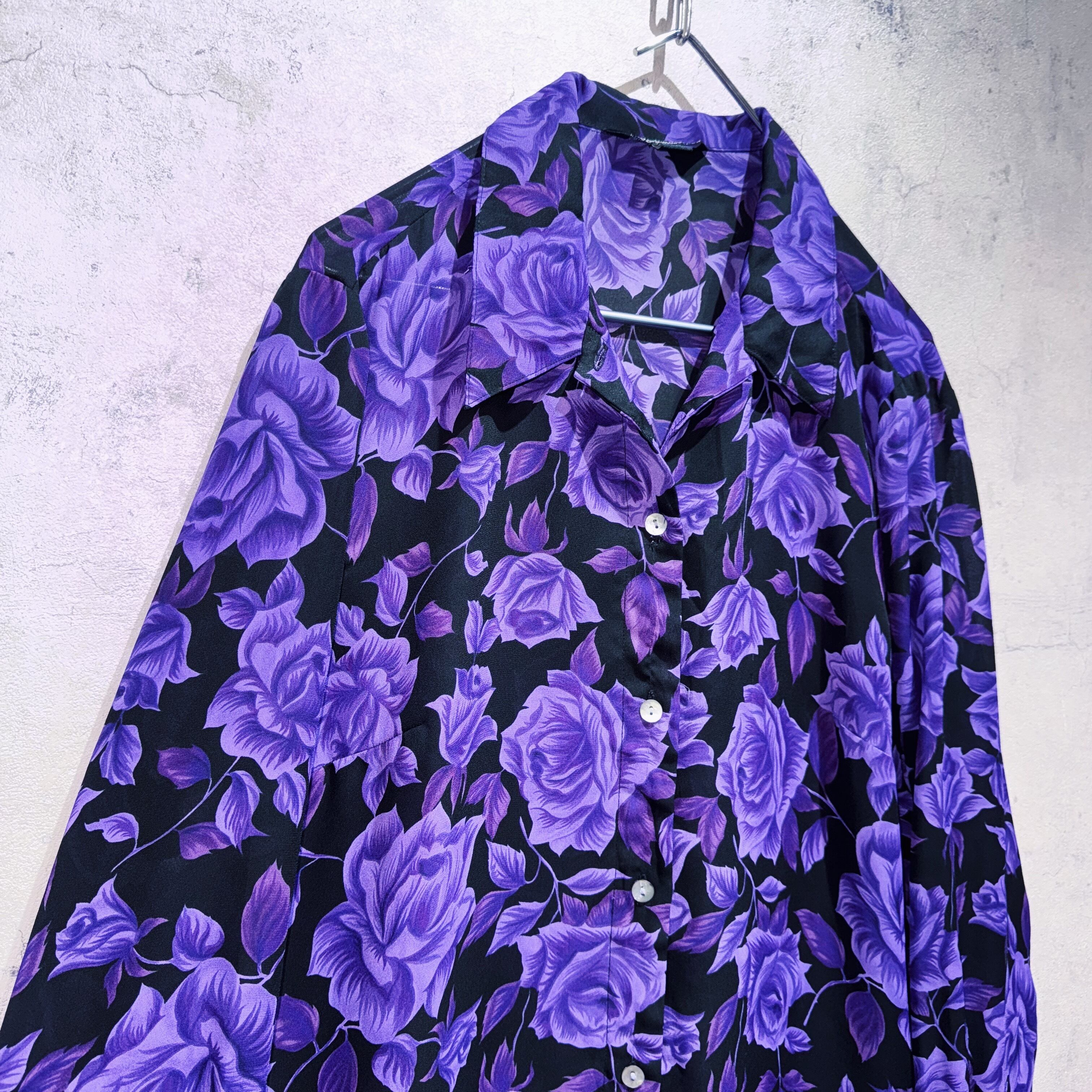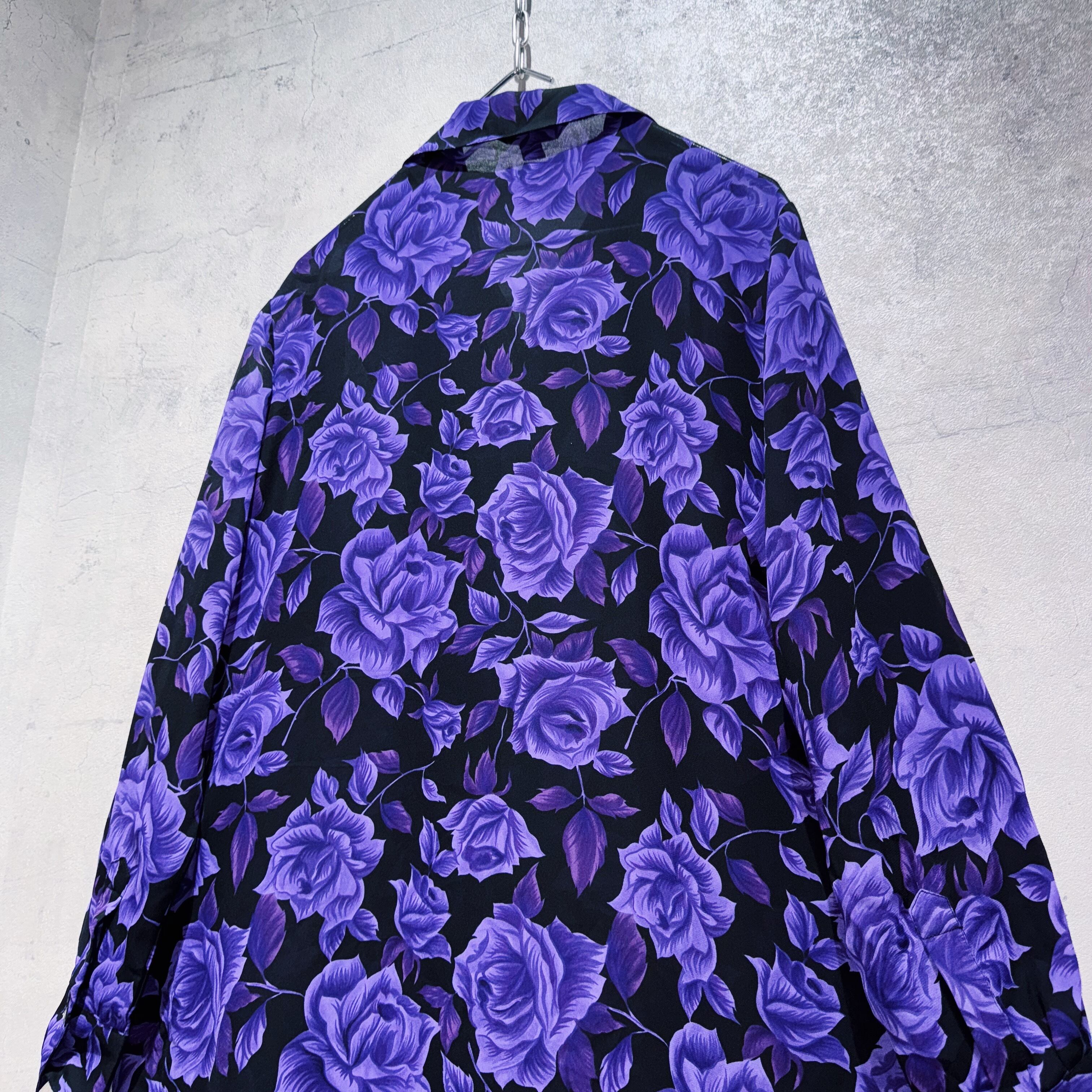 ヴィンテージビューティフルパープルローズパターンデザインシアーシャツ