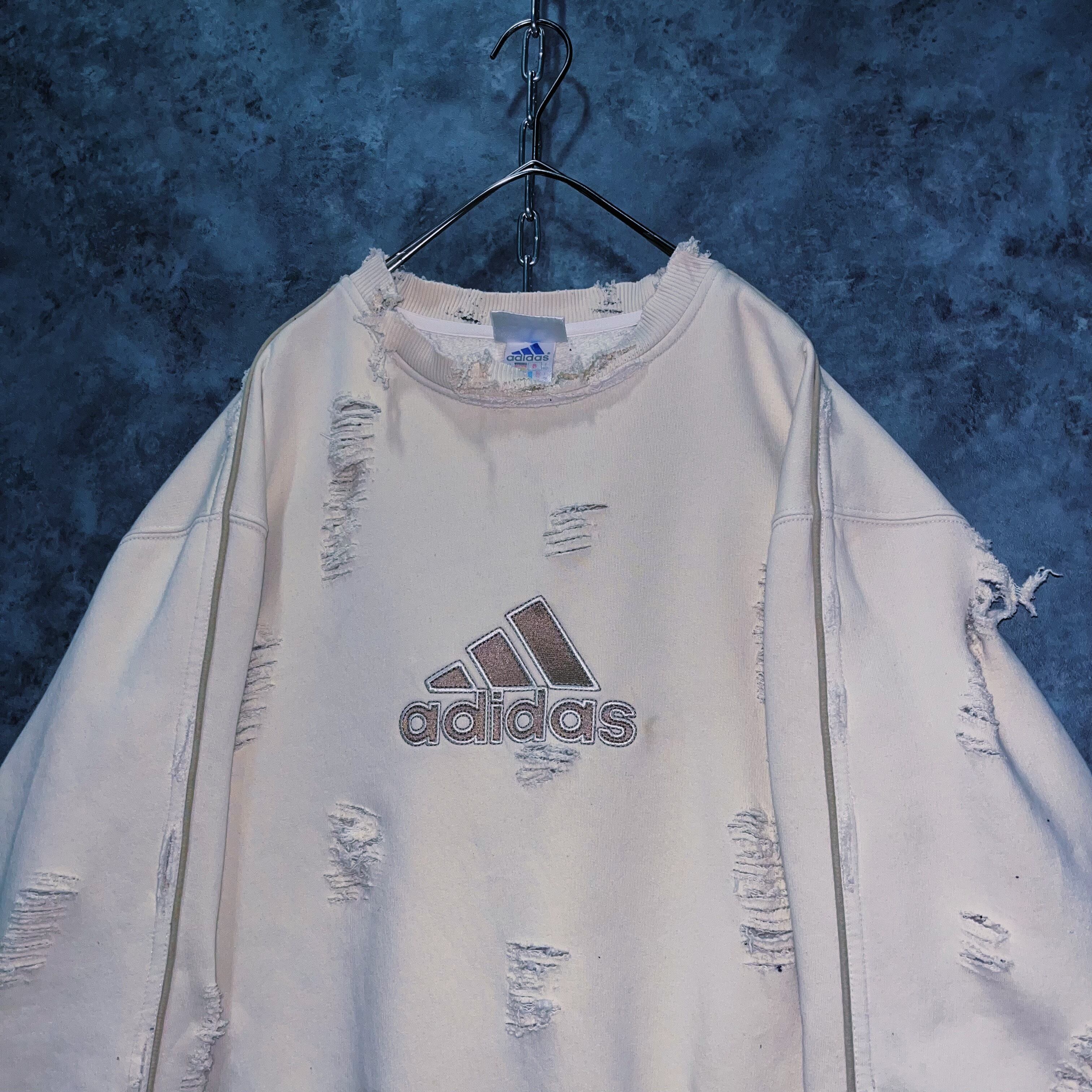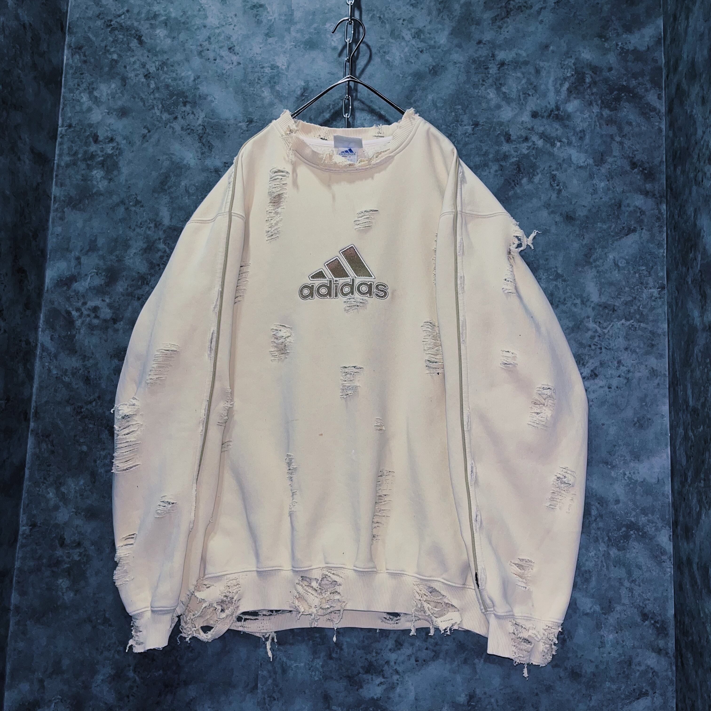 ヴィンテージ“adidas”パフォーマンスロゴデザインボロカスタムスウェットプルオーバー