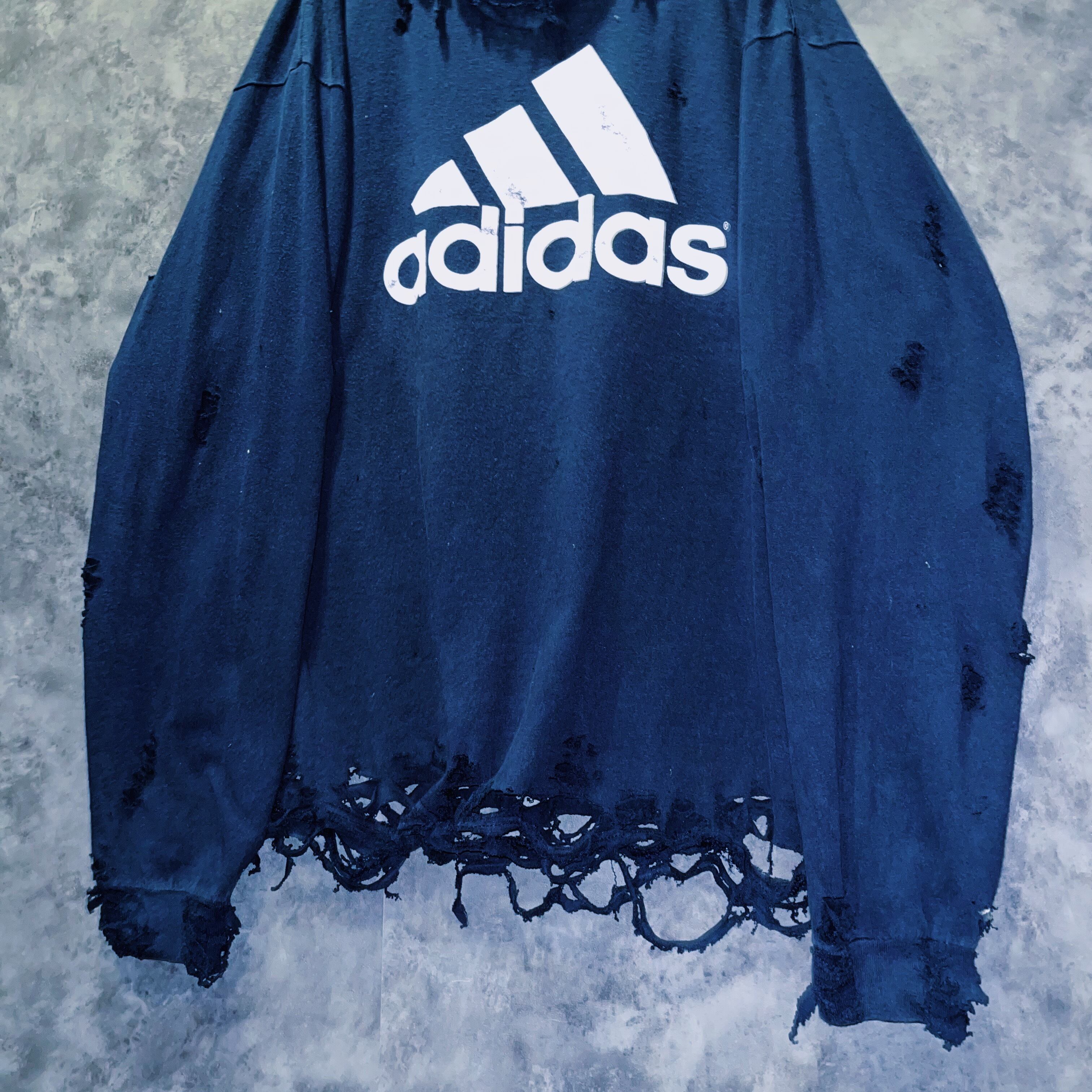 ヴィンテージ“adidas”パフォーマンスロゴデザインボロカスタムロングスリーブTシャツ