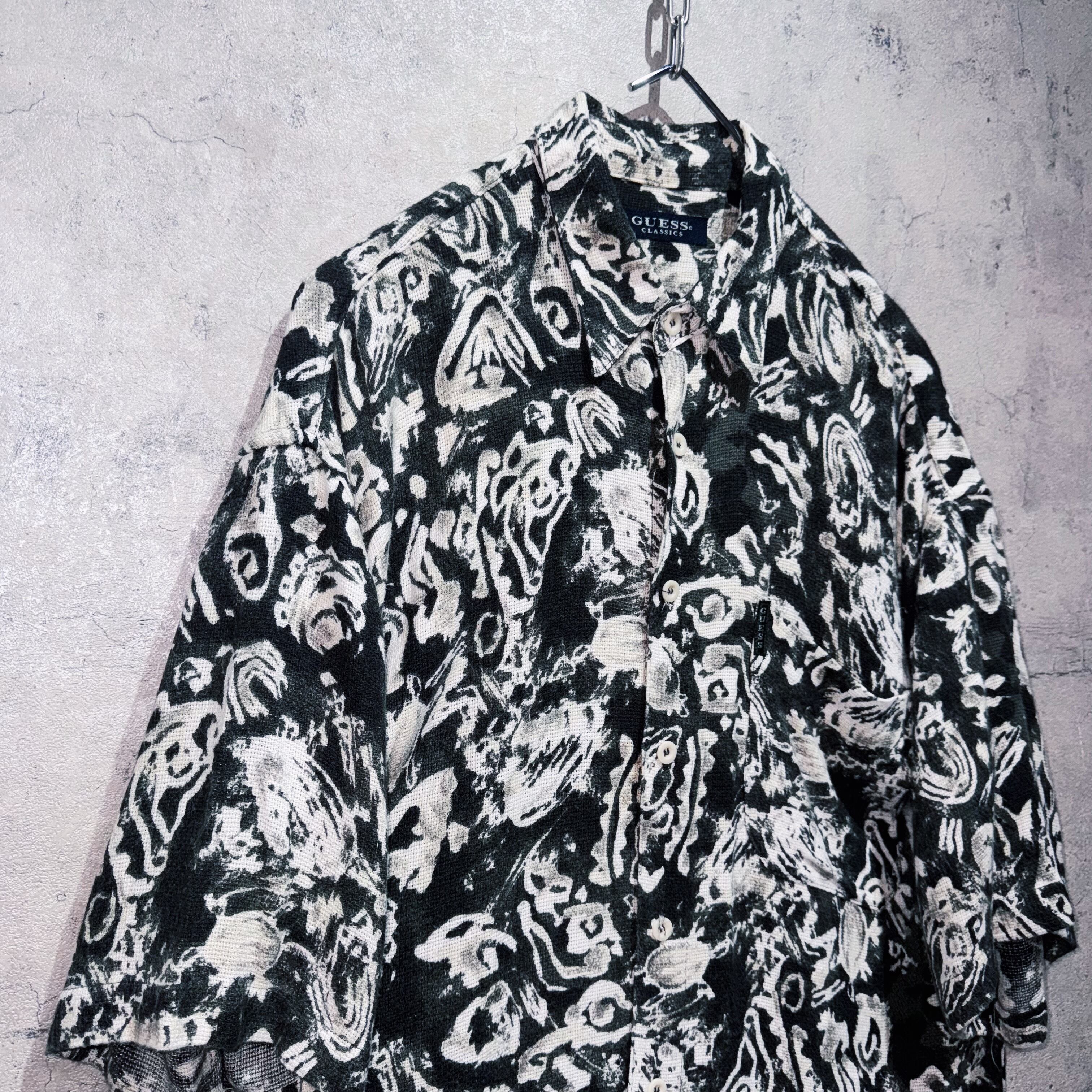 "ゲス"アートグラフィックパターンデザインショートスリーブシャツ