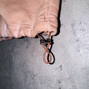 重厚感のあるヘビーオンスのボディにレザーパッチのブランドロゴがあしらわれたダメージフーディー。ネックのところにもブランドロゴが刻まれたスナップボタンがあしらわれています。