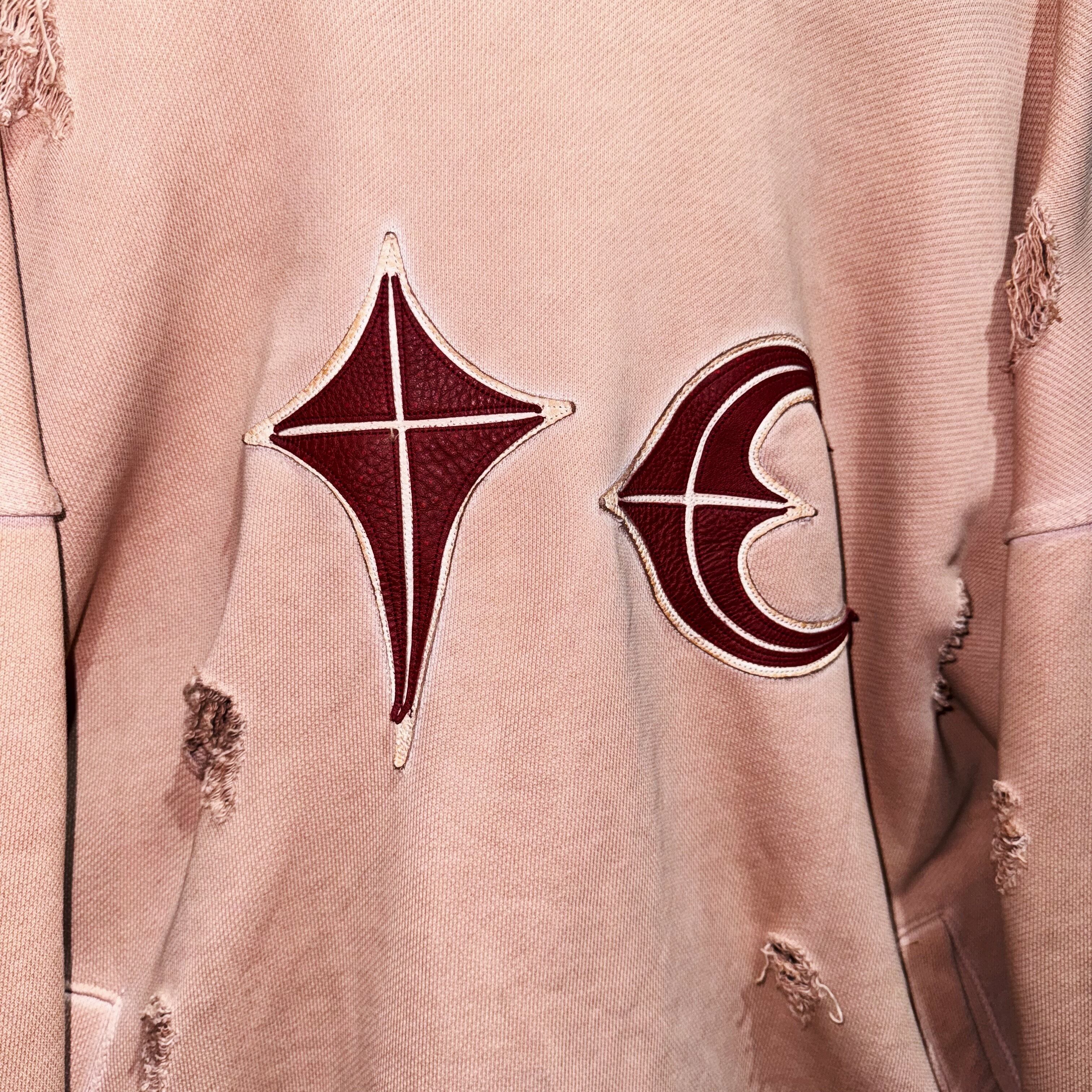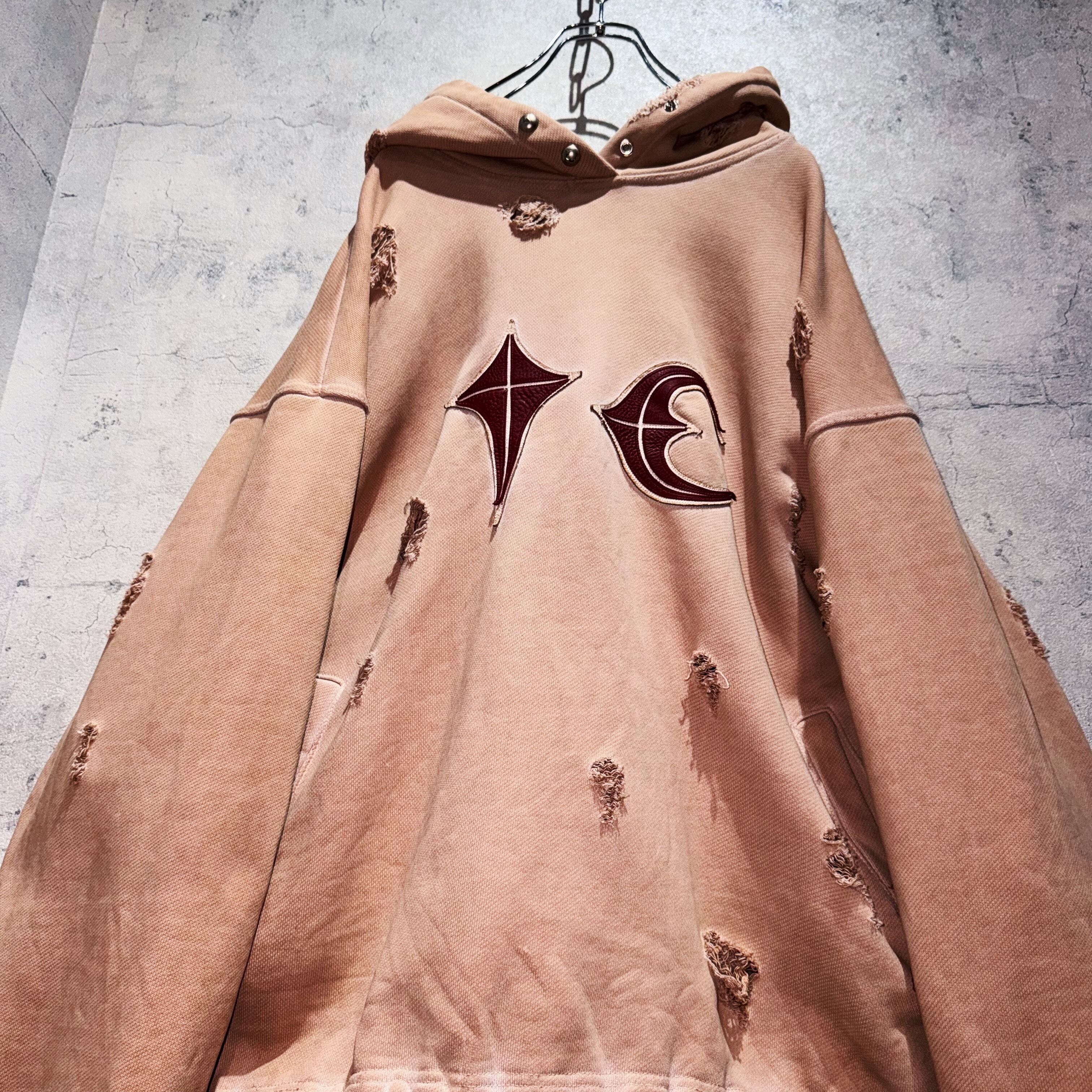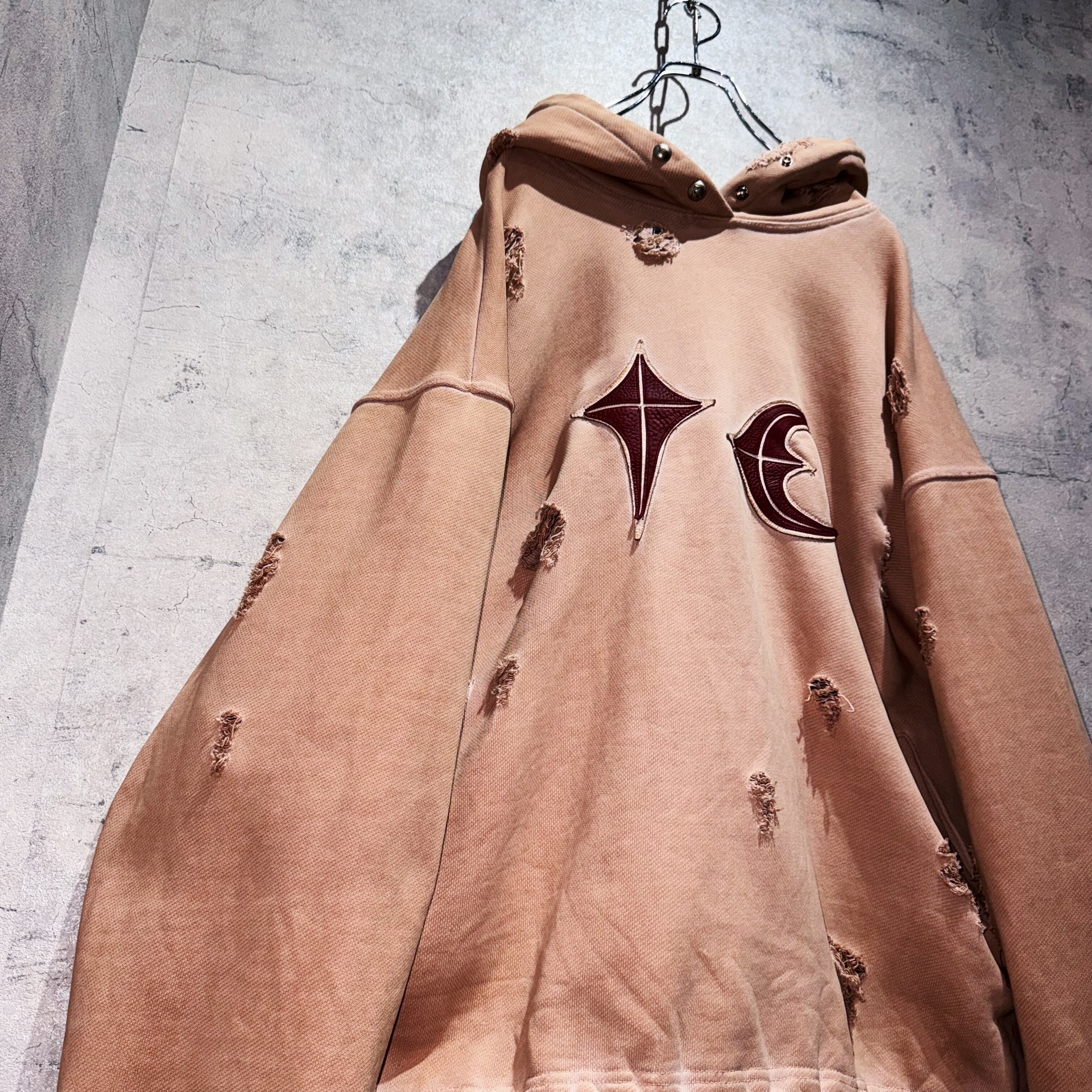 "サグクラブ"レザーブランドロゴデザインダメージフーディー