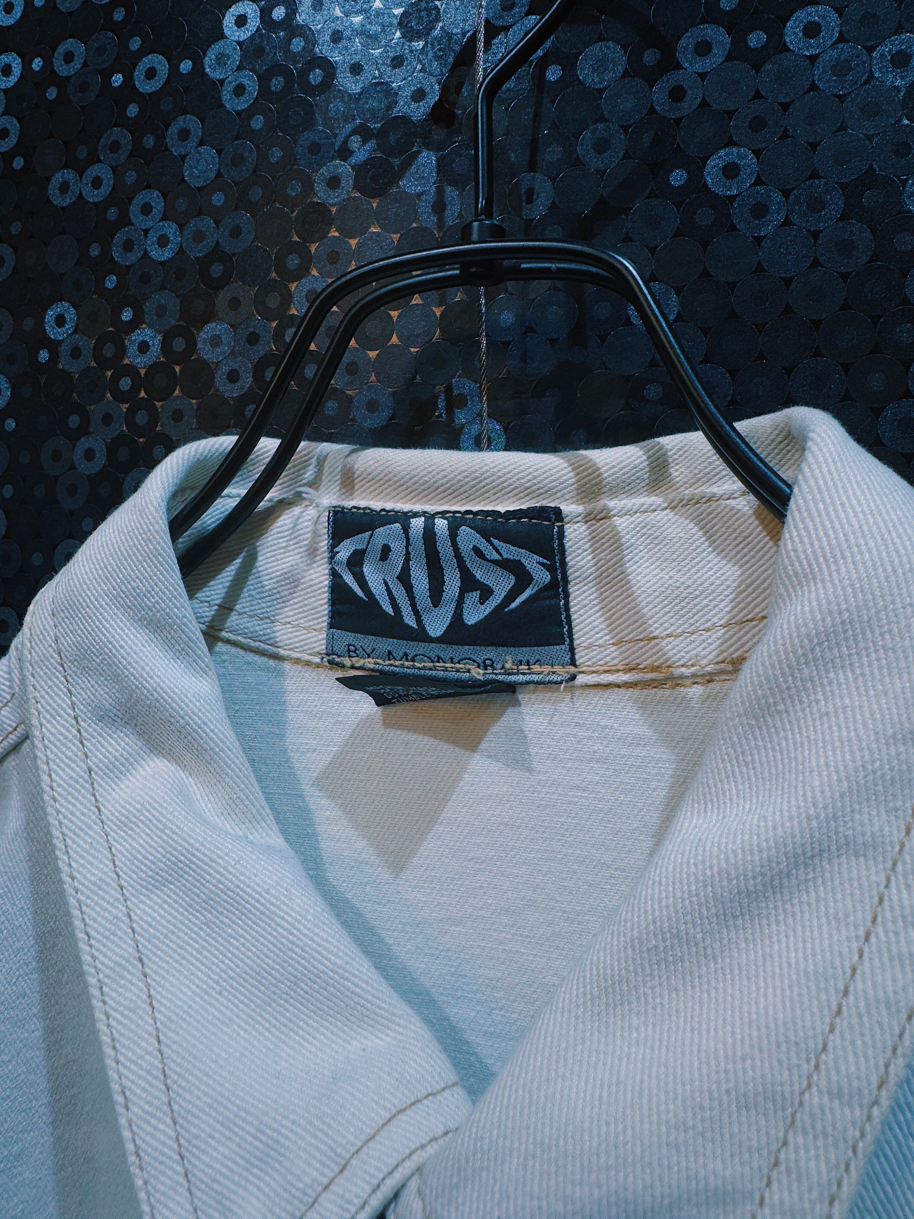 90年代ストリートを色濃く反映した「TRUST U.S.A.」の半袖ホワイトデニムジャケット。しっかりとしたデニム生地を使用し、ワークウェアの要素を取り込みつつも、ビッグシルエットの半袖仕様によってラフで抜け感の仕上がりな逸品。
