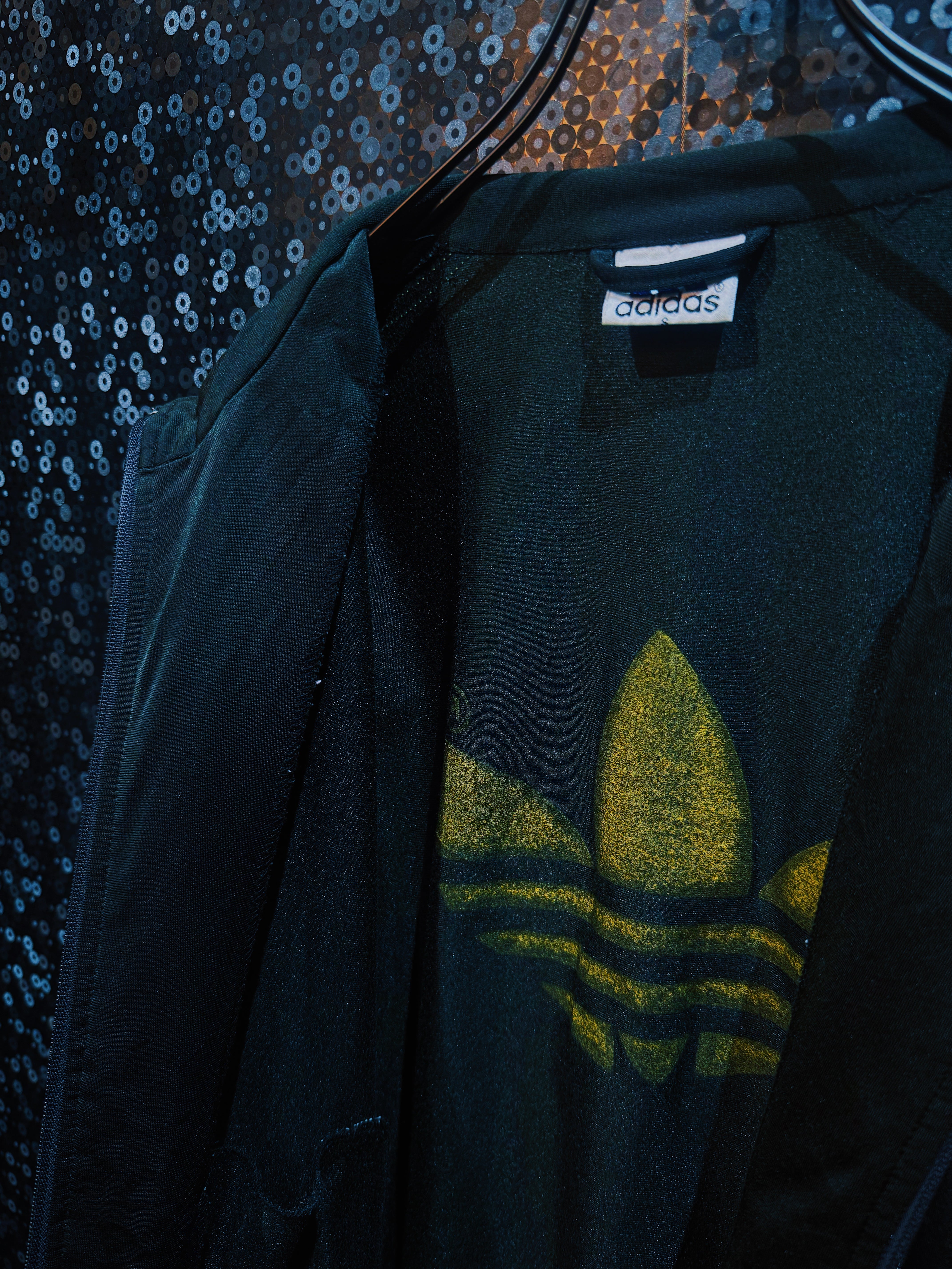 adidasの象徴「トレフォイルロゴ」を全面に押し出した存在感抜群のトラックジャケット。フロントには胸元に小さめのトレフォイル刺繍、そしてバックにはジャケット全体を覆うようなビッグプリントが入り、前後で異なるインパクトを楽しめる逸品。