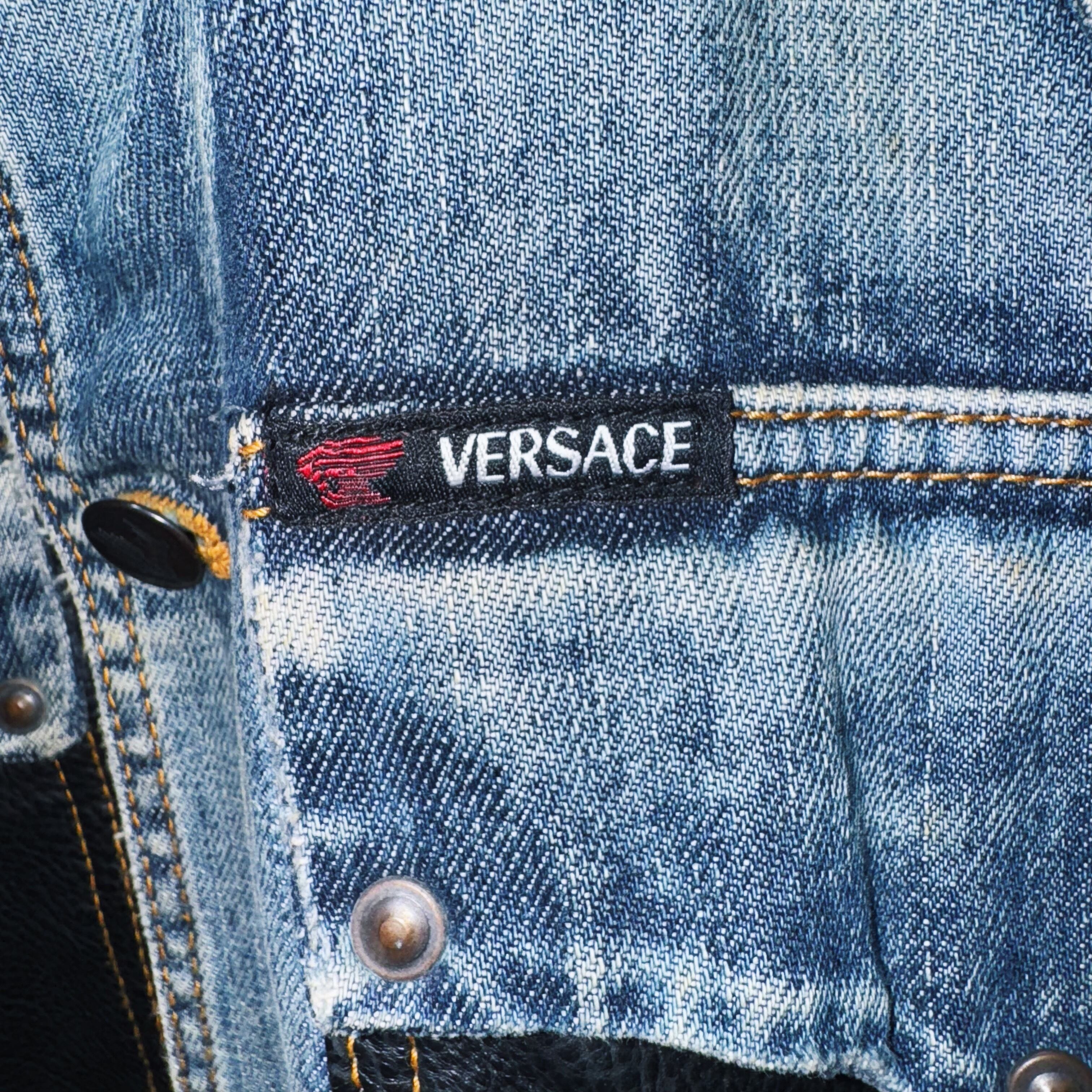 こちら"VERSACE"のカジュアルラインからの逸品。高品質のデニム素材にフロントのポケットがレザーに切り替わった重厚感と高級感溢れるハイクオリティな逸品。