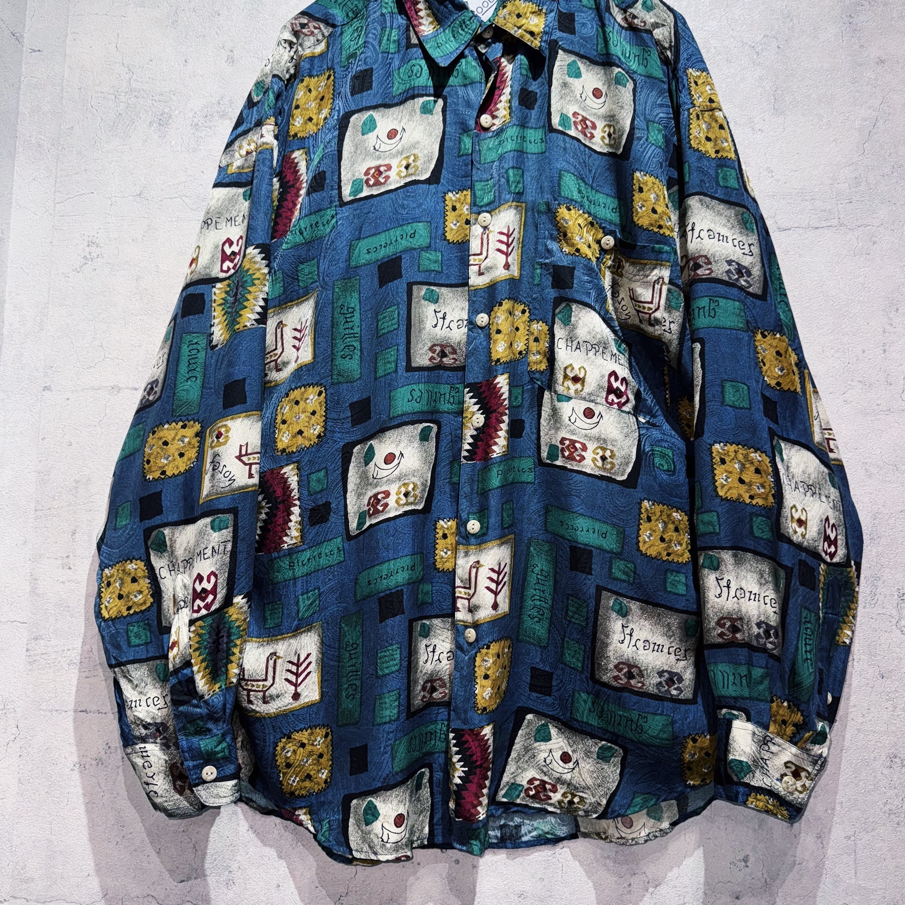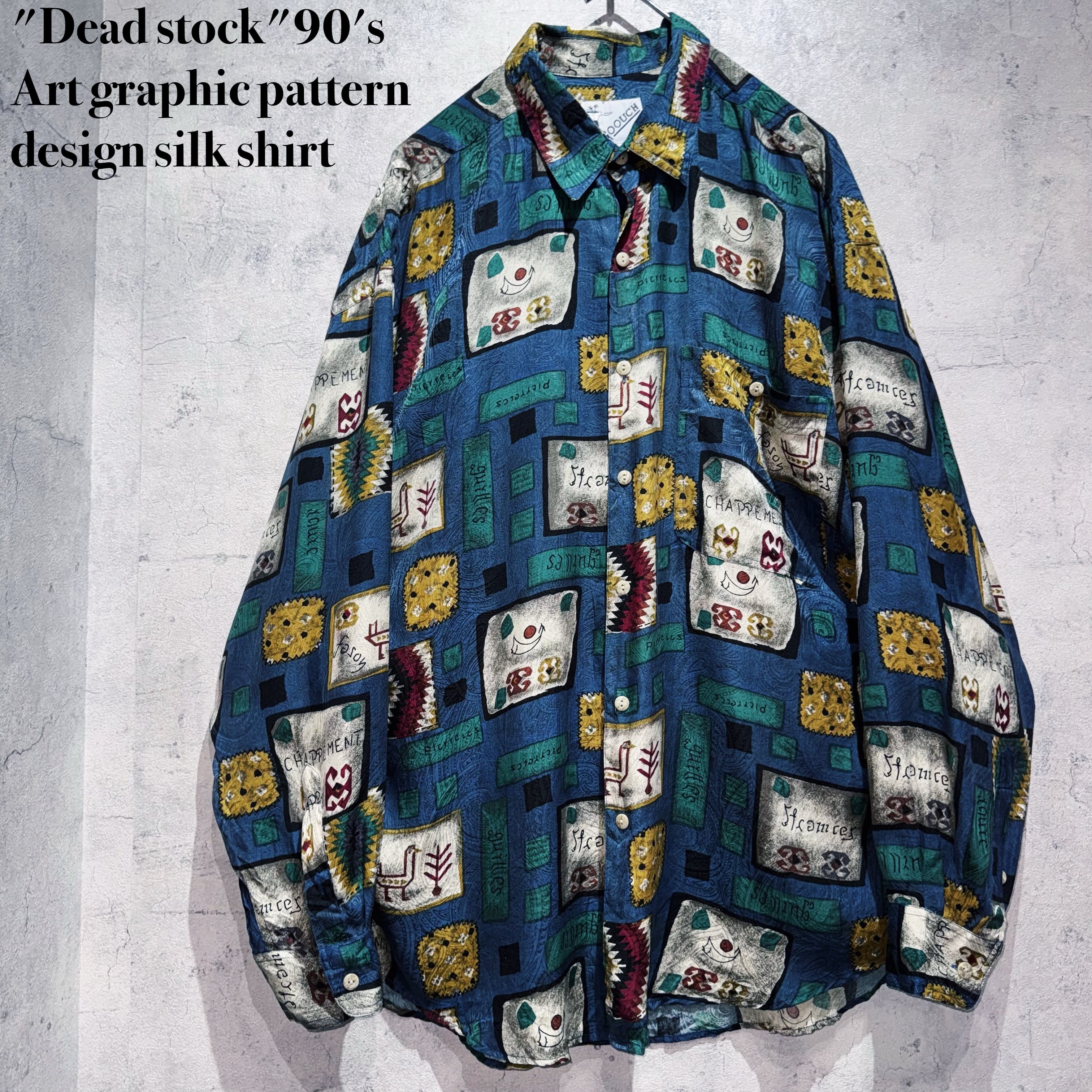 "デッドストック"90年代アートグラフィックパターンデザインシルクシャツ