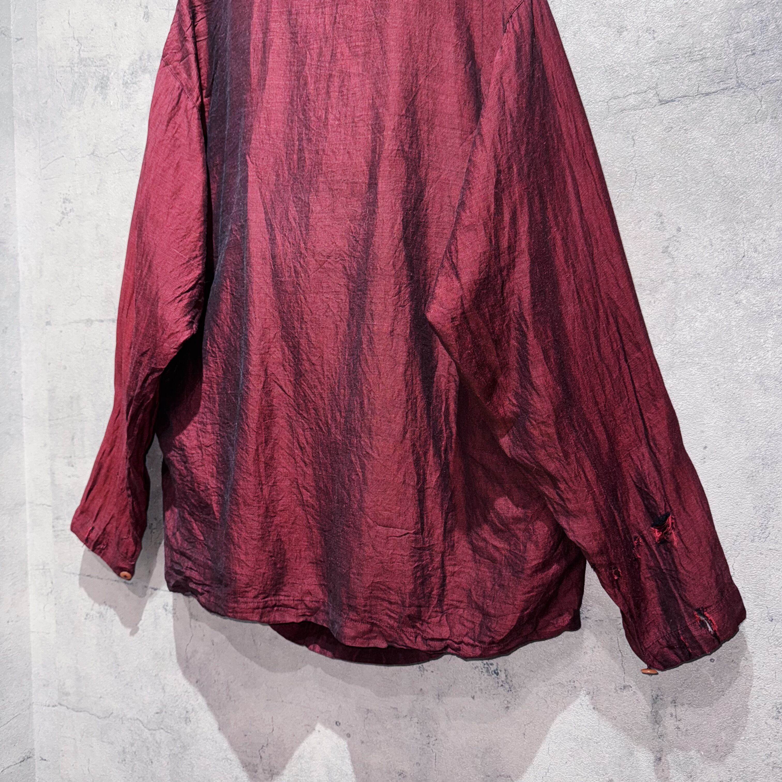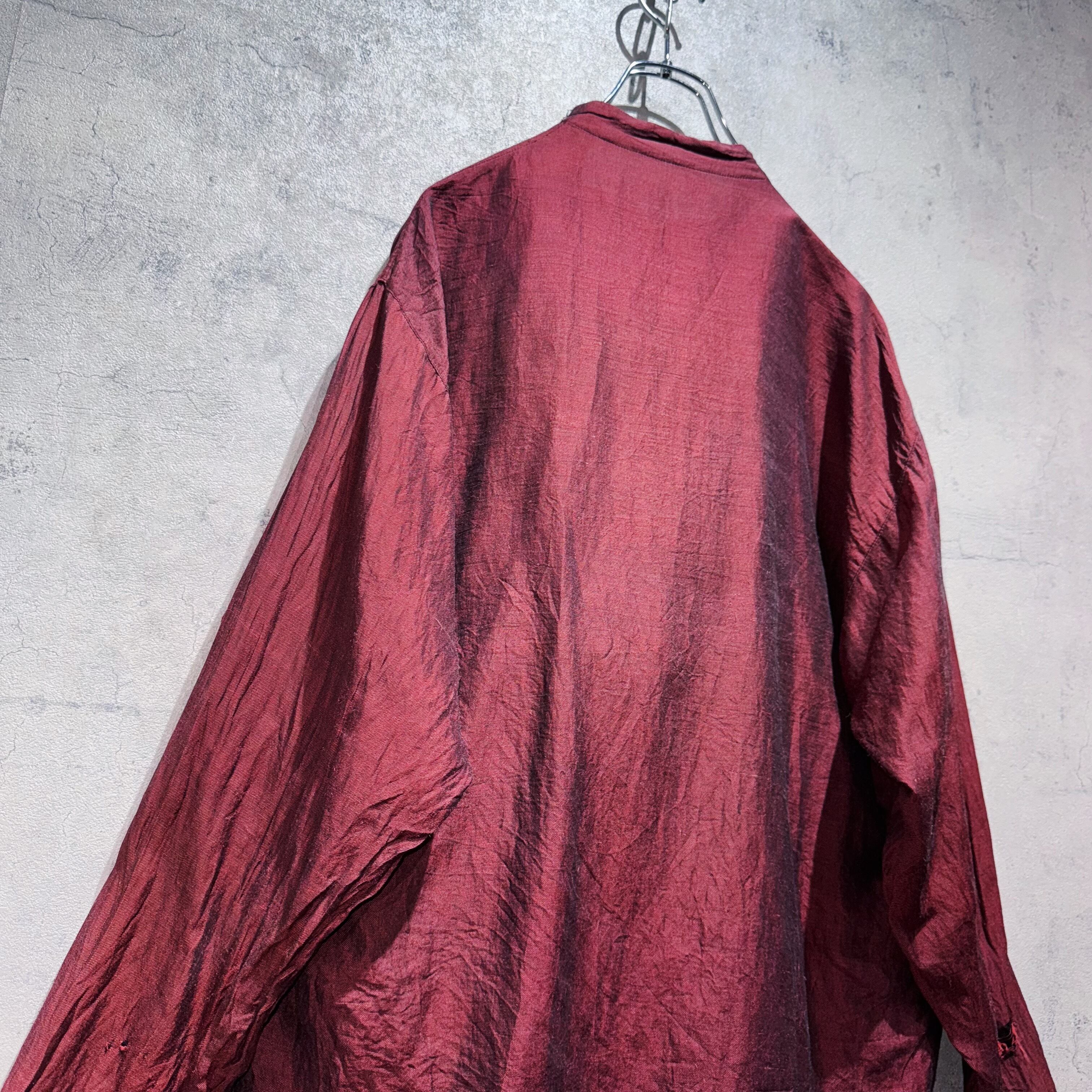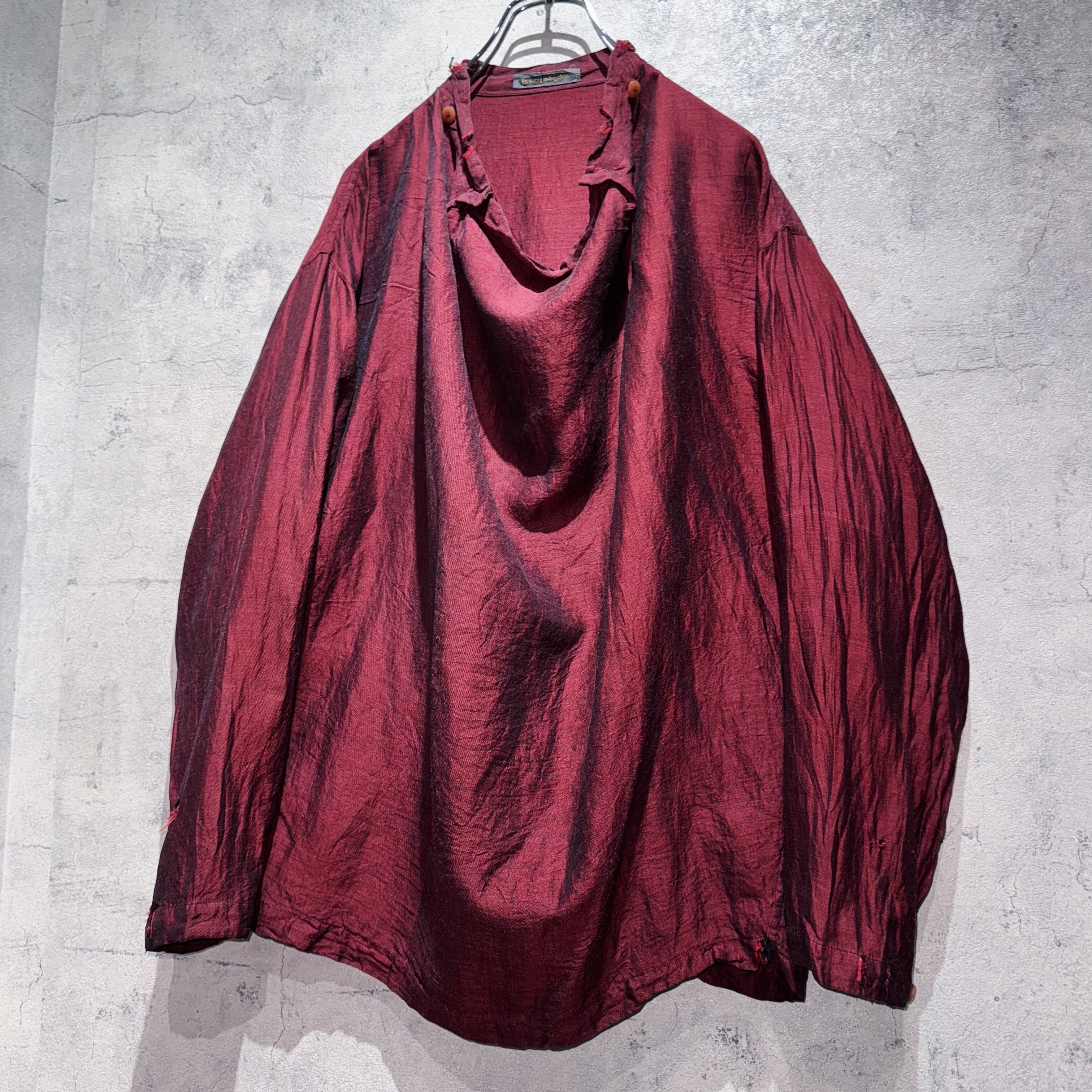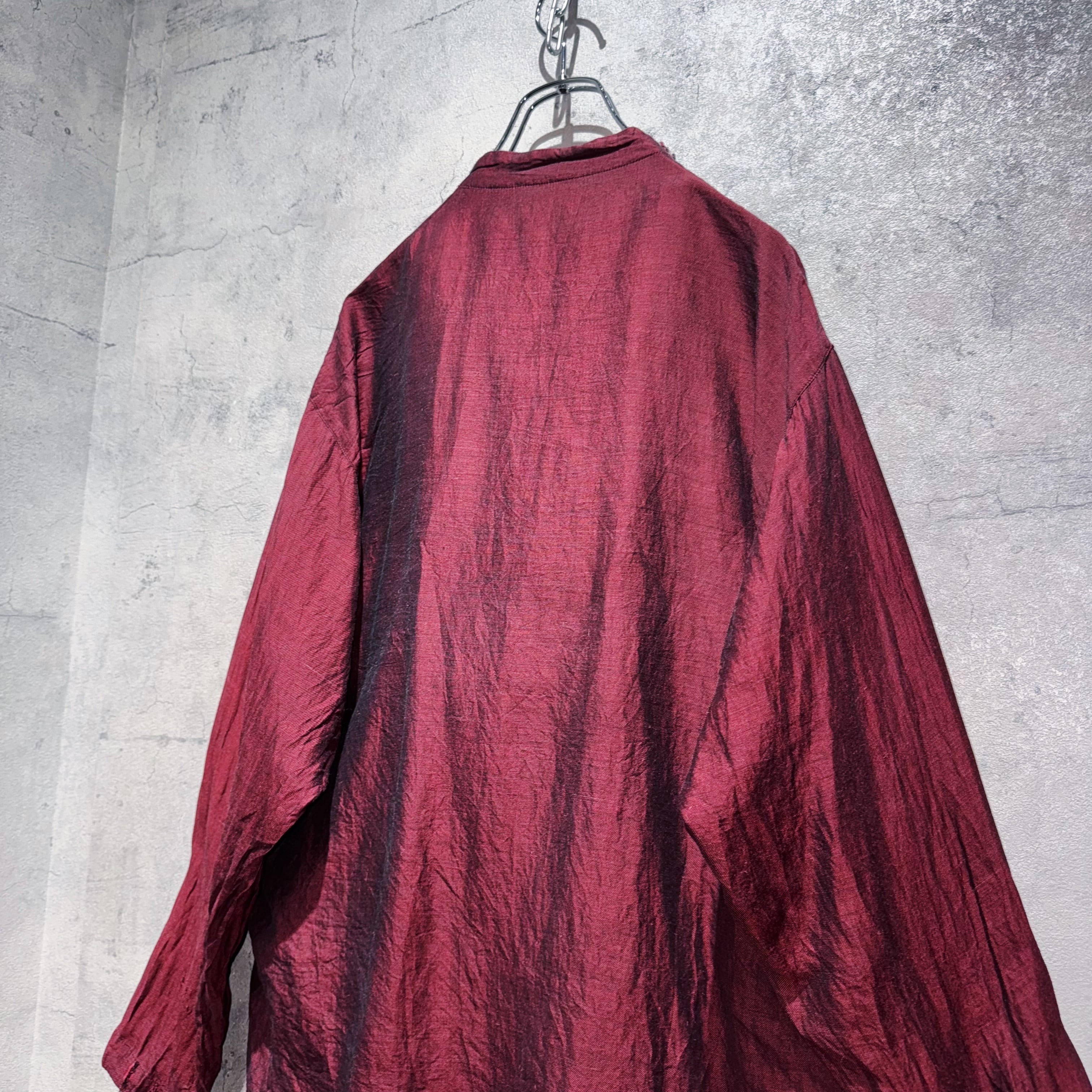 80年代"イッセイミヤケ"ワインレッドカラープルオーバーシャツ