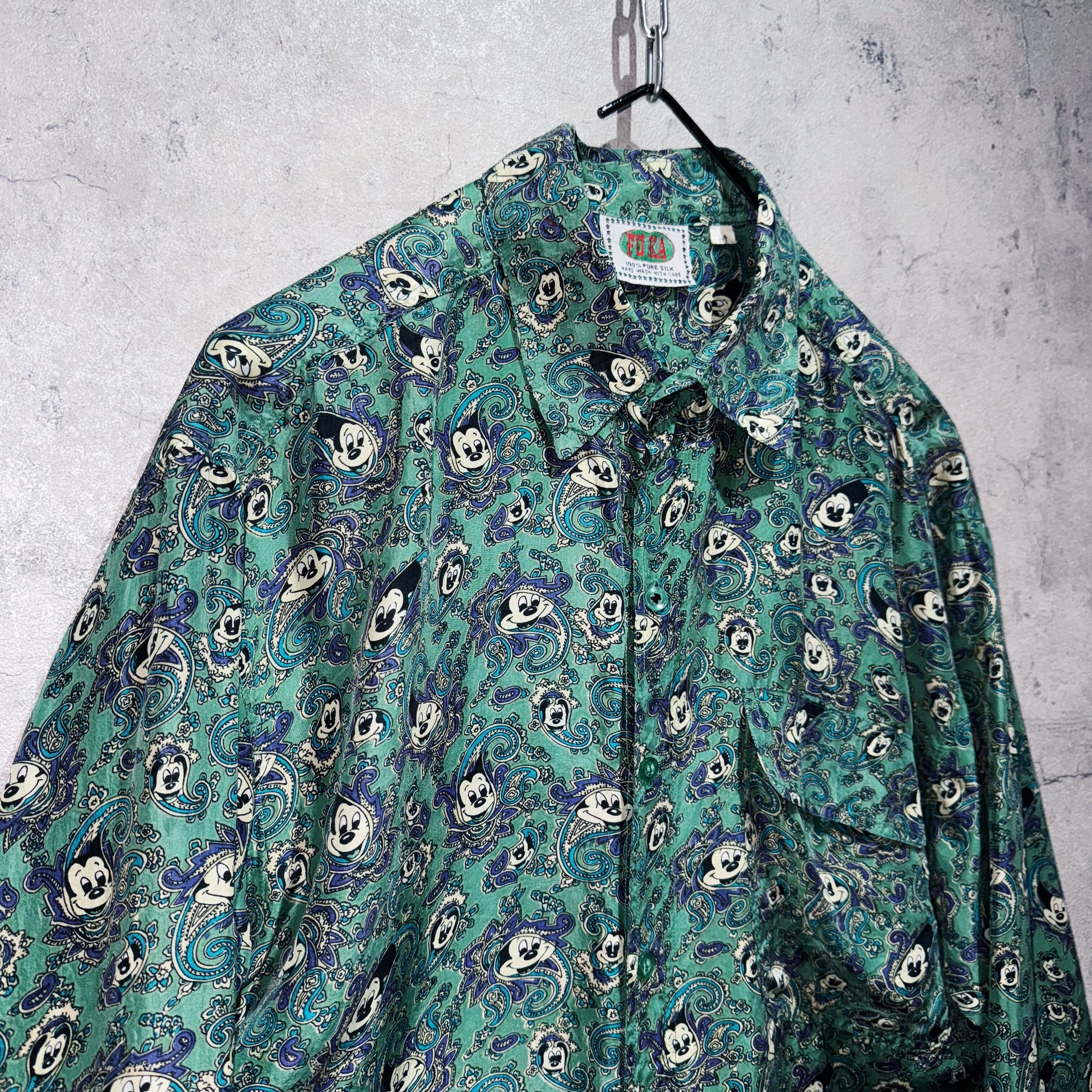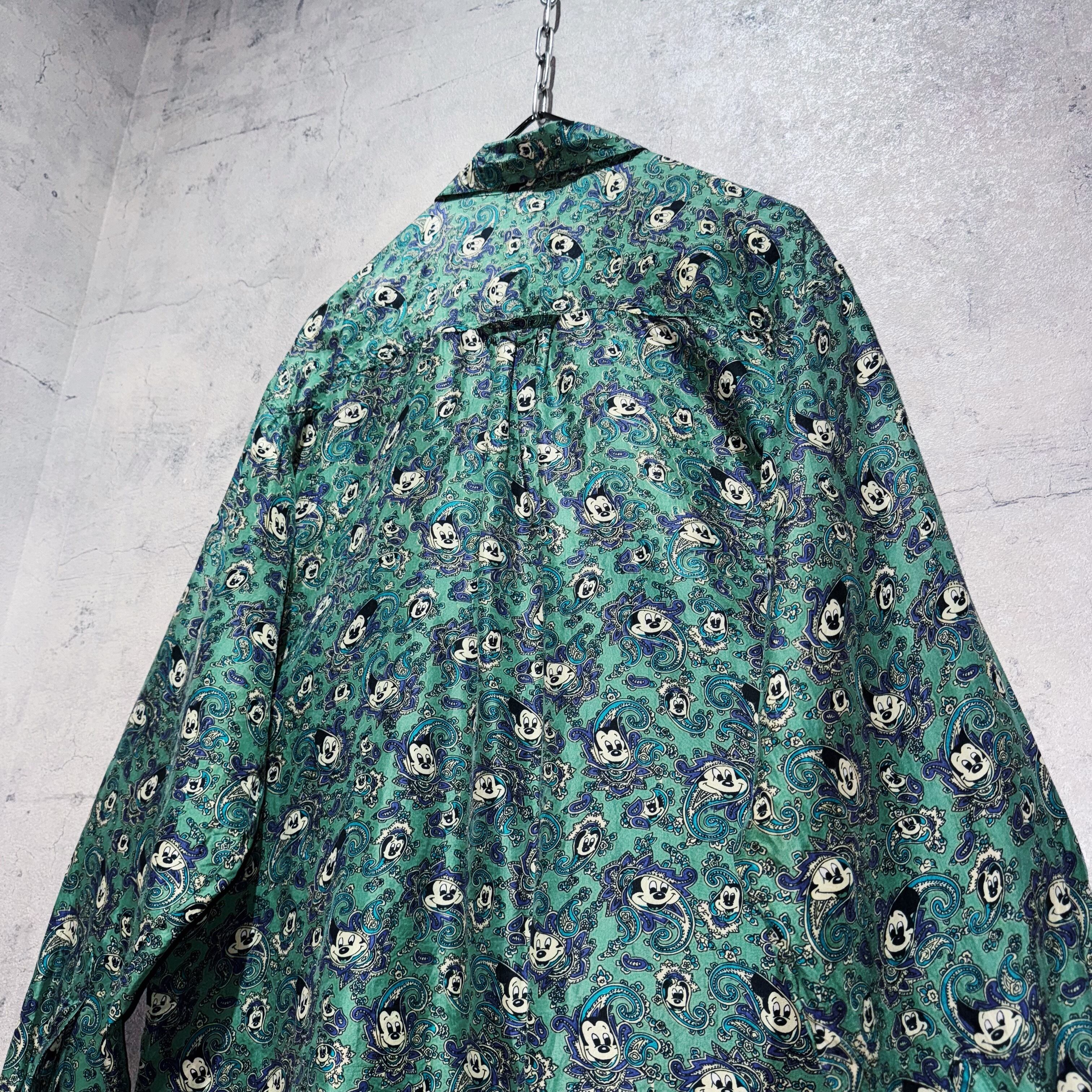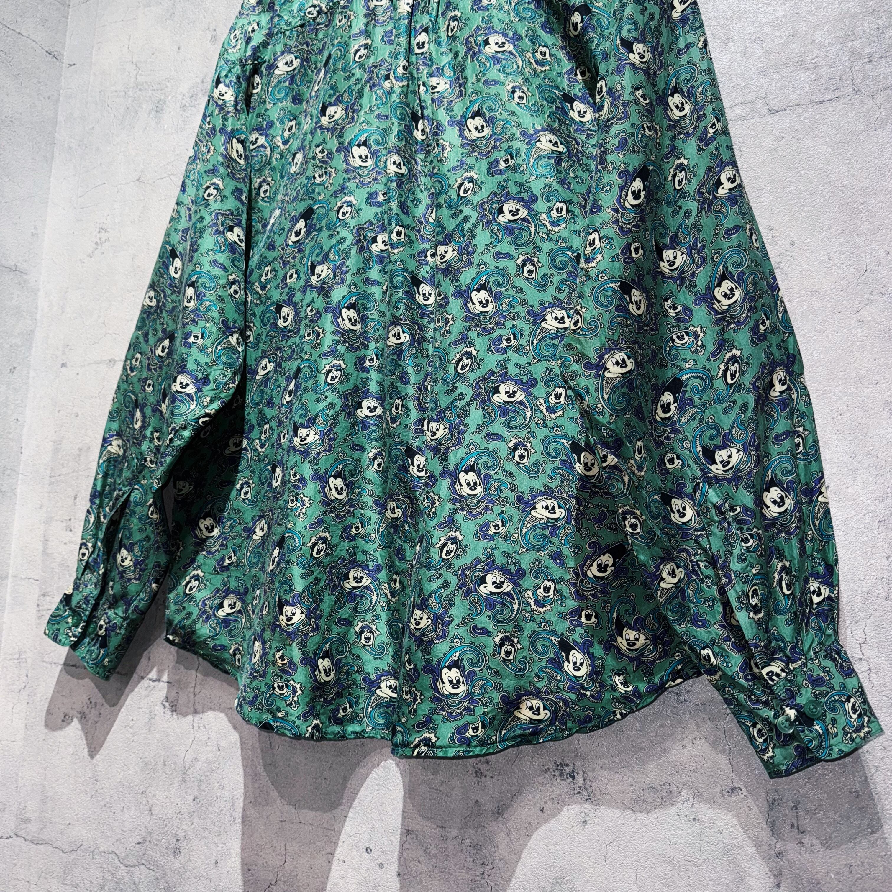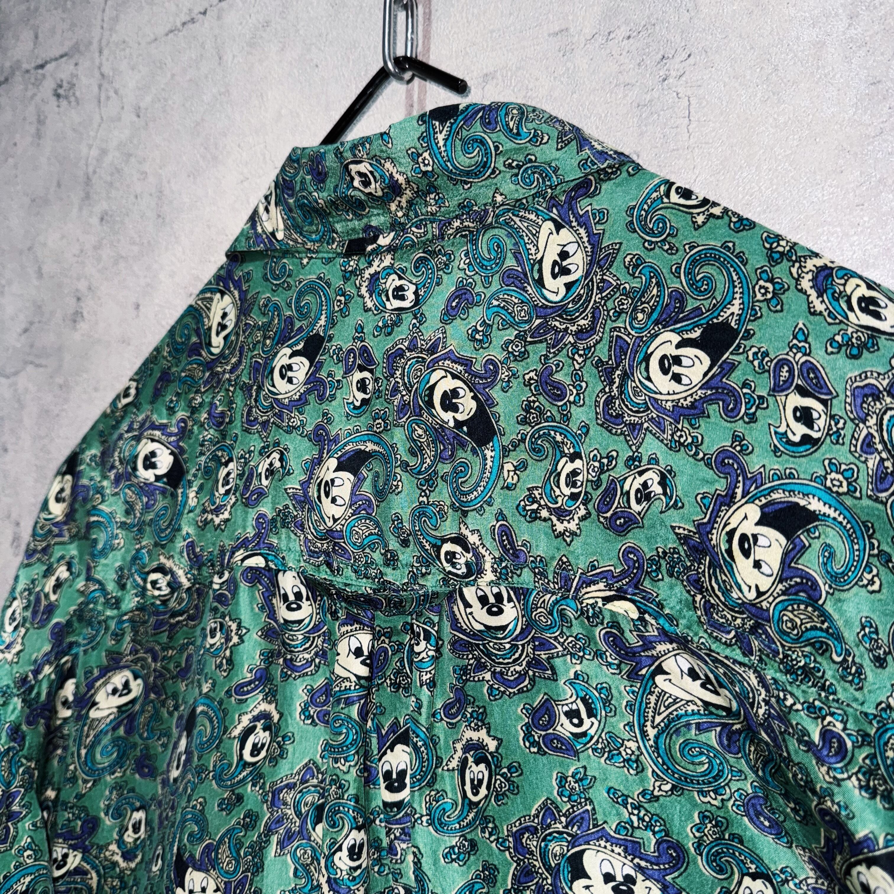 ヴィンテージミッキーマウスペイズリーパターンデザインシルクシャツ