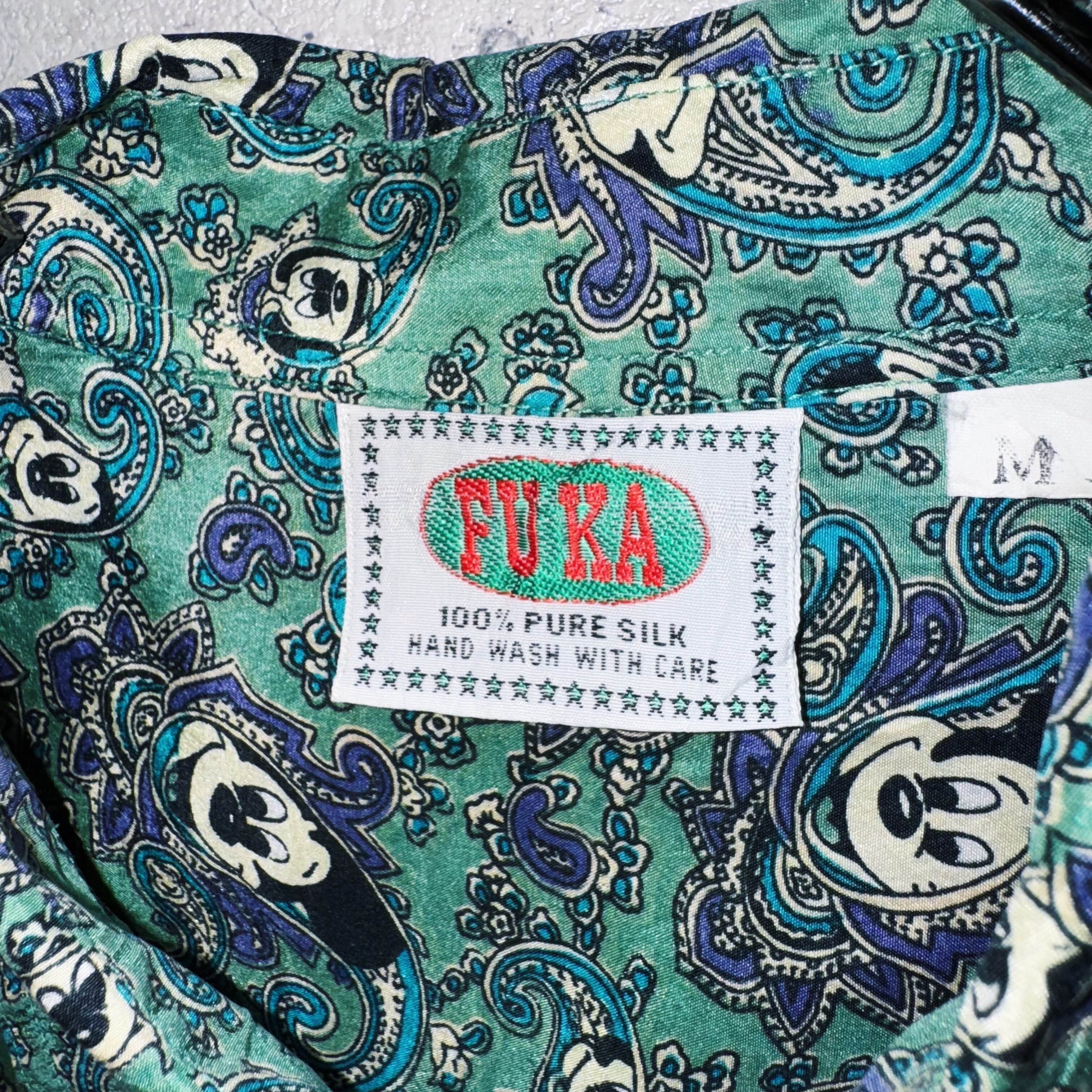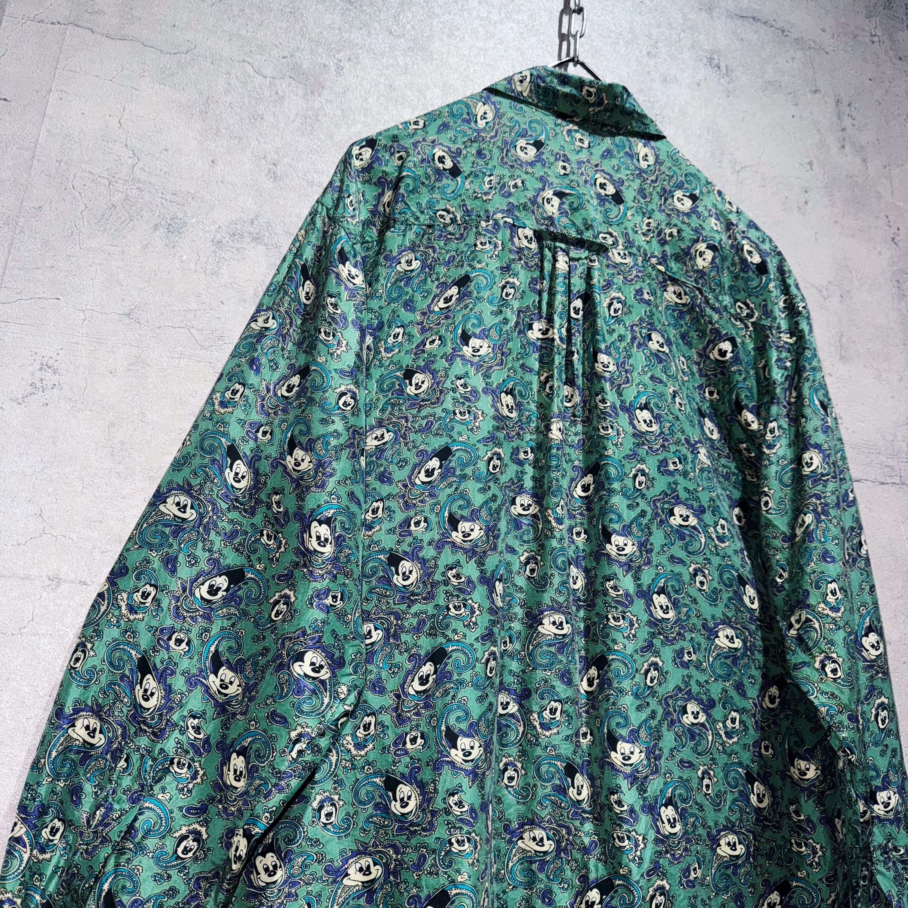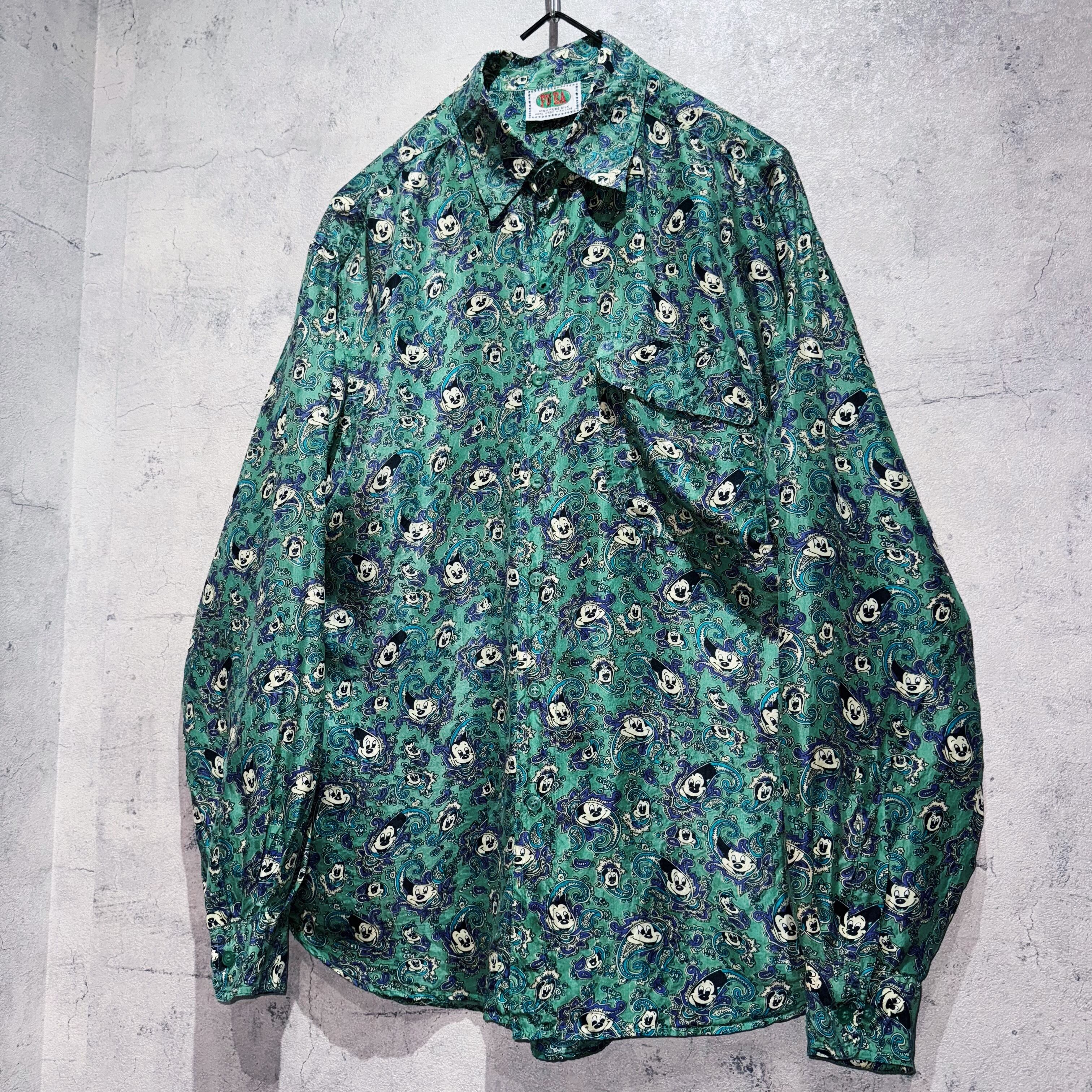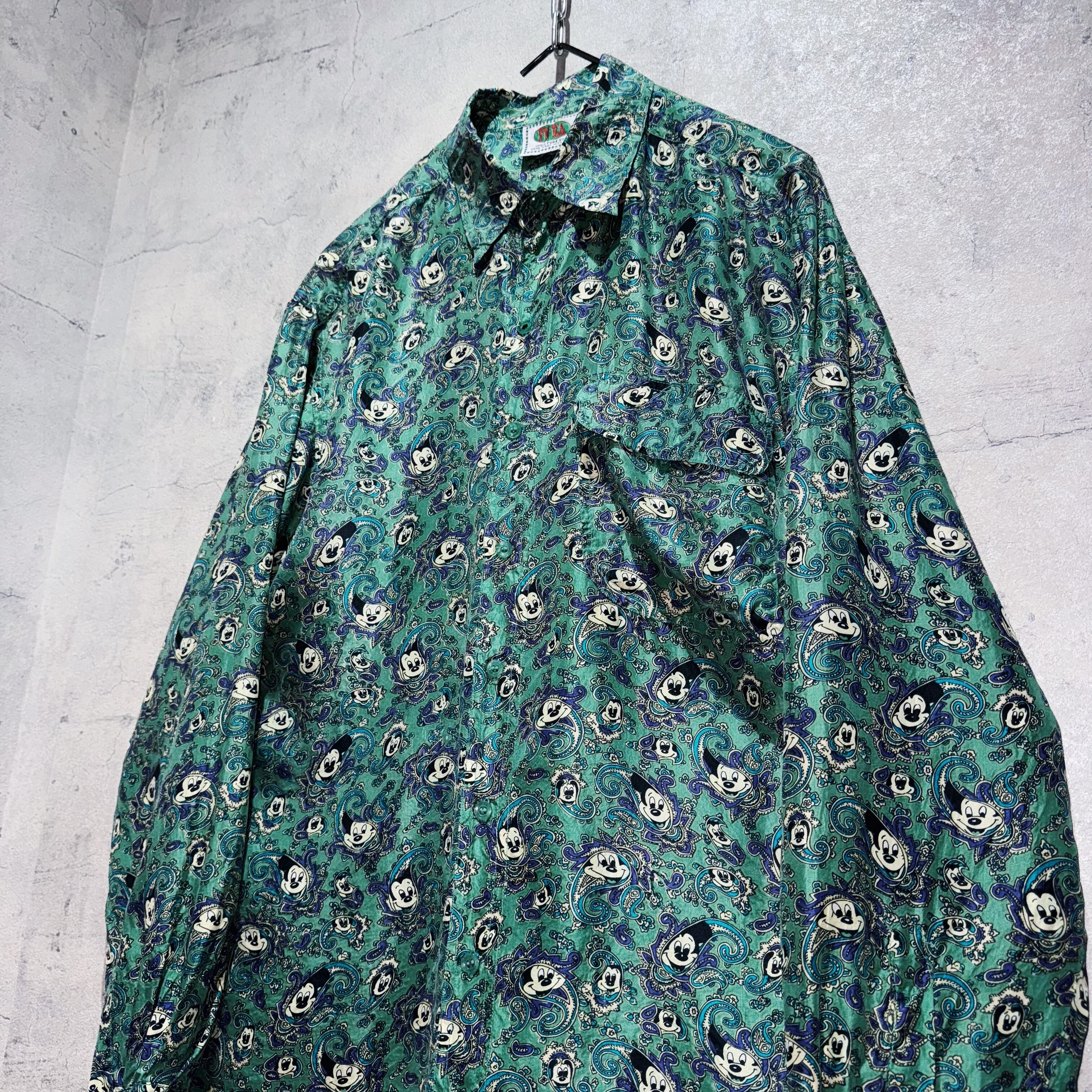 ヴィンテージミッキーマウスペイズリーパターンデザインシルクシャツ