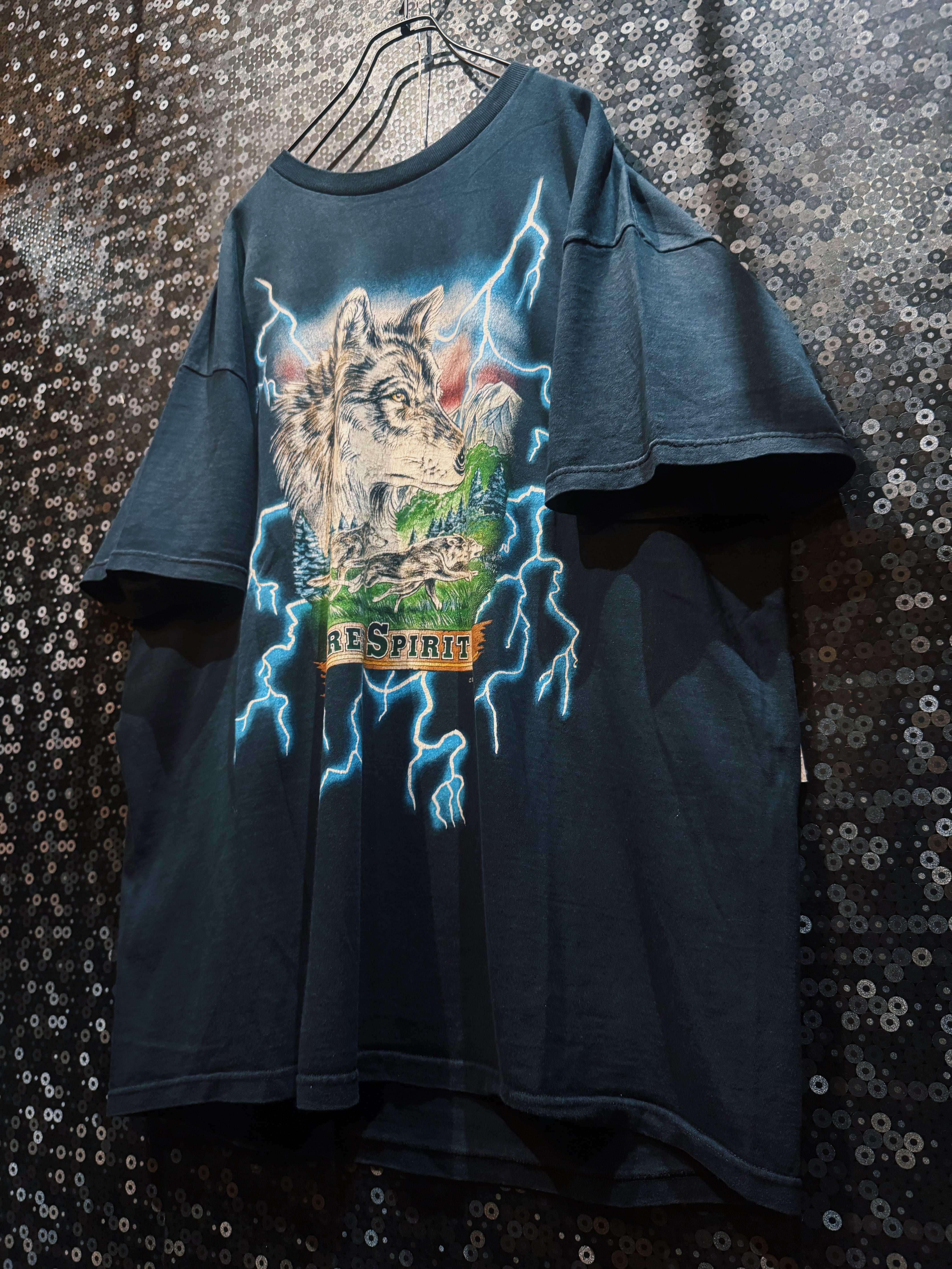 【ÆIEM】"USA Thunder"vintage”Wolf Spirit” lightning T-shirt