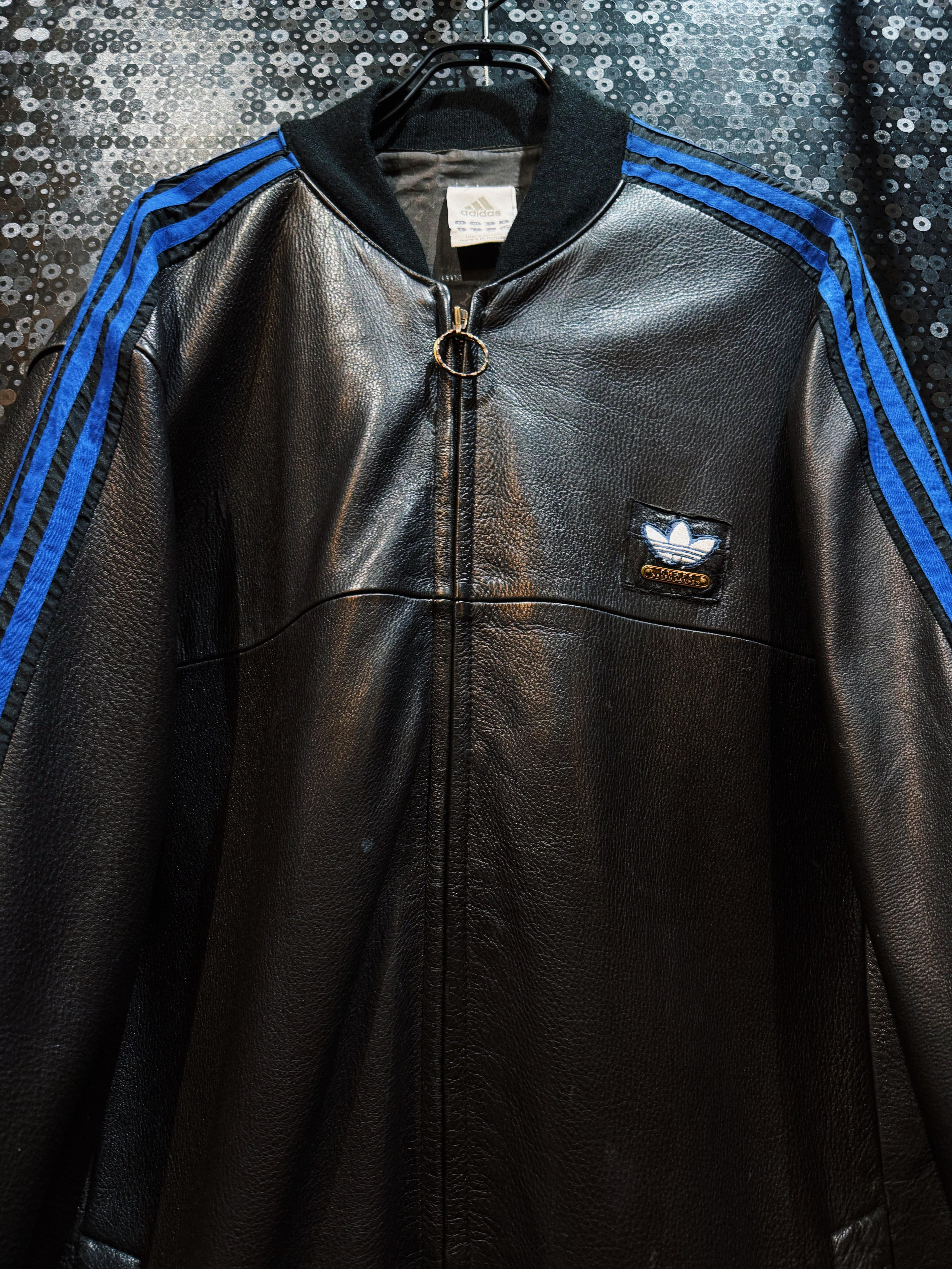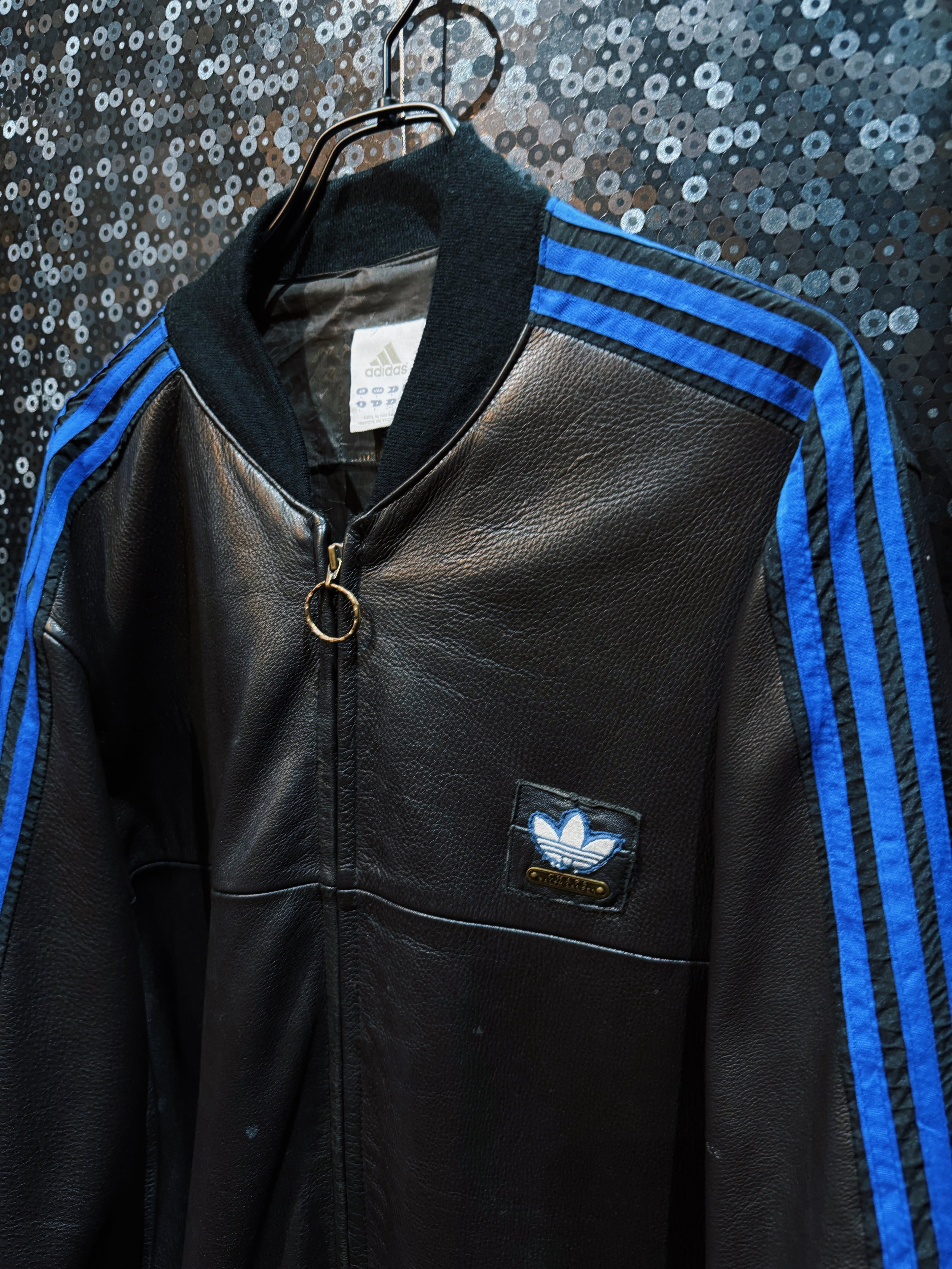 ハリがありモッチモチのレザージャケットにシティーポップでハイストリートなスリーストライプの上質なトラックテキスタイルを"融合"させてハイモード×ハイストリートなアイテムに。