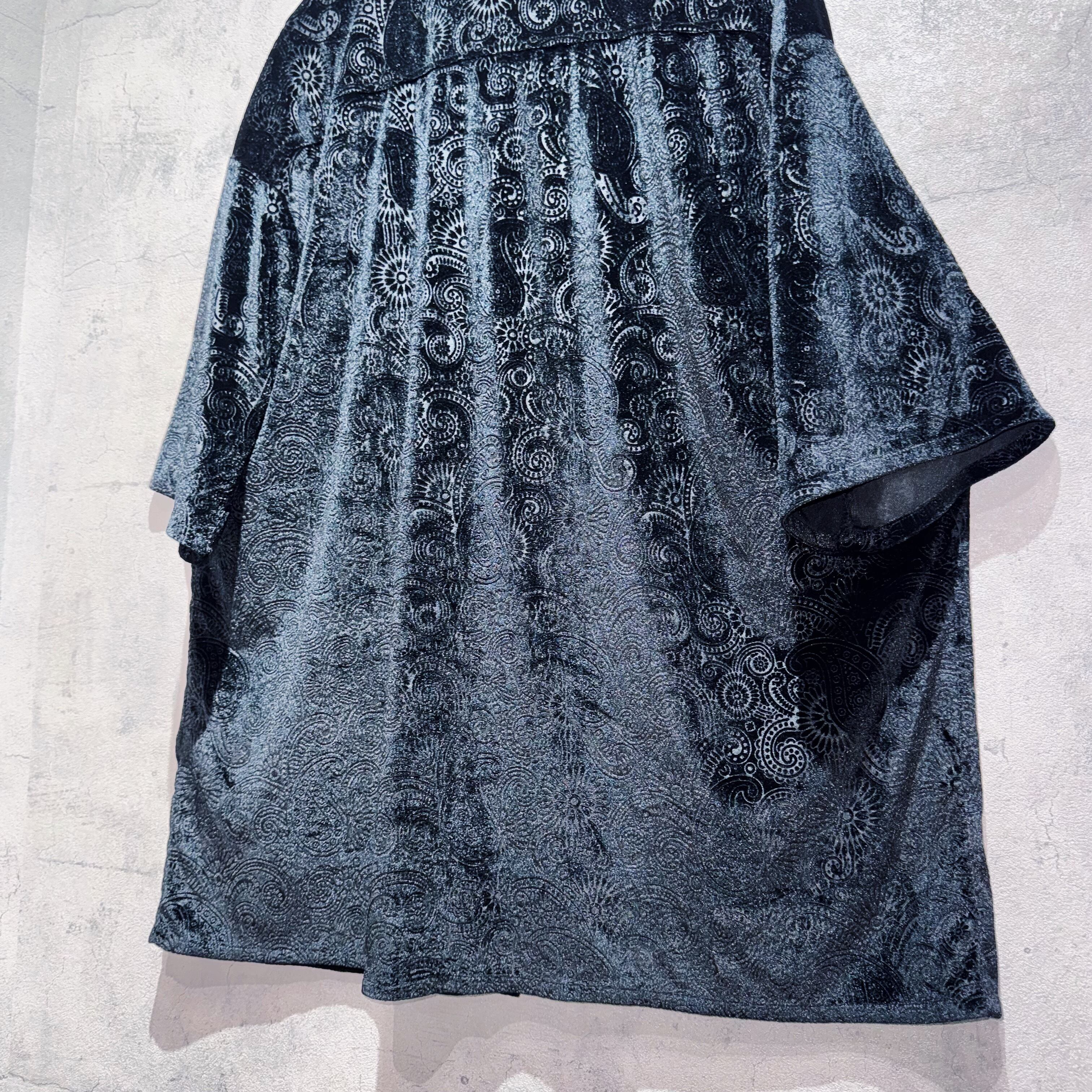 "デッドストック"ベルベットマテリアルペイズリーパターンデザインショートスリーブシャツ