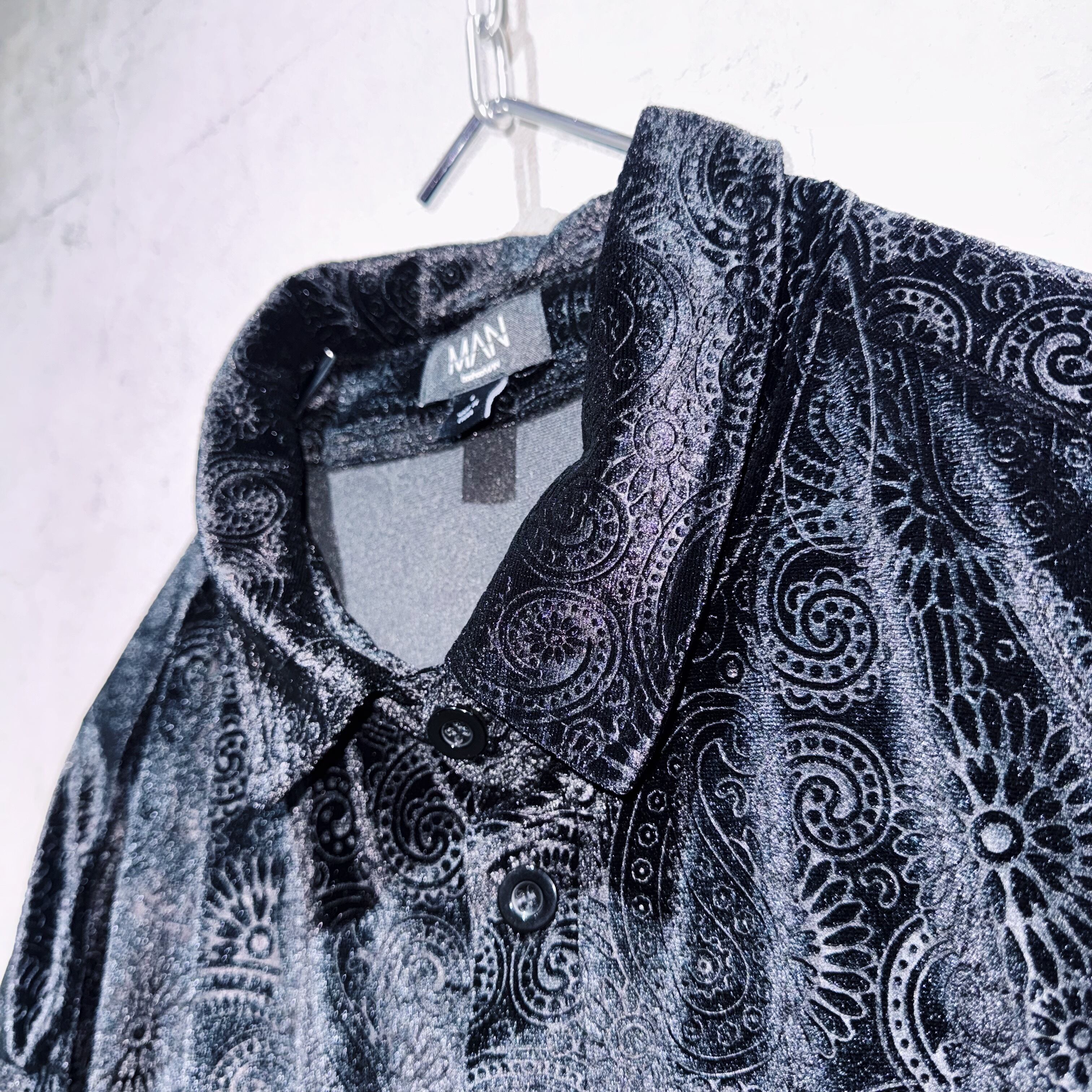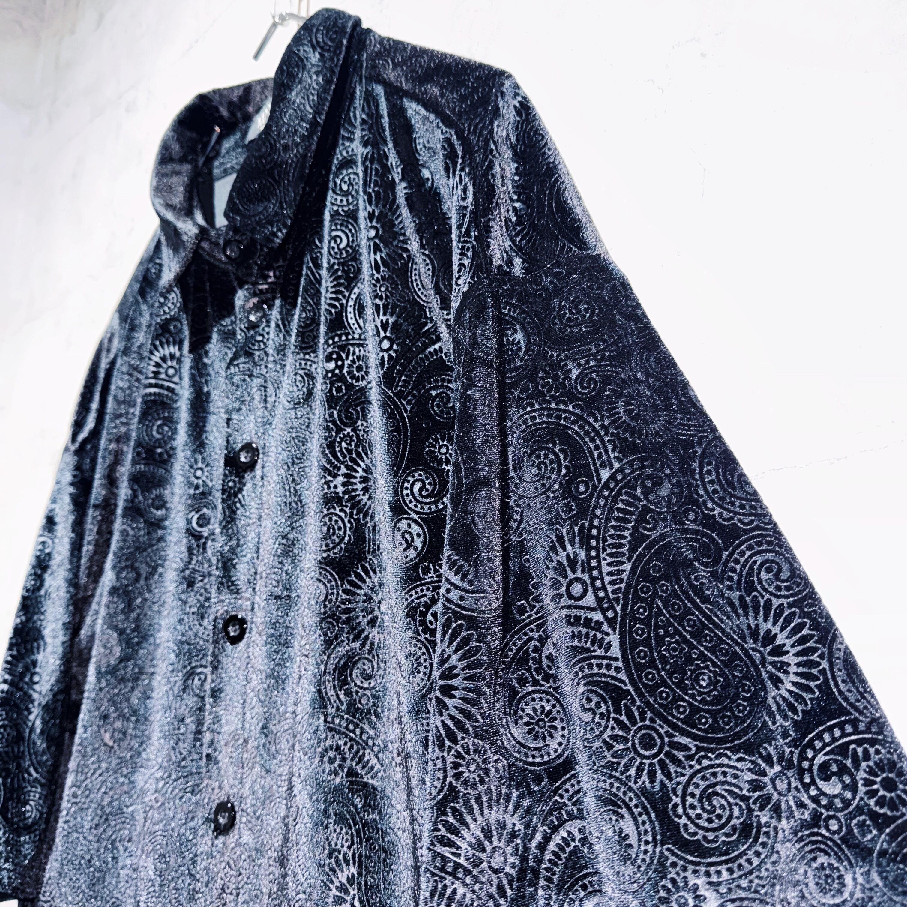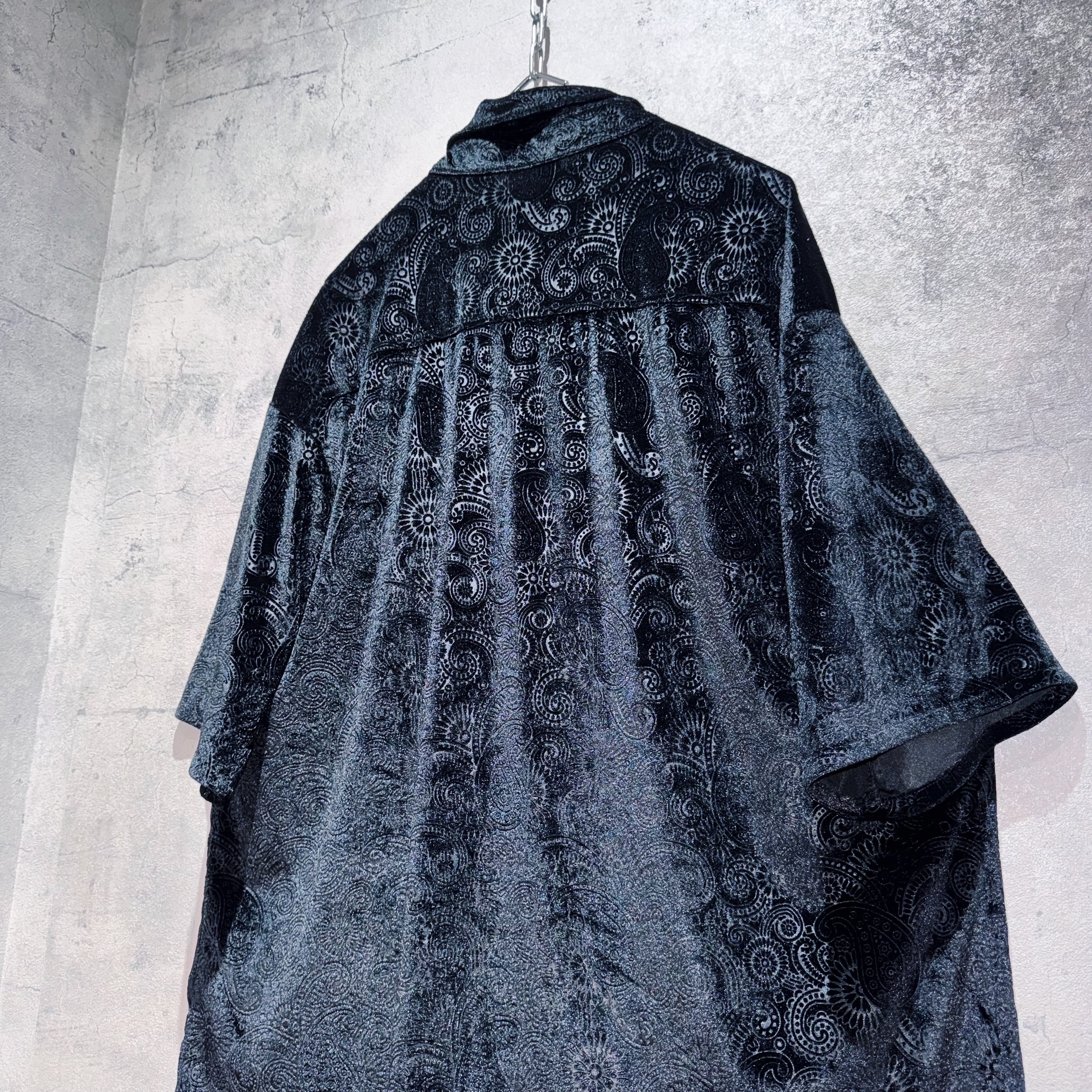 "Dead stock"velvet material paisley pattern design short sleeve shirt