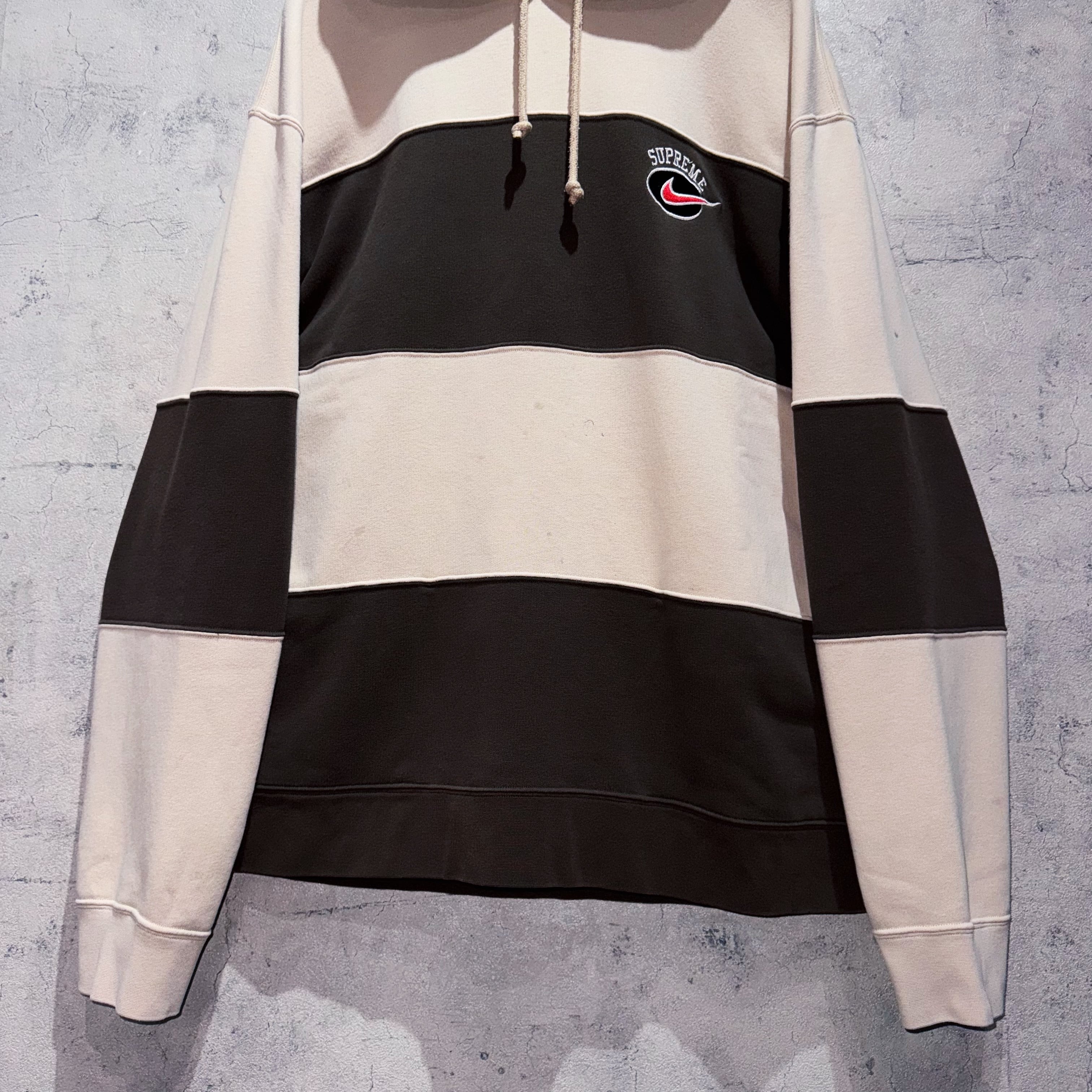 19春夏"シュプリーム×ナイキ"ロゴエンブロイダリーストライプフーディー