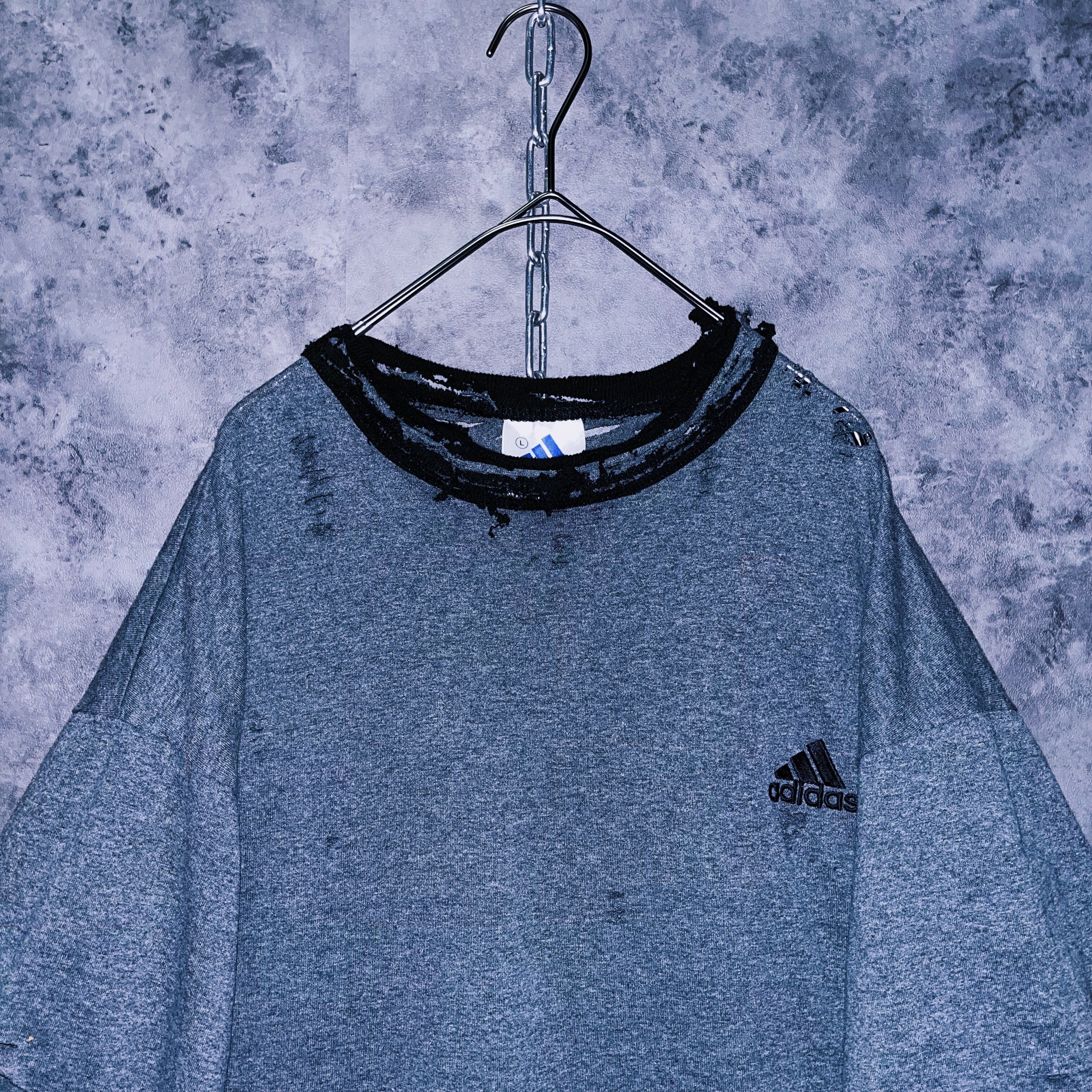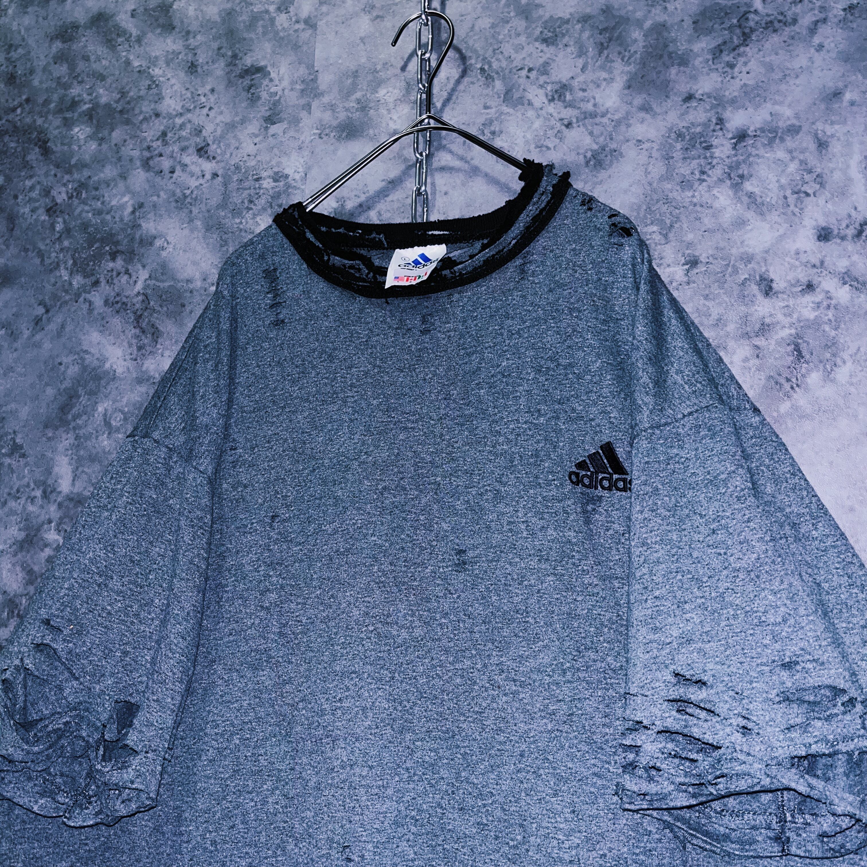 ヴィンテージ“adidas”パフォーマンスロゴデザインボロカスタムTシャツ