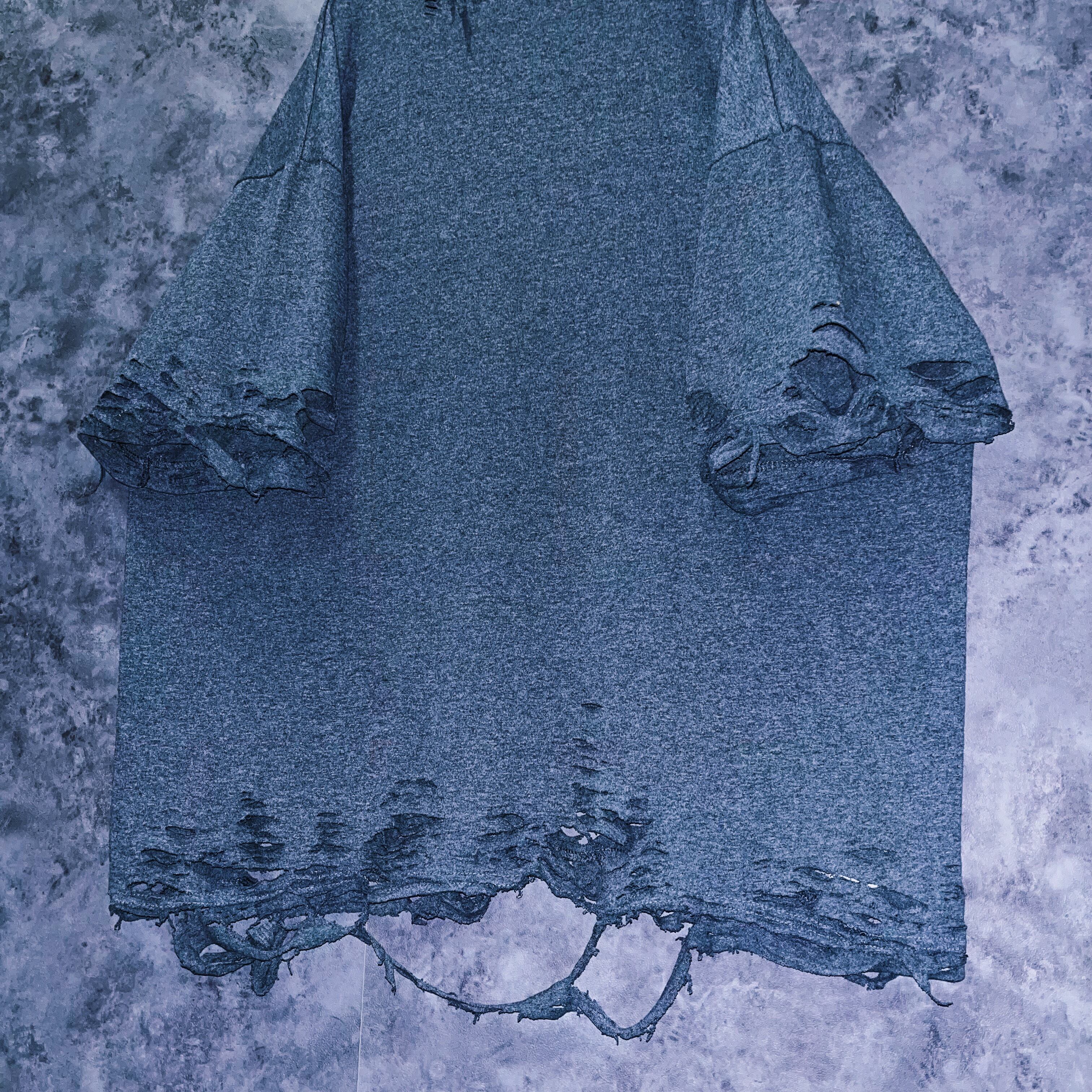シンプルな元のデザインにリブを中心に大胆に加えられたダメージ加工がエッジの効いた仕上がりに。