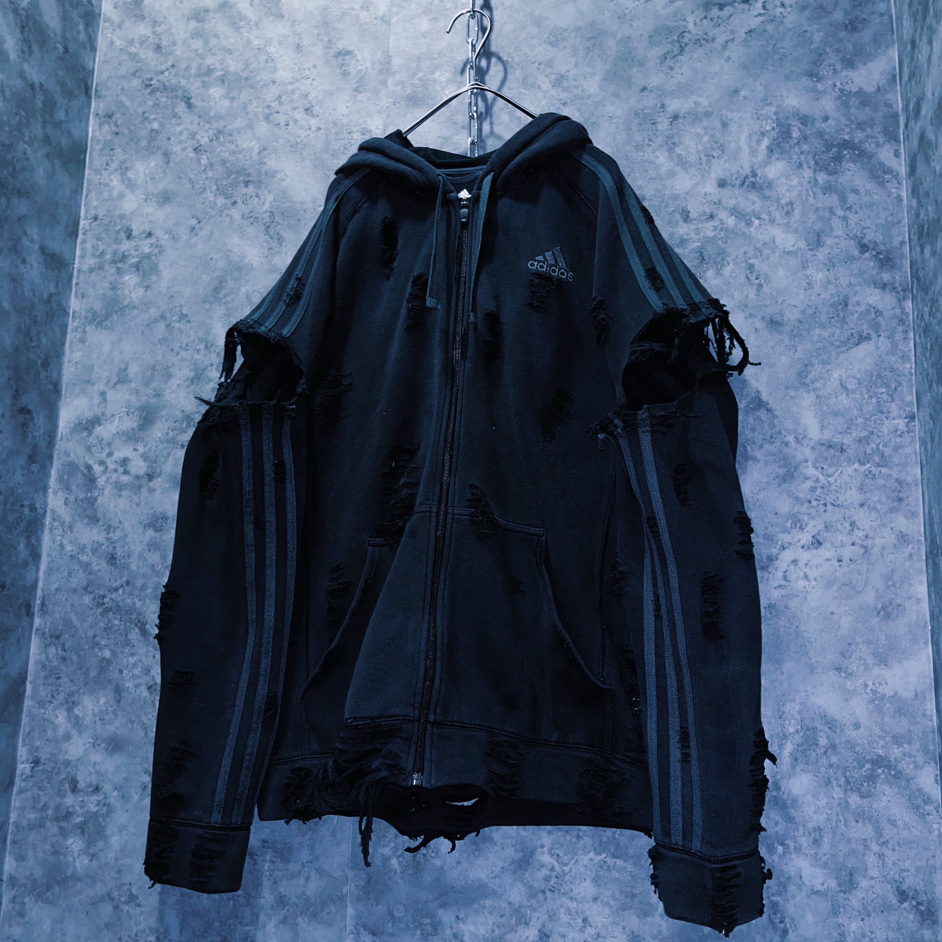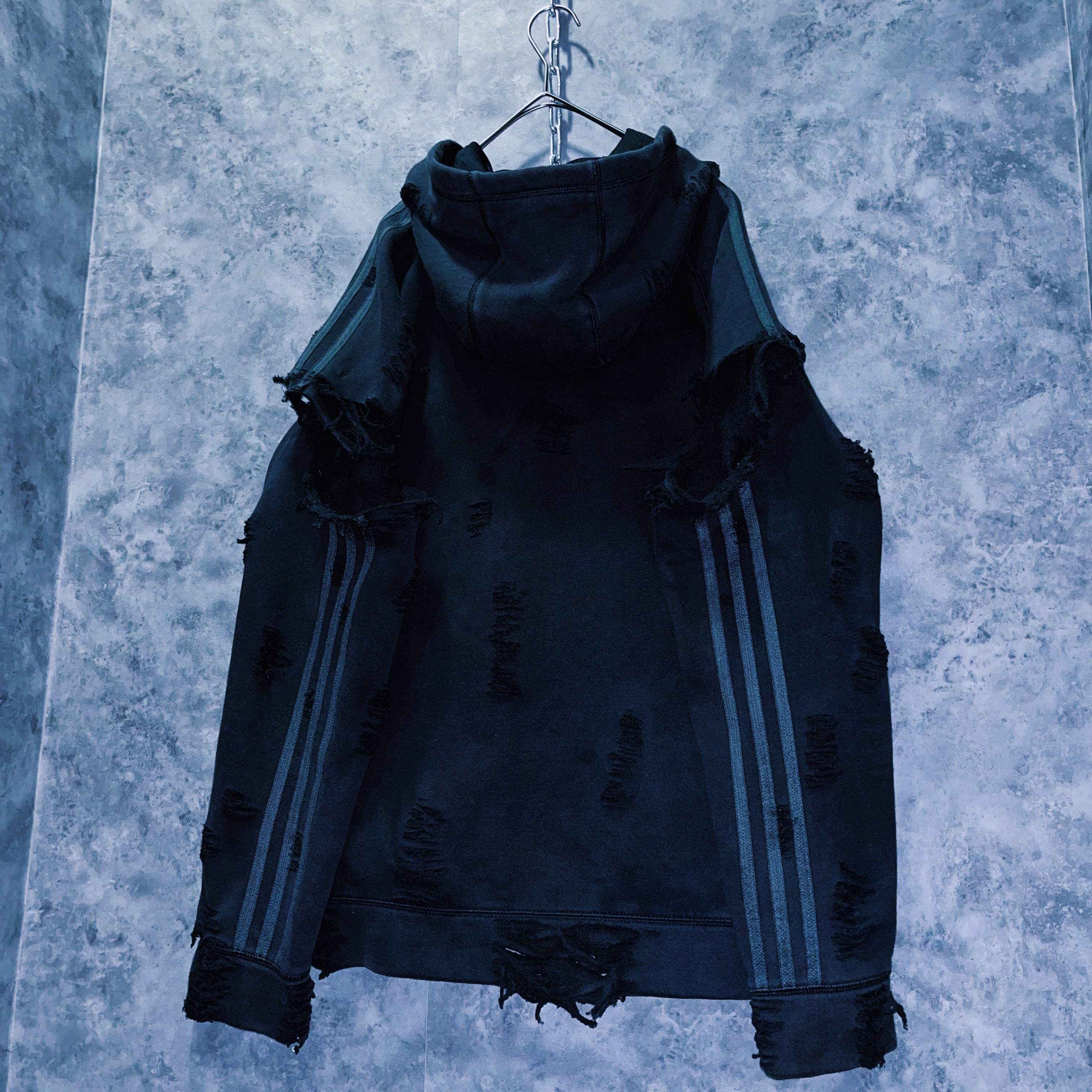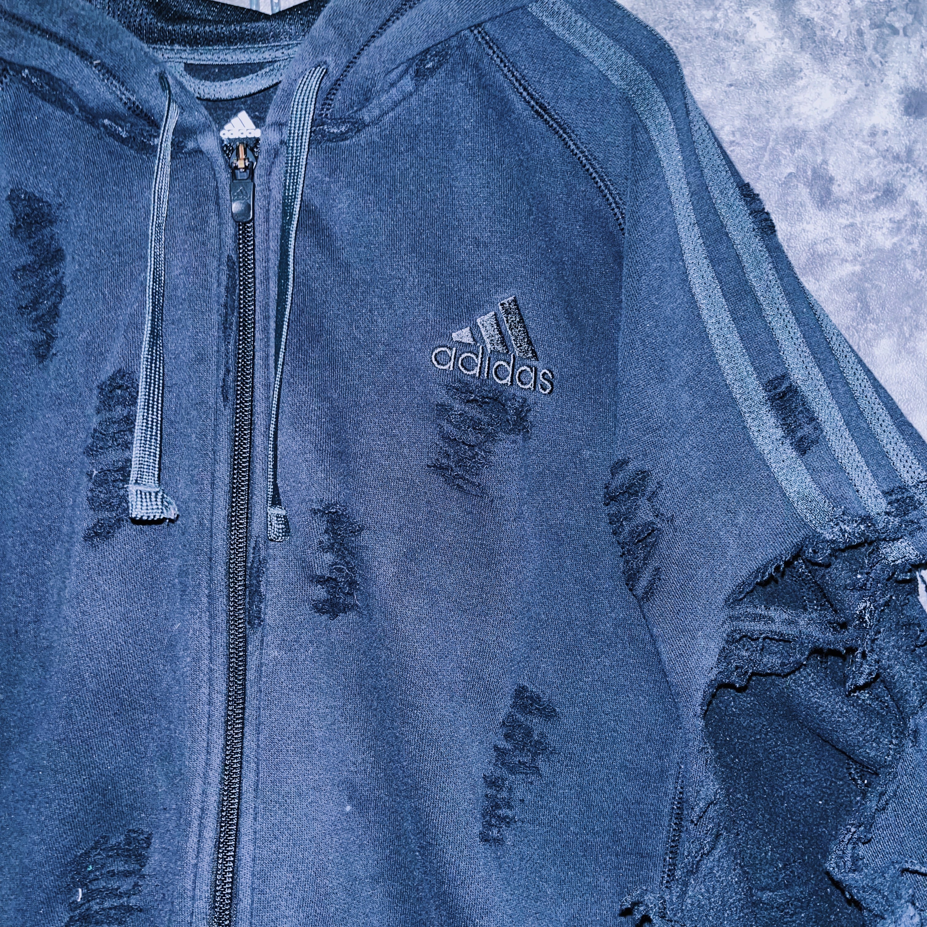 ヴィンテージ“adidas”スリーストライプデザインボロカスタムジップフーディ
